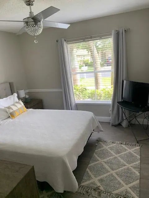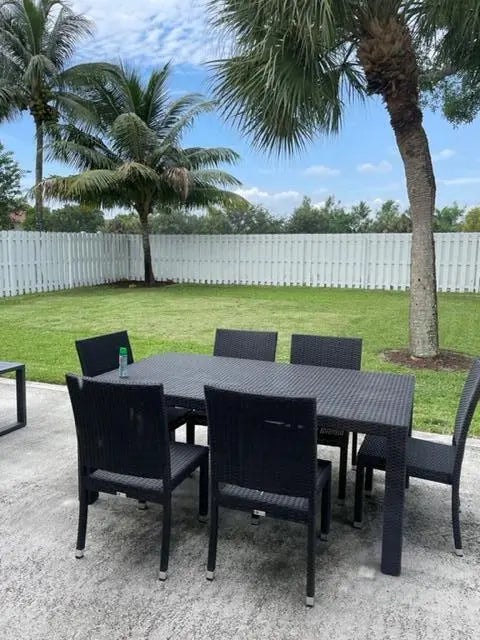 Beautiful 3 bedrooms and 2 baths with 2 car garages totally updated with a large fenced backyard, a newer roof, newer appliances with and extra refrigerator in the garage.This spacious split floorplan features a living room, dining area and a center island with a teppanyaki grill and a snack bar. Chef's kitchen features classic white cabinets, granite countertops, a tiled backsplash, high hat lighting. Large master retreat with a walk-in closet, double sinks, a soaking tub and a walk-in shower. Relax on the patio overlooking the large, fenced yard with tropical landscaping. Neutral tile on the diagonal, crown molding and surveillance equipment with cameras are just a few of the highlights in this split floor plan home. WATER, Basic Cable & Pest Control are Included. Lanscaping is tenant