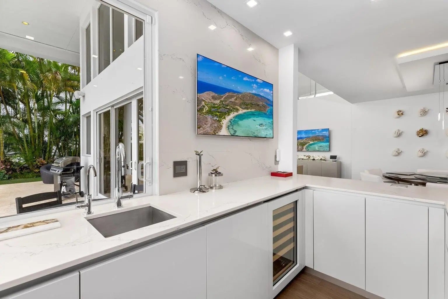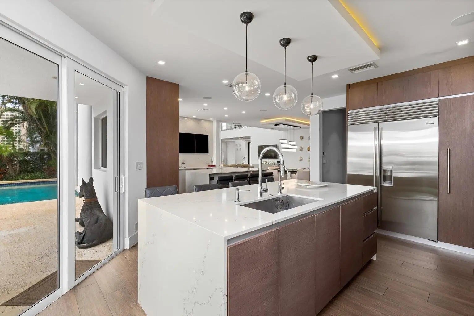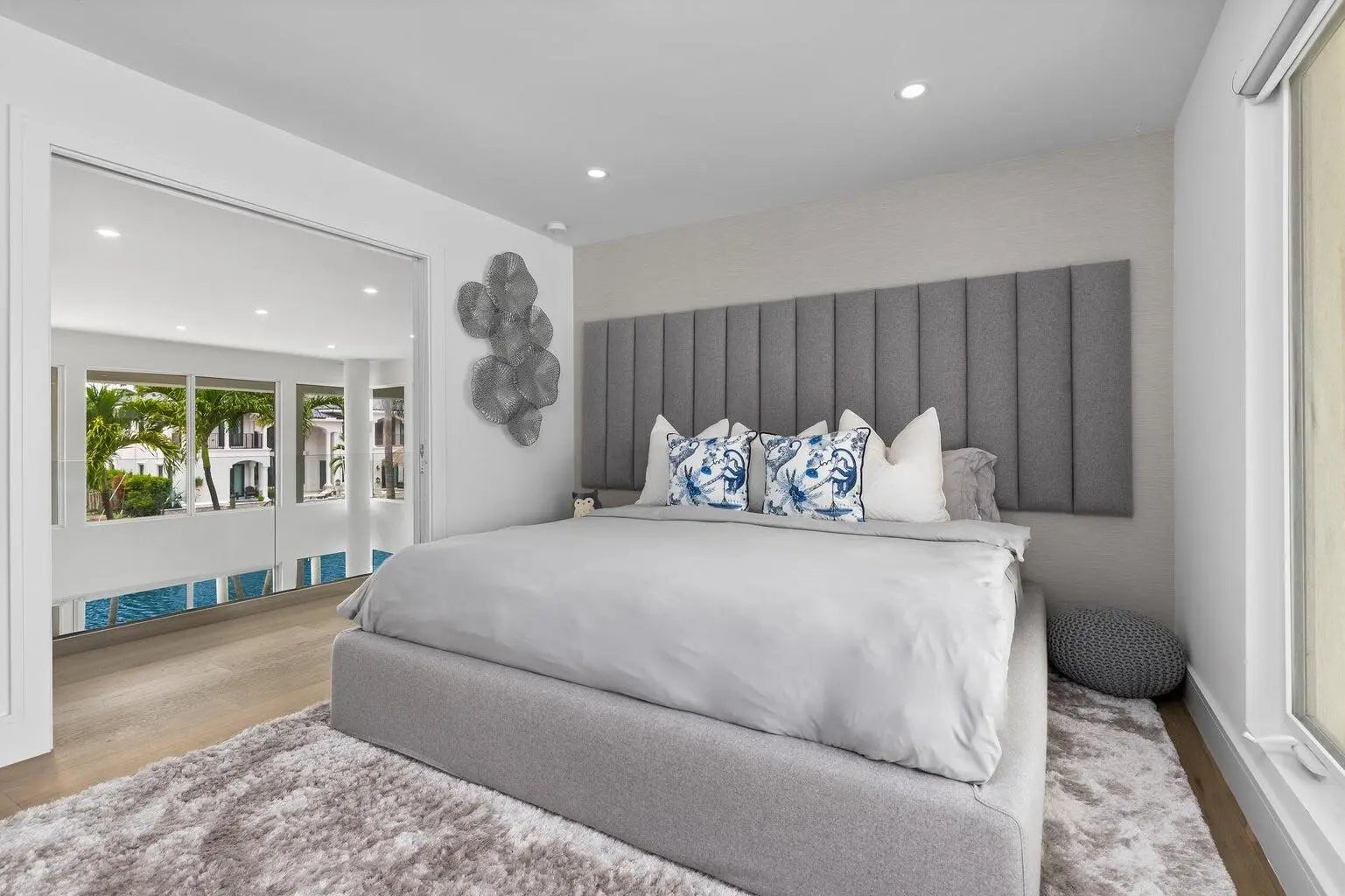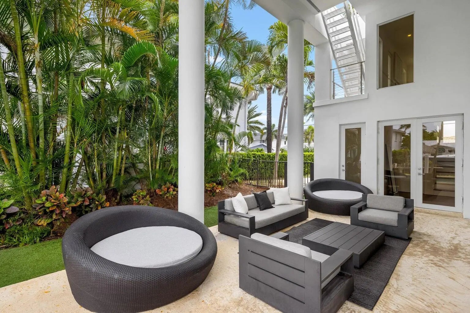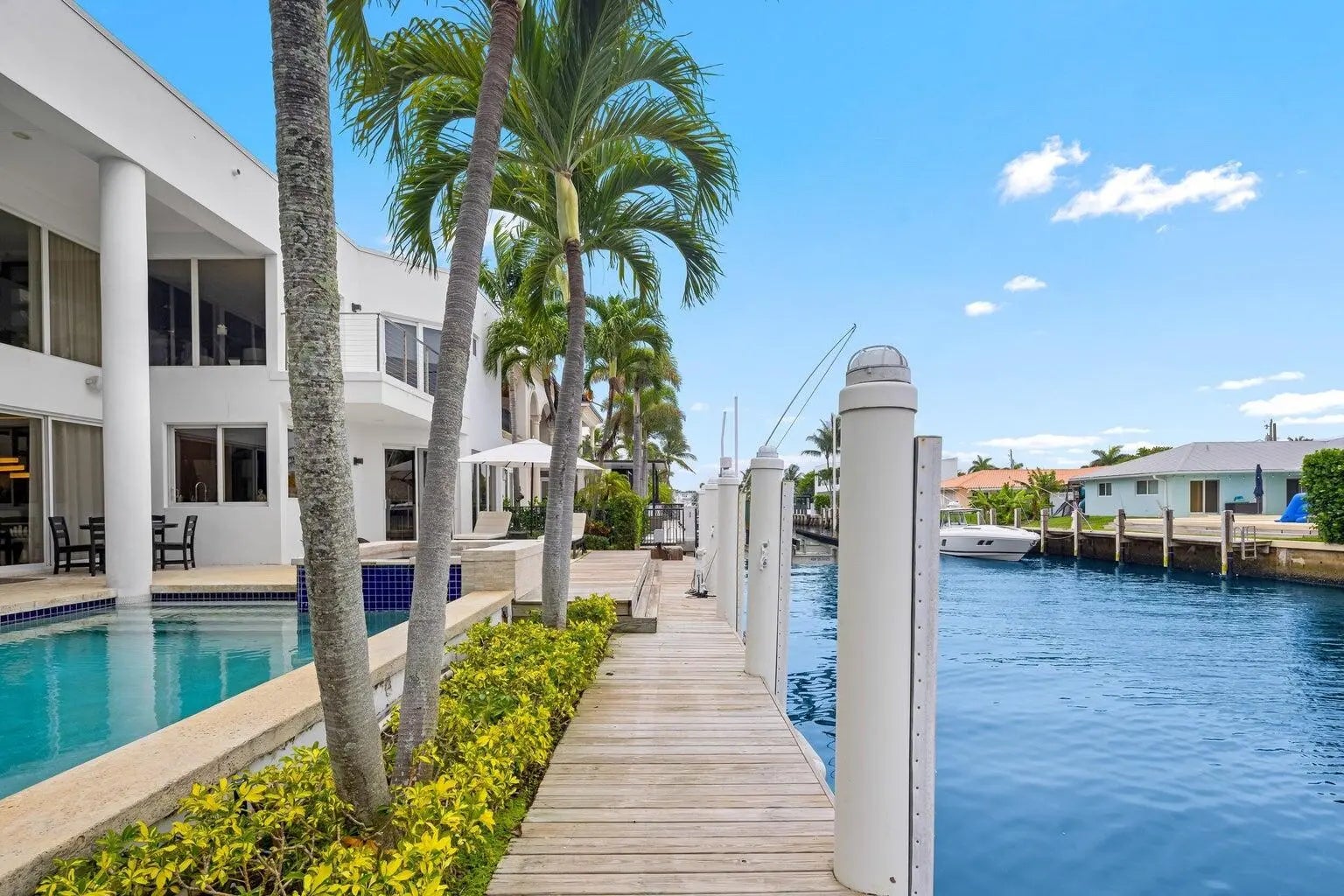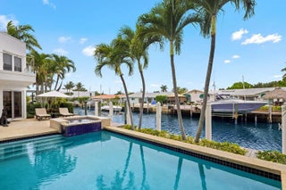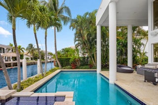 Experience the pinnacle of South Florida living in this fully furnished, turnkey modern estate located just two lots from the point on a deep-water canal with 85 feet of dockage--perfect for boating enthusiasts with direct Intracoastal and ocean access. This two-story residence showcases striking architectural lines, dramatic columns, and expansive glass walls that flood the interiors with natural light. Inside, enjoy soaring ceilings, designer lighting, curated furnishings, and an open-concept layout that seamlessly integrates formal living, dining, and entertaining spaces. A floating staircase and glass-enclosed loft areas enhance the home's sense of scale and modern elegance.Step outside to a private tropical oasis with a sun-drenched pool and spa, ideal for lounging or entertaining