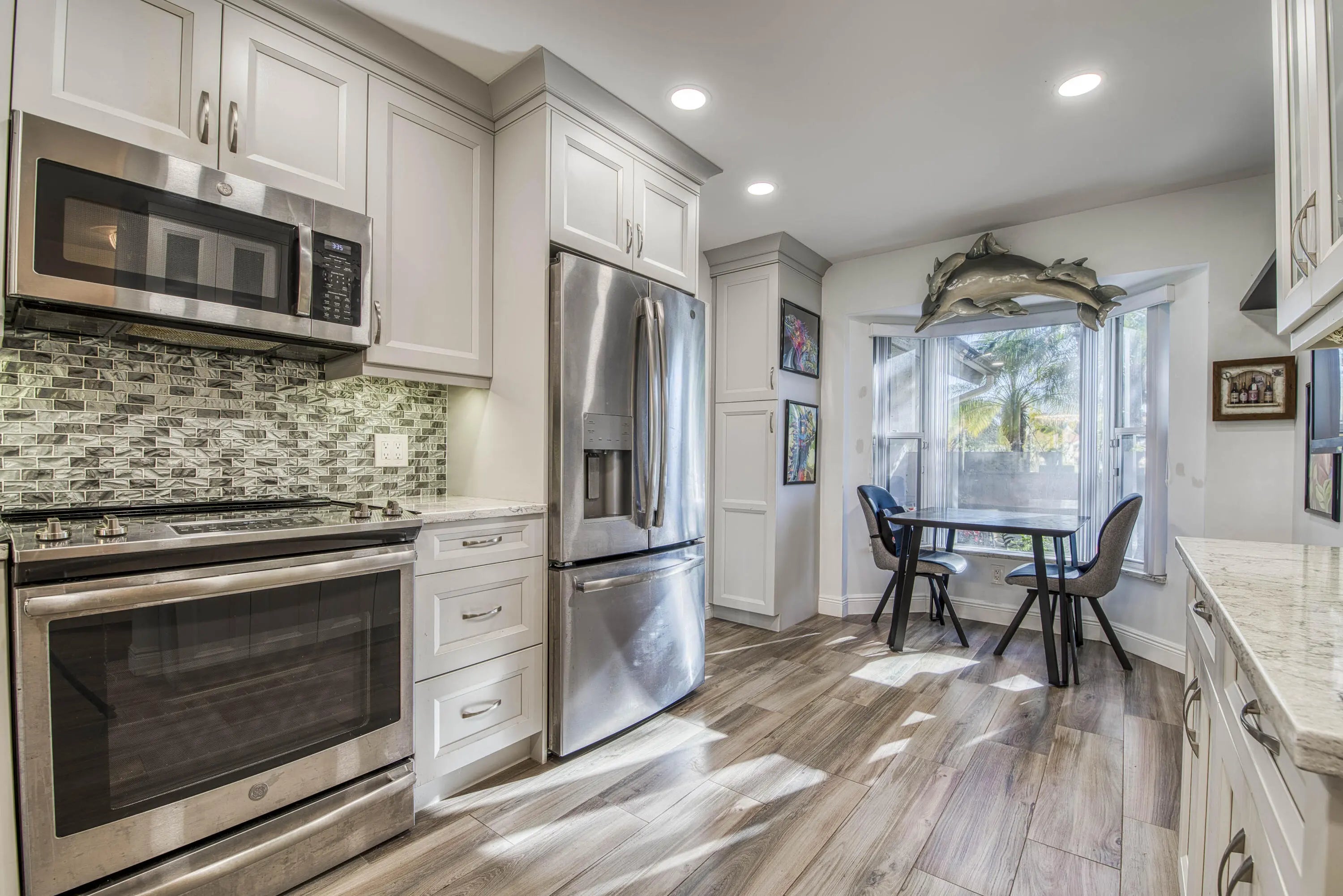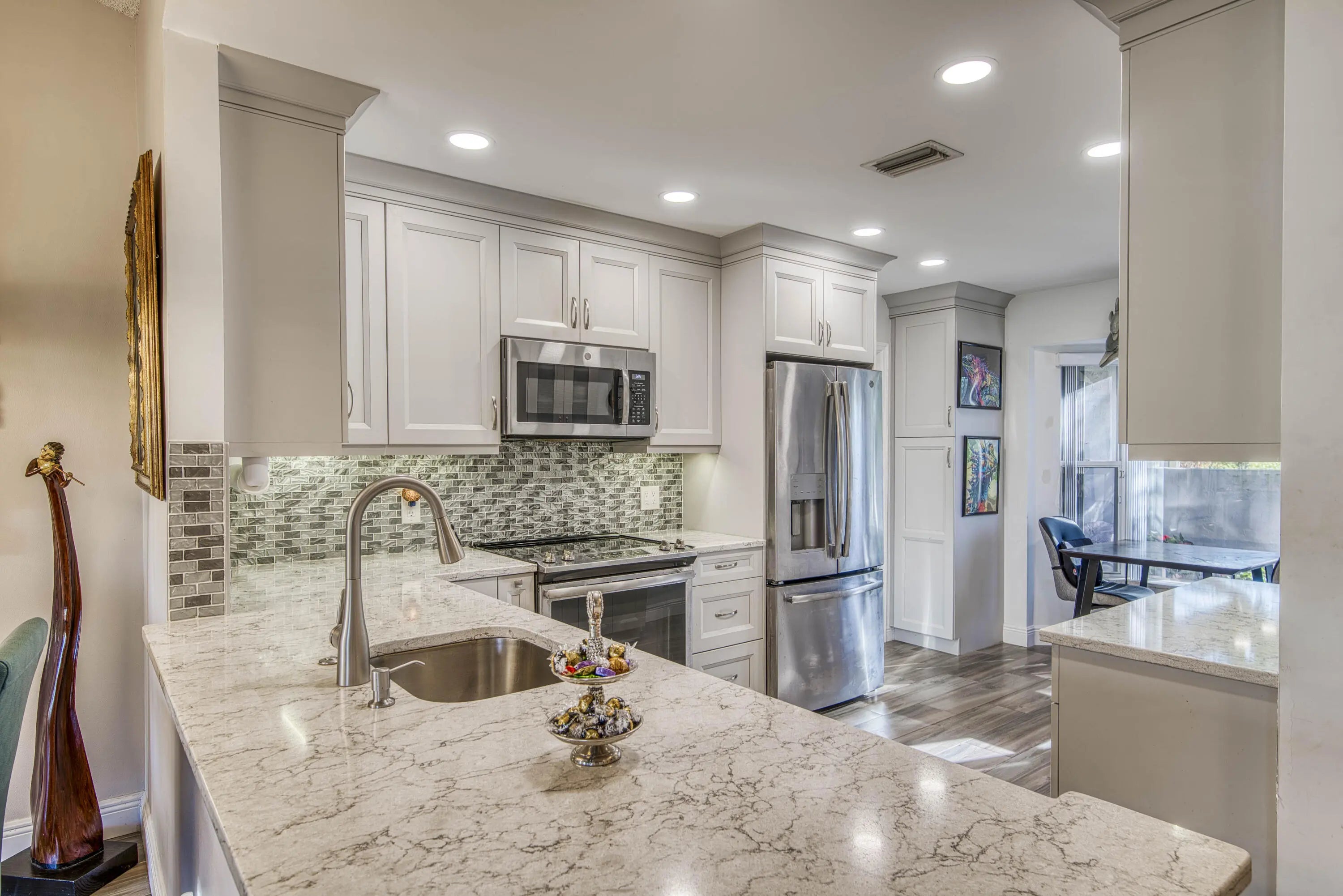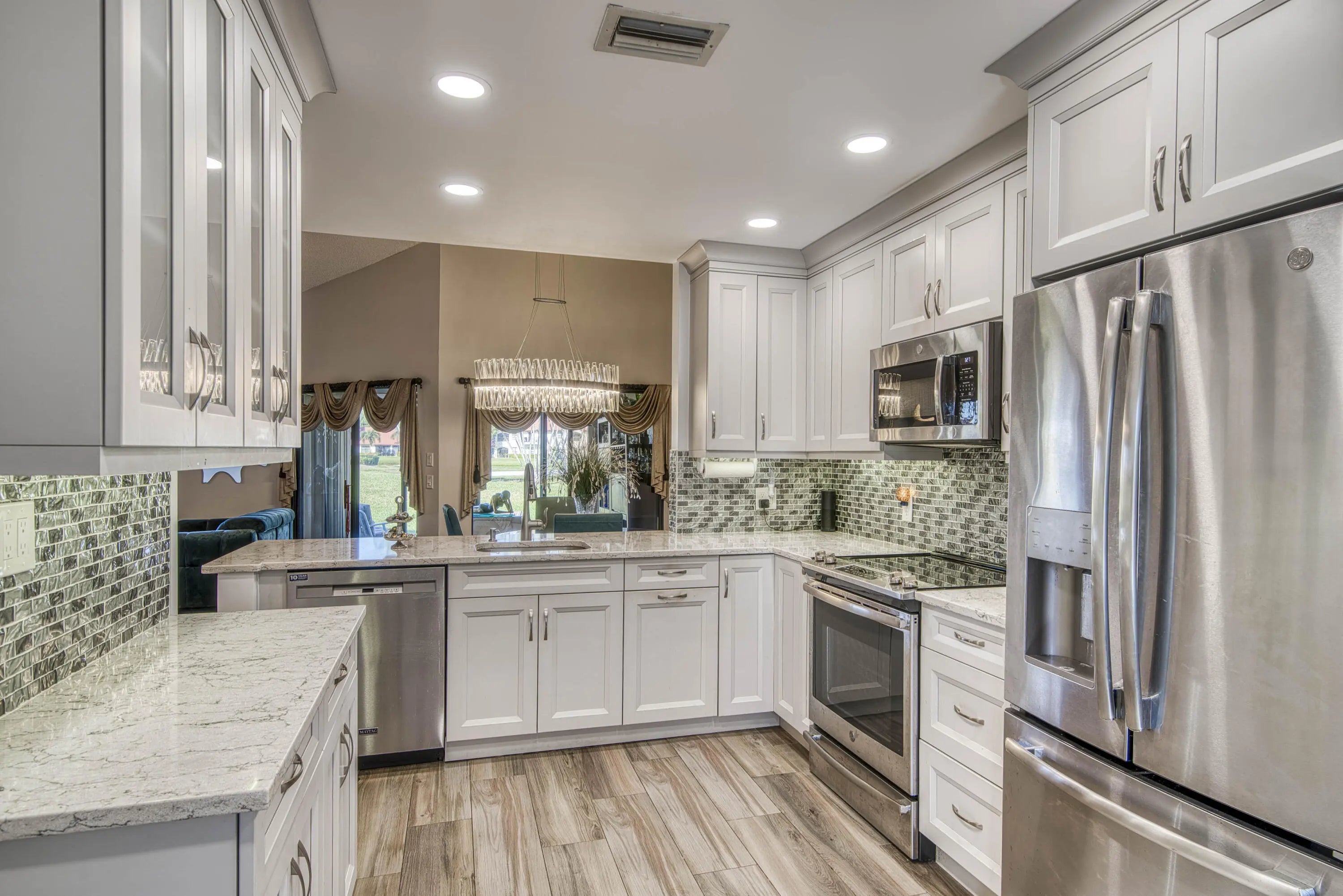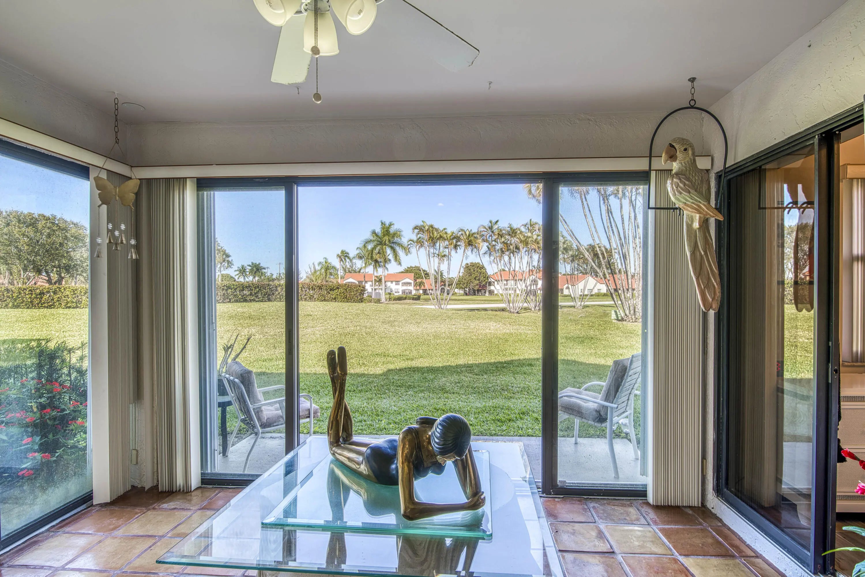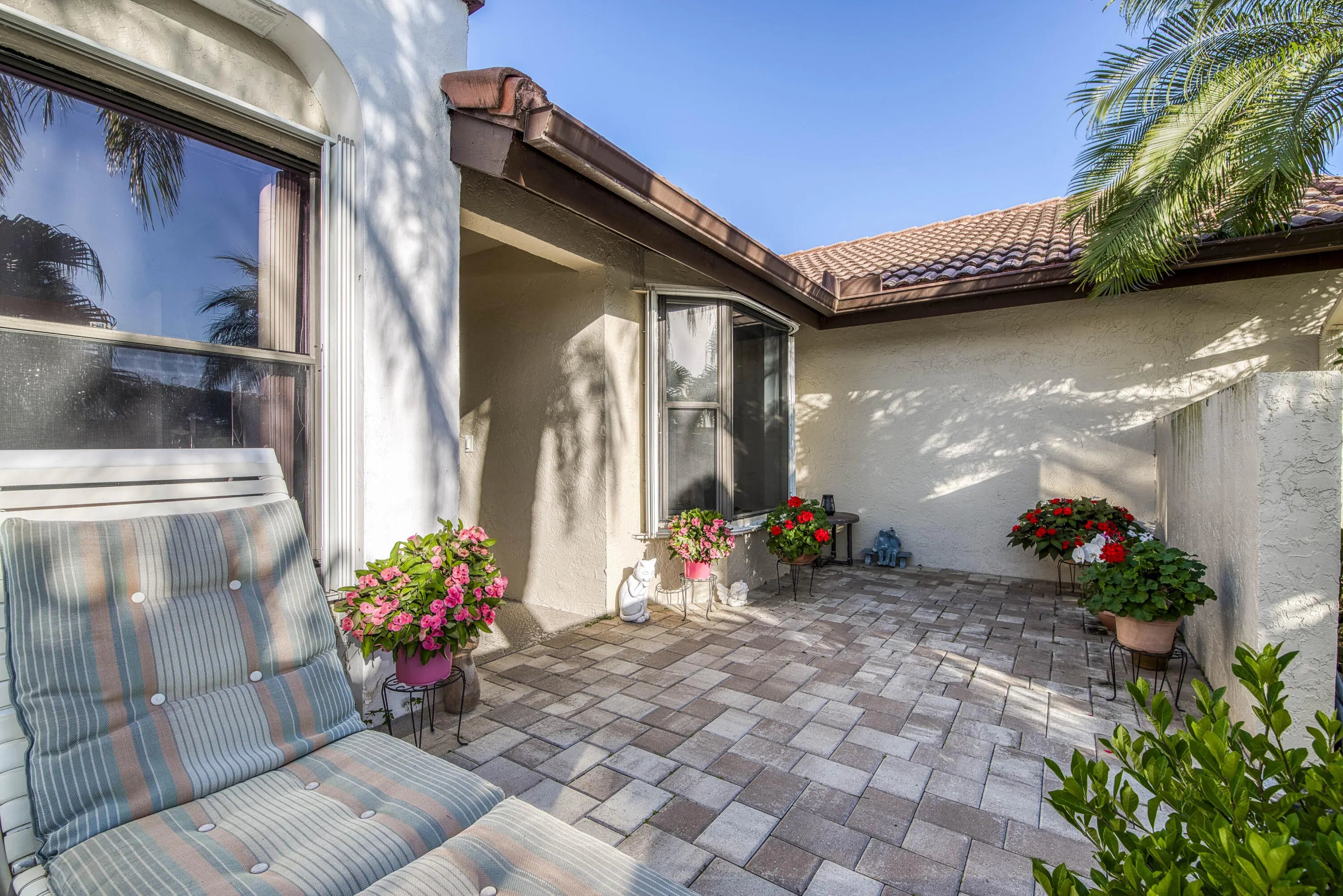Welcome to this beautifully maintained villa in The Moorings at Aberdeen East, a desirable community with NO mandatory membership. This 2-bedroom, 2-bath home with attached garage features a private paved courtyard, mature landscaping, and low-maintenance living. Inside, enjoy a bright open floor plan with neutral finishes, flexible living/dining areas, and an updated eat-in kitchen with modern appliances and ample cabinetry. The spacious primary suite offers a walk-in closet and en-suite bath; the guest bedroom is versatile for visitors, office, or hobbies. Additional highlights include a Florida room overlooking the lake, unique side yard, shutters, well-maintained sliding doors/screens, and epoxy garage floor. Residents enjoy pools, fitness center, tennis, pickleball, clubhouse, and