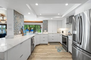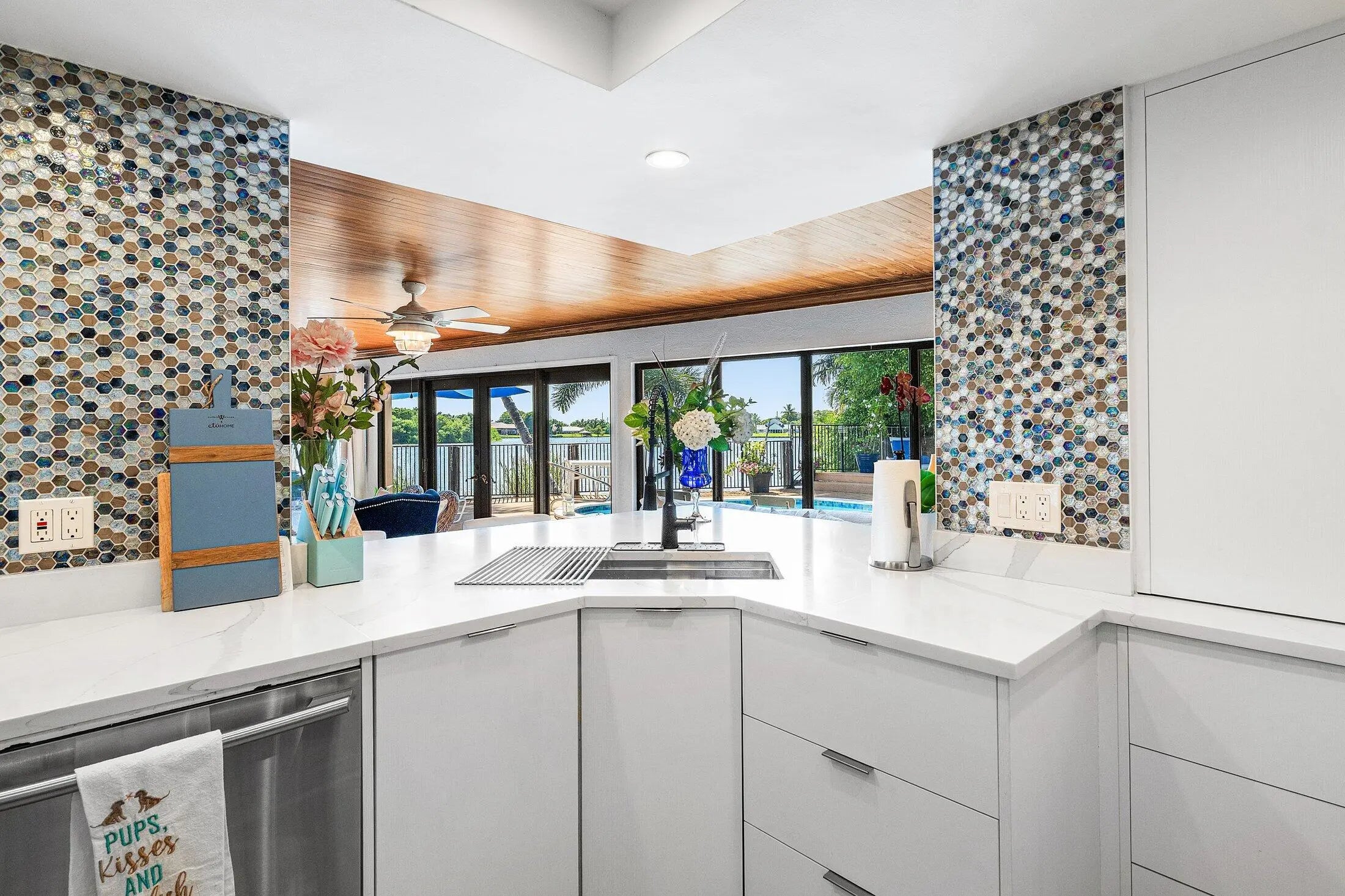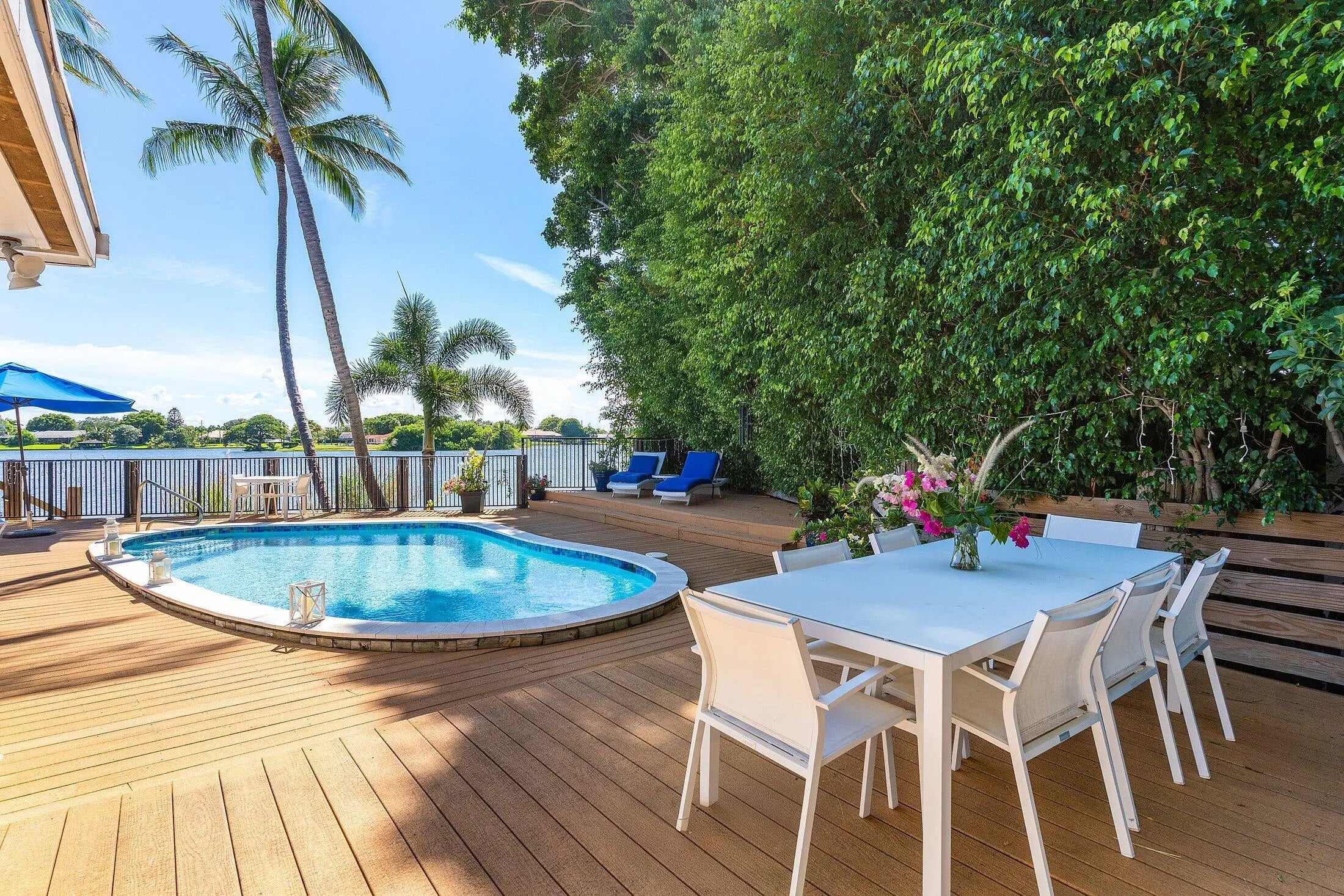 SEASONAL RENTAL 2026 -- Available through MAY. Rarely available Turnkey Lakefront Oasis with Brand-New Designer Renovations | East Delray Beach| Experience the epitome of luxury waterfront living at this completely renovated Lake Eden retreat, tucked away on a quiet cul-de-sac with panoramic breathtaking lake views. Every inch of this 3-bedroom, 2-bath home has been thoughtfully designed and impeccably furnished, making it a true turnkey gem. The heart of the home is a coastal-inspired chef's kitchen with brand-new quartz countertops, top-of-the-line appliances, and seating for four at the spacious island--ideal for casual dining or entertaining. Step outside to your oversized heated pool, gleaming with fresh azure blue tile, and soak in the sun in total privacy.