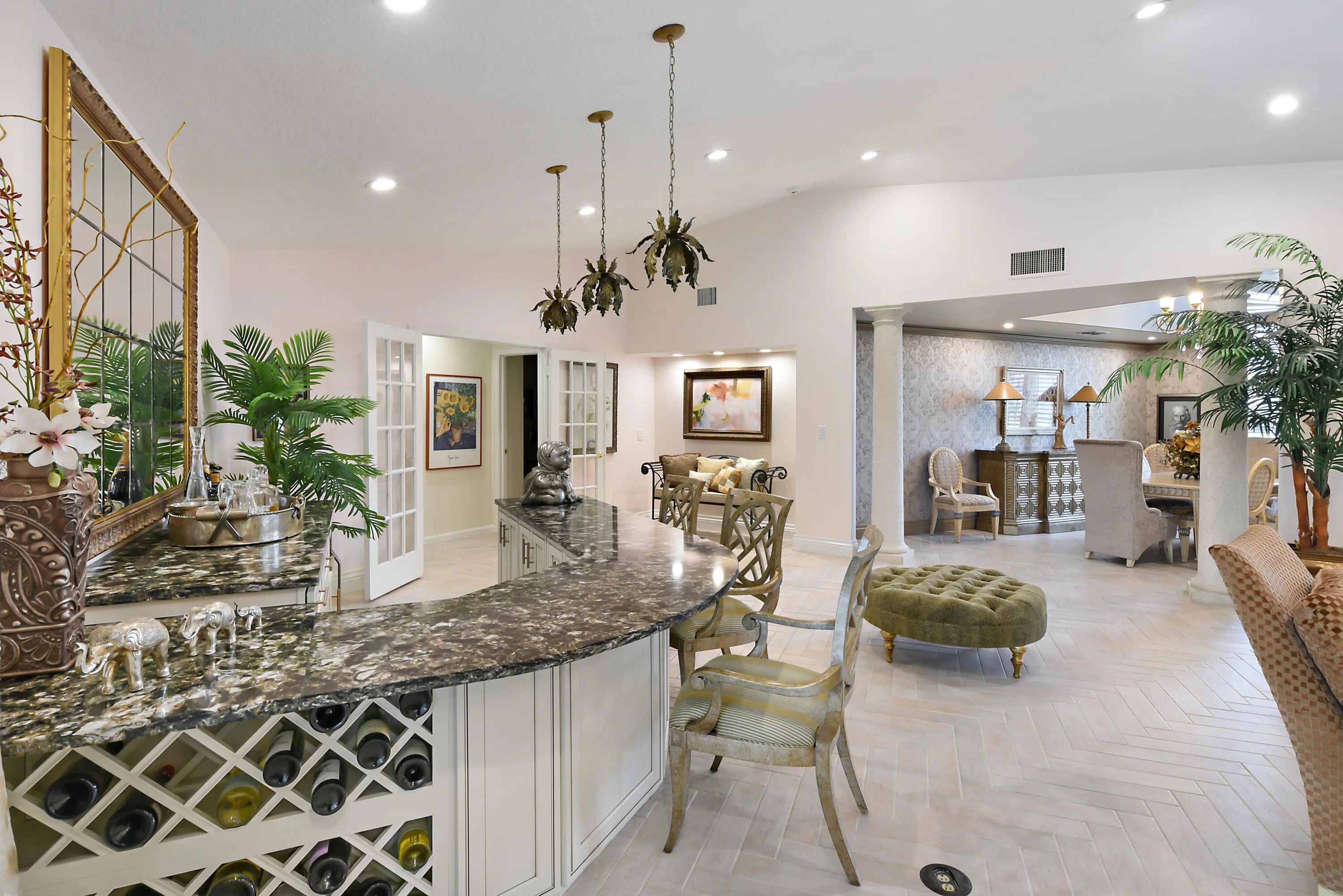 This stunning home was renovated to perfection. Amazing lake & golf course views! Stonebridge is unique in its warmth with backdrops of sunshine and blue skies, Stonebridge Country Club is a desirable tropical paradise for those seeking an unsurpassed, active lifestyle. Close to all the best Boca has to offer. 5 bedrooms, 4 baths. 5th bedroom used as the den. 2.5 car garage. Unique tile flooring. French doors throughout. A chef's delight kitchen w/ hooded cooktop & convenient island. New roof 2021. Enjoy entertaining in the formal living room with your own bar or partake of casual relaxation in the family room in front of the fireplace. Screen enclosed pool & spa invite gatherings of friends & family. Enjoy the security and protection of Impact windows.