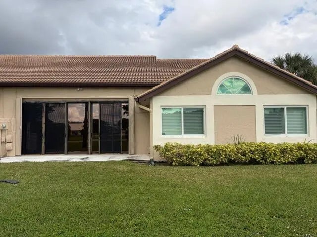 Aberdeen country club, beautiful villa golf and Lakeview. Two bedroom plus office / den. Modern kitchen with granite countertops, stainless steel appliances, white cabinetry. Mainly impact hurricane glass and back hurricane shutter. Very large, enclosed back patio overlooking the golf course. three year-old roof. Home is on a quiet cul-de-sac move right in.