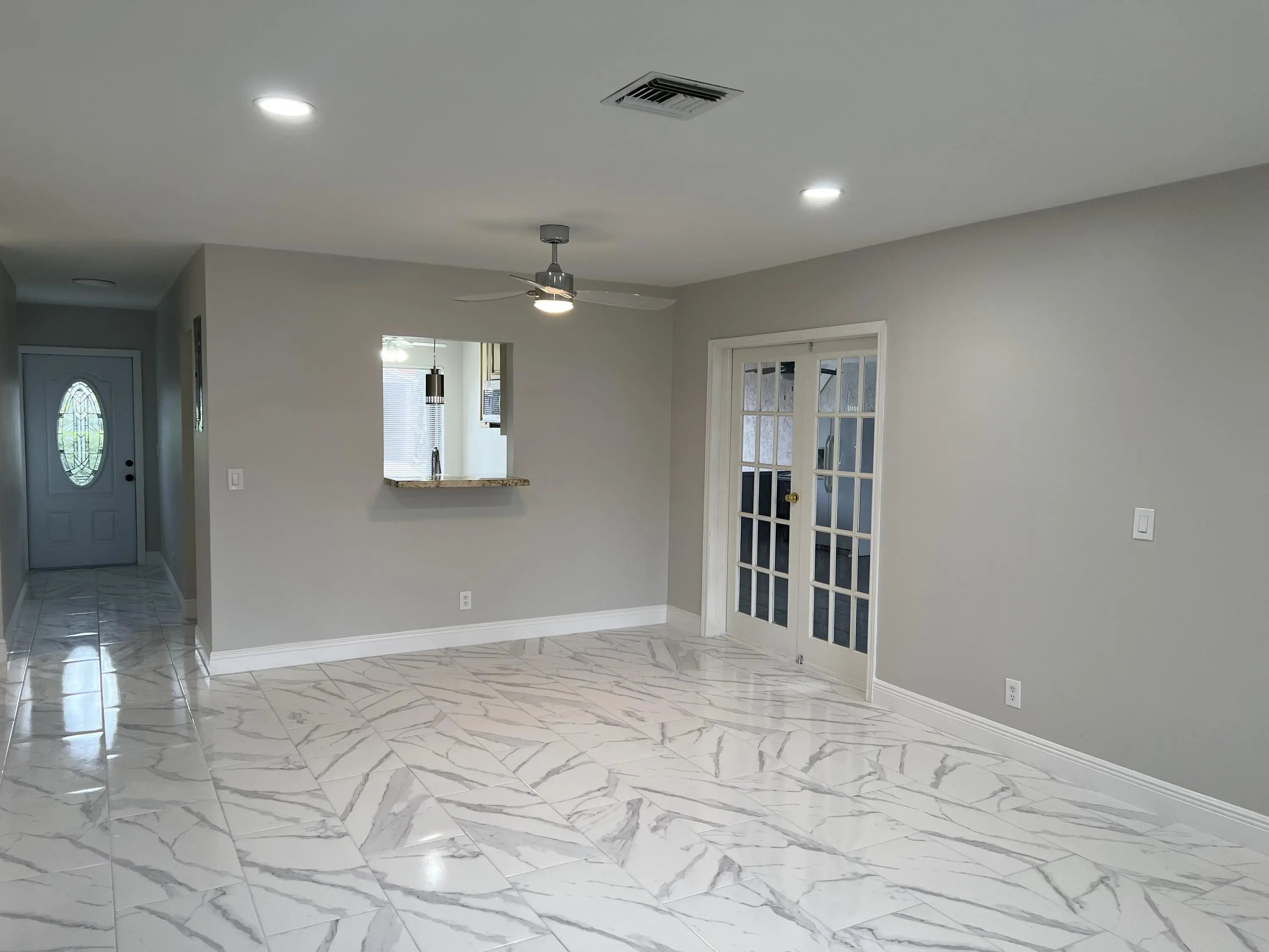 Renovated, New Stainless steel appliances, bathroom vanities ,2 walk-in showers, new toilets, new window treatments. Wood Kitchen cabinets with granite. New 5.1/4 baseboards,freshly painted. New up to code curcuit breaker box. freshly painted driveway. French door leading out to the large screened in patio partially covered with storage room. A/C 2020, All Appliances 2023. Acordian shutters throughout. 1 person must be at least 55 and have a 650 credit score, No kids under 15. Cable,internet,lawncare and pest control incl Close to shopping ,, both major hwys. approx 6 miles to the beach & downtown Delray. Service animal allowed with proper documentation