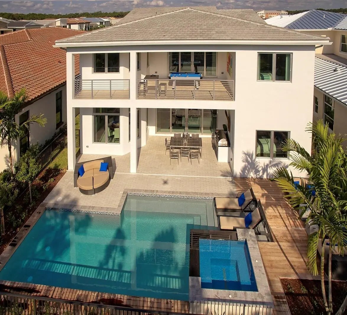 BEST LOCATION! Former Kolter Model!Fully furnished home complete with designer selected finishes and decor.This stunning Plymouth home features numerous upgrades including large island with 3''quartz countertops and waterfall edge, 36''gas on glass cooktop, 2 dishwashers, wine cooler completes the Kitchen. The lavish master suite offers a sitting area overlooking the covered balcony, oversized frameless glass shower, freestanding tub, private balcony , completed with a private Gym/Yoga room. Family Casita situated on the second floor is perfect for extended family or guests, offering an additional entertainment area, bedroom and bathroom. The backyard is complete with a custom heated pool & spa, summer kitchen with built in BBQ, fire pit table. Comes with GOLF CART .