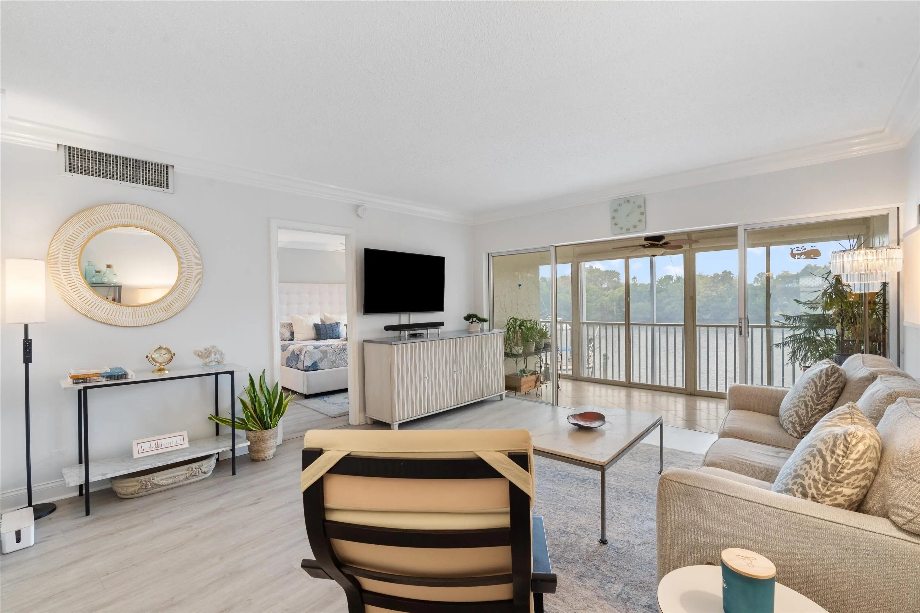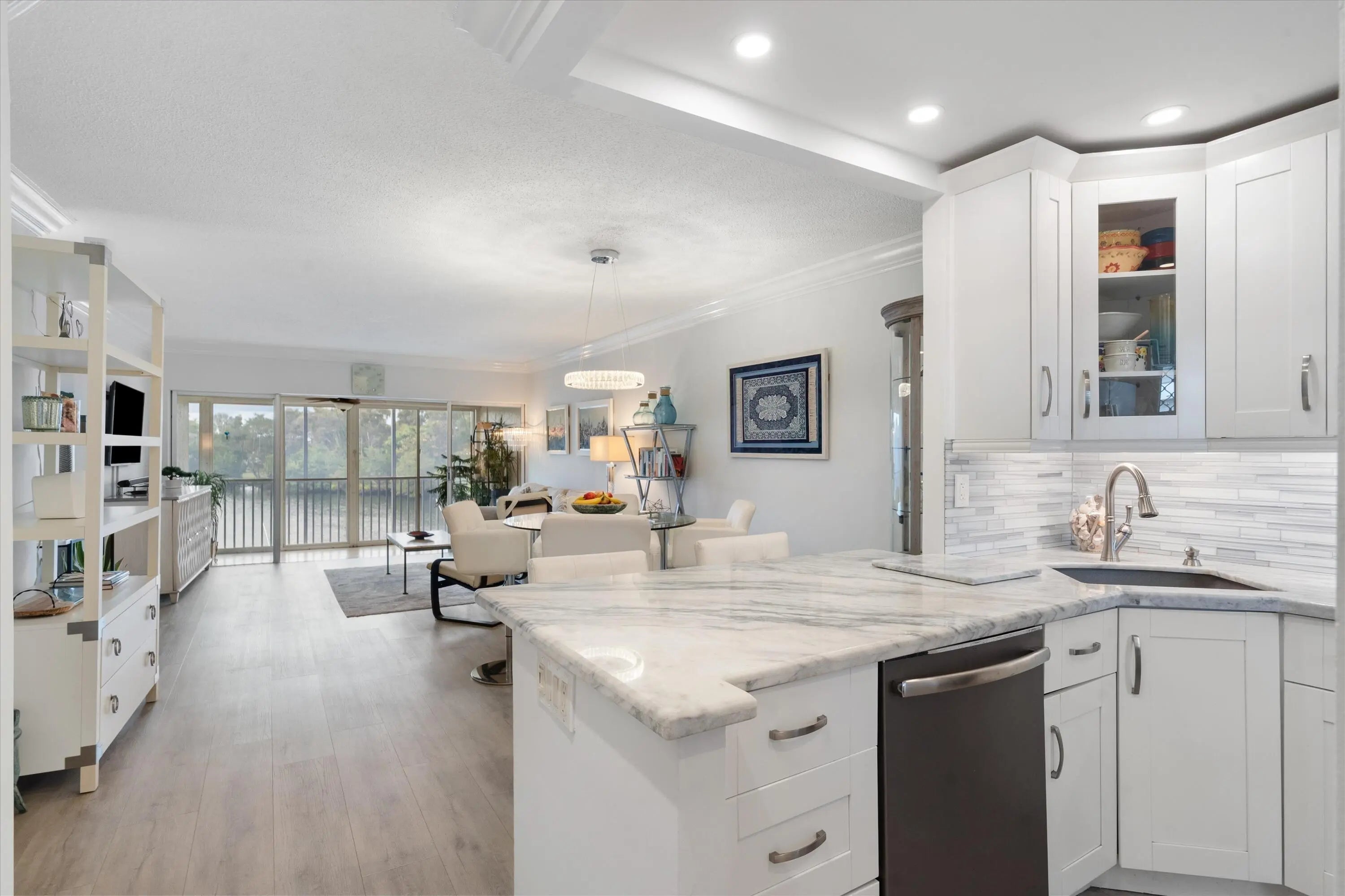 WATERFRONT BEAUTY - Dock your boat just steps away. Perfect location, 3 minutes to Deerfield Beach & Pier. The Cove Restaurants and shops just across the street. This charming updated condo features 2 bedrooms, 2 baths, open kitchen concept, charming coastal vibe throughout with great VIEWS! Enjoy the large lanai with sliding screened openings to allow the Seabreeze in and relax while watching the boats and Manatee go by. The 2nd floor location gives you incredible water views from the minute you open the front door (reminiscent of views from a cruise ship). The unit includes a covered parking space. This neat 55+ community features a beautiful heated swimming pool, gym, saunas, kayak storage, marina with water & electric (short wait list for dock space, great rates!) COME SEE!
