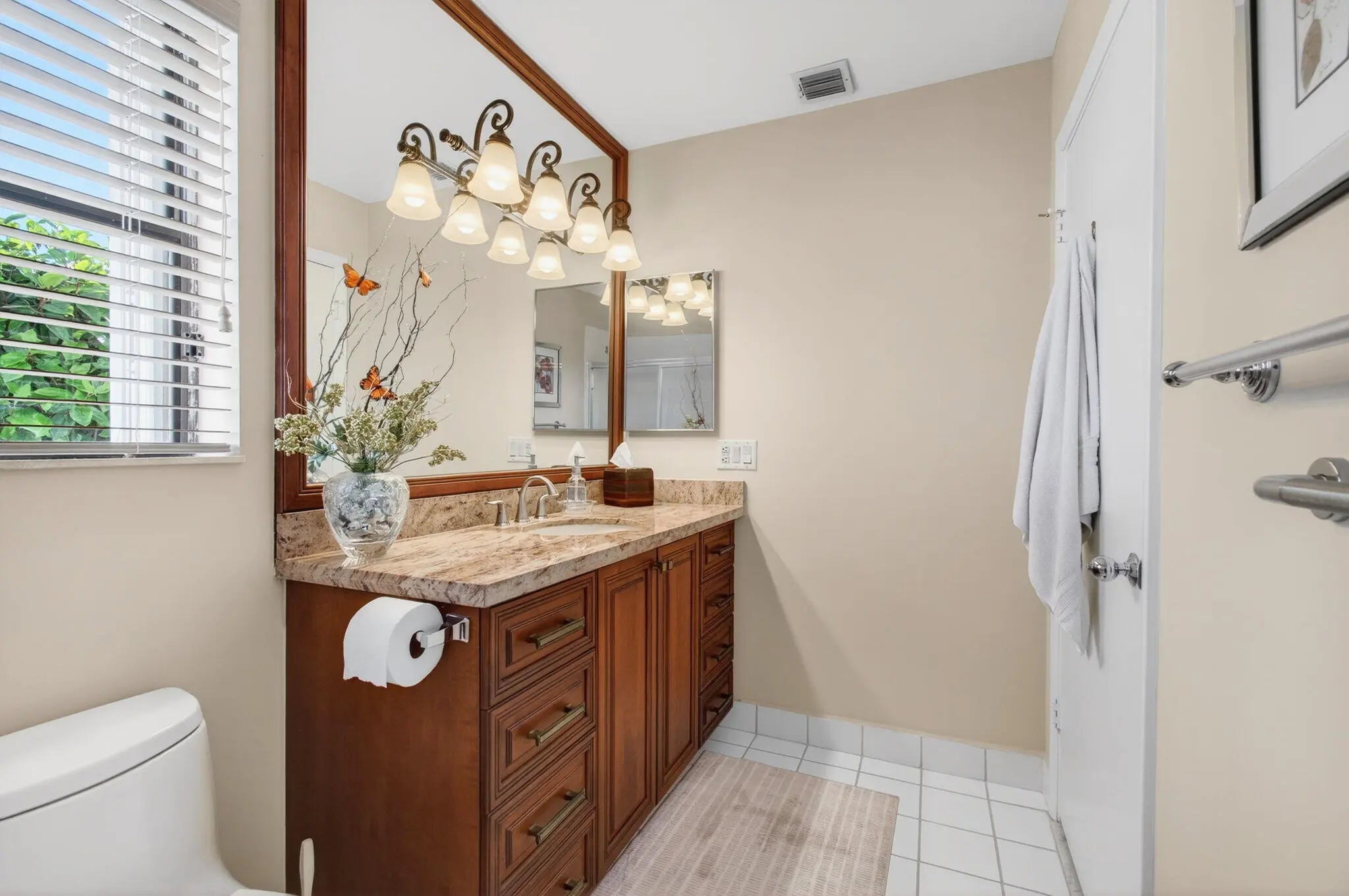 This stunning home was the builders model home. Open floorplan, light and bright with a beautiful golf course view. The large living-dining room has accent mirrors and decorating banding on the wall with slider to the large patio. The kitchen and breakfast area is open to the family room and also has sliders to the patio. The kitchen features wood cabinets, granite counter tops and stainless steel appliances. Huge master bedroom and features a 13 x 6 walk in closet. The guest bedroom is large plus an ensuite updated bathroom. Accordion hurricane shutters, AC 2019, Water heater 2014, Roof 2011. WALK TO HOUSES OF WORSHIP. Laurelwood has a clubroom for social gatherings & community pool. Membership is also available at the Indian Spring Country Club. Seller requests a middle of May closing