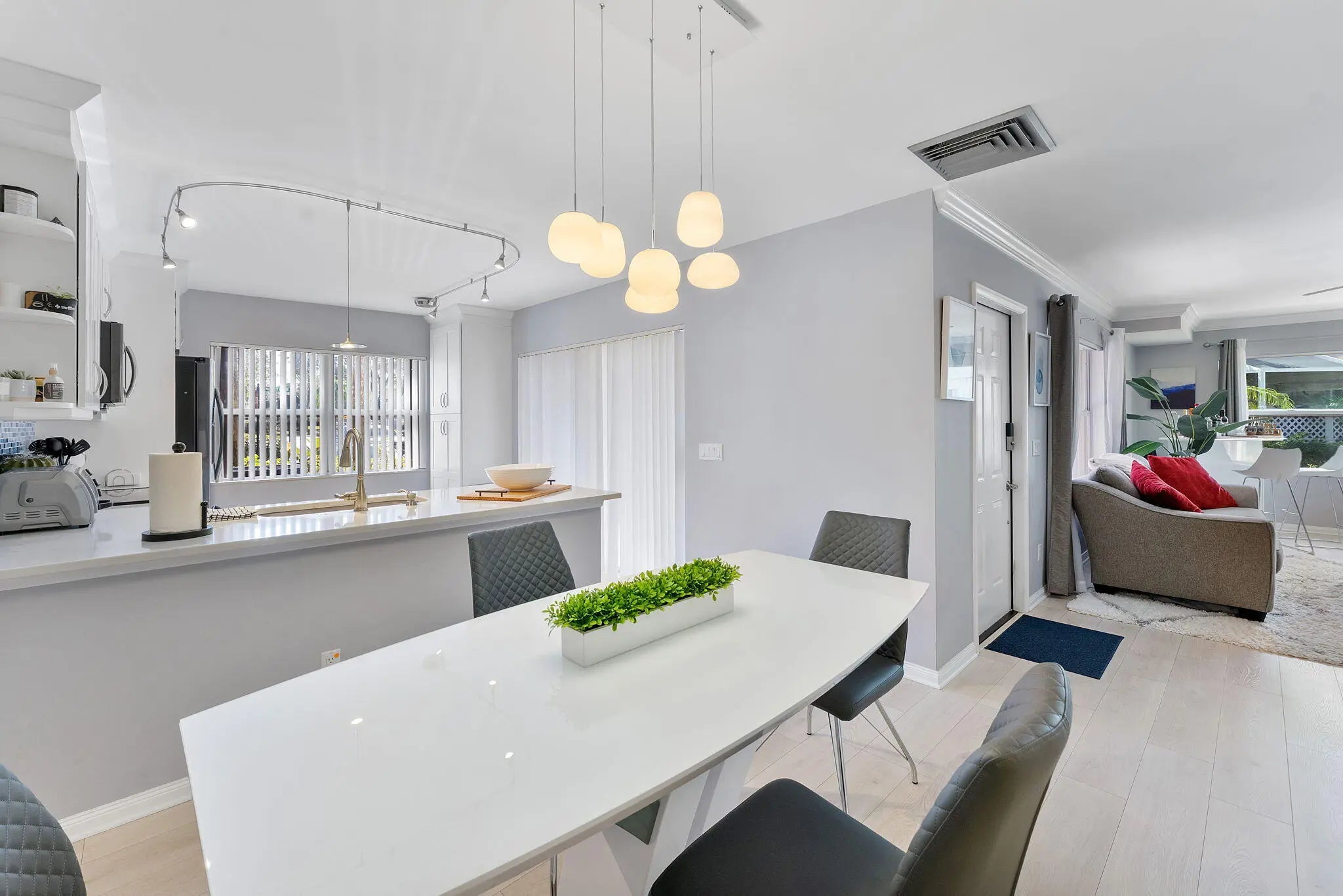 Welcome home to Wellesley at Boynton Beach, this quant man gated townhome community is centrally located and close to everything that Boynton has to offer. This updated 2 bedroom 2 and a half baths is move in ready. Home offers wood look luxury vinyl floors throughout. Newly renovated kitchen with white shaker cabinets, quartz countertops and Samsung appliances. Half bathroom downstairs with dual masters upstairs. W/D in unit, fresh paint, newer fixtures and lighting. Large screened in patio. Complete Accordion Shutters, 2 deeded parking spots. Community is close to 95, restaurants and shopping. Easy to show. Furniture Negotiable AC is 2023.