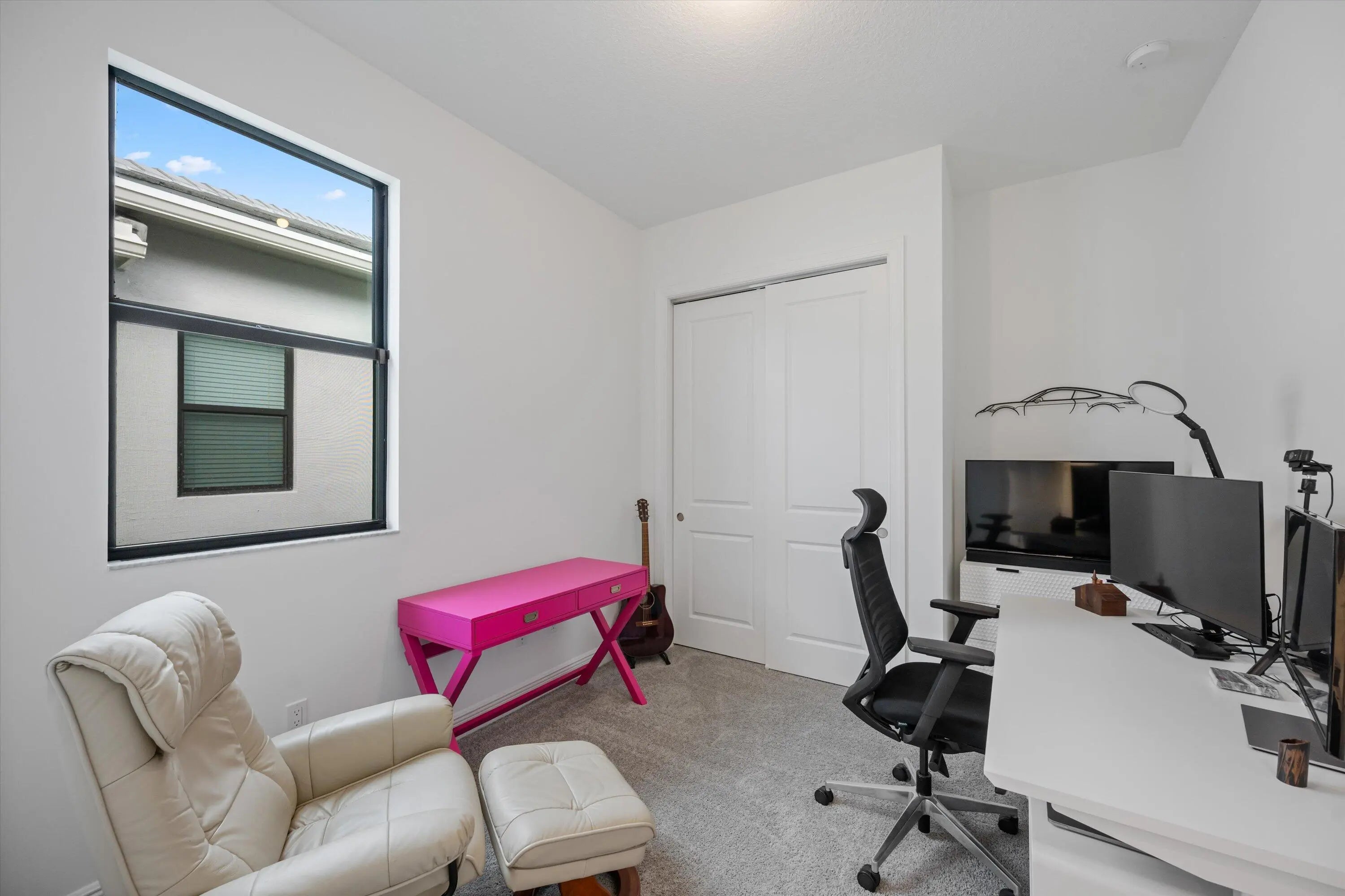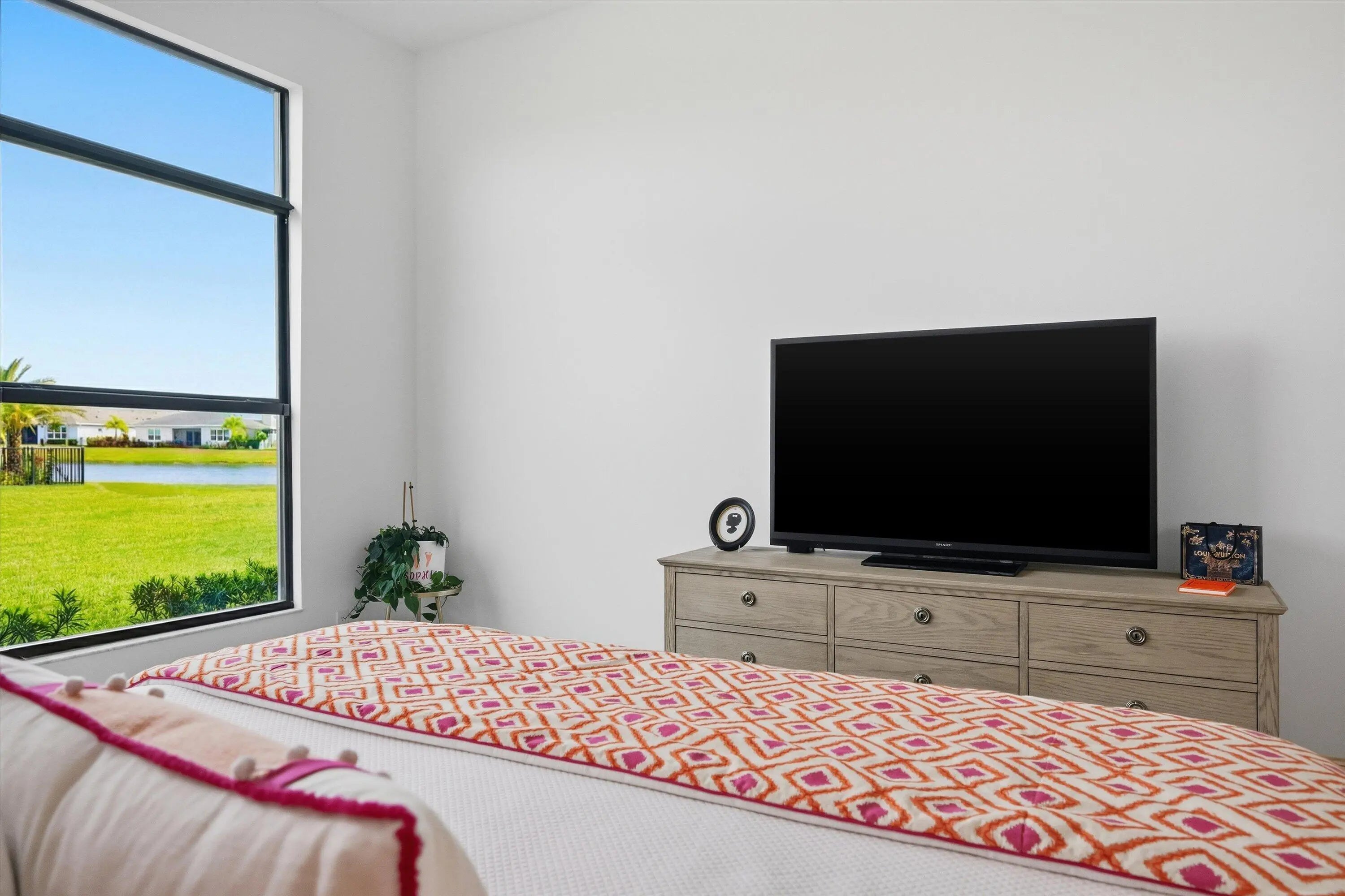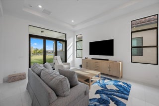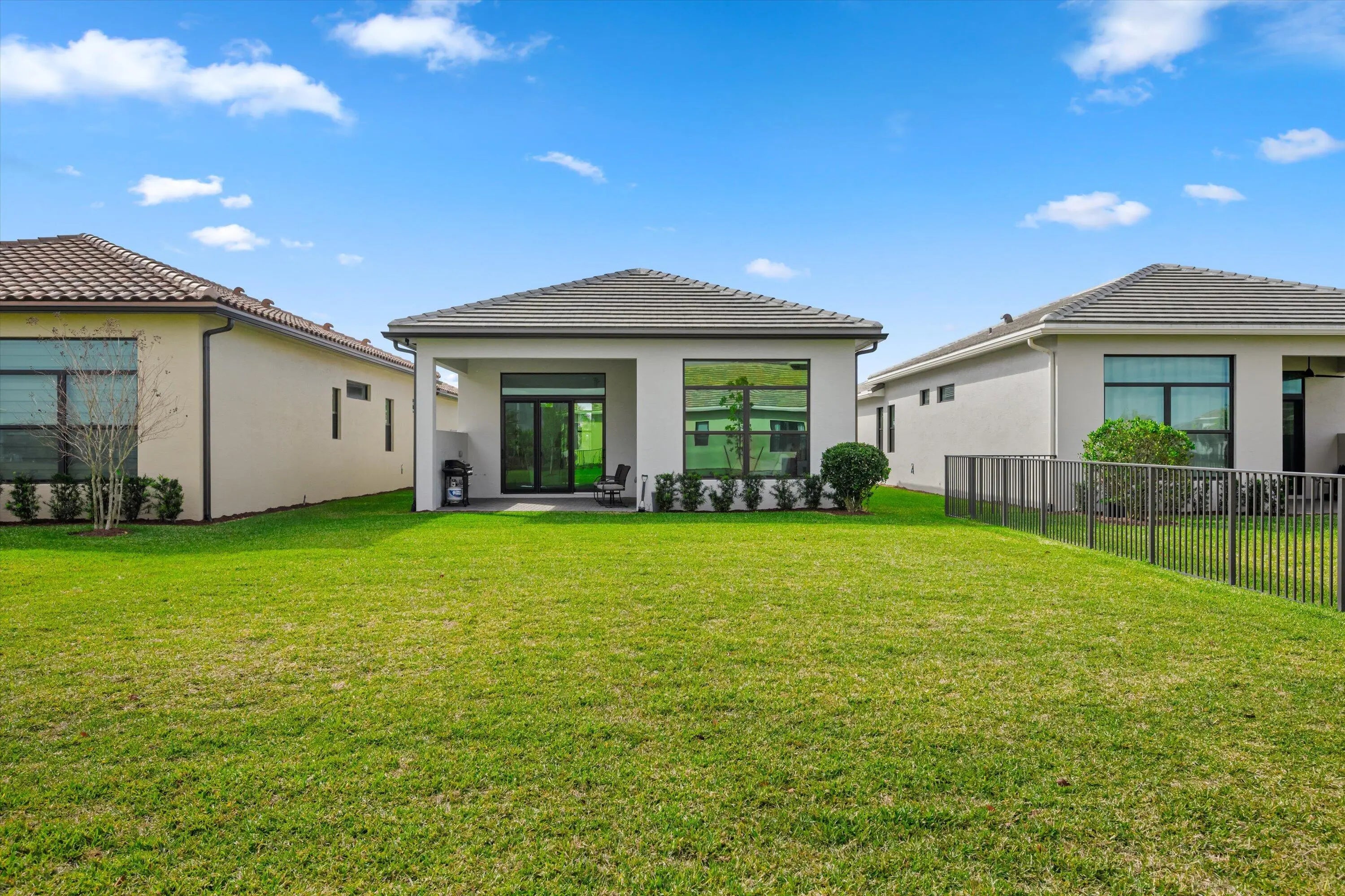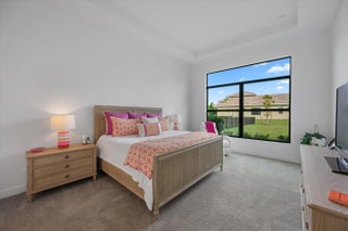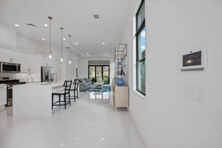 Located in the desirable Cresswind Palm Beach 55+ community, this nearly new, highly upgraded 2-bedroom, 2-bath residence offers a modern, open layout and exceptional outdoor space. Built just one year ago, the home shows better than new with thoughtful upgrades throughout.The interior features upgraded tile flooring, impact windows and doors, and a beautifully designed kitchen with a quartz waterfall island, quartz countertops, gas cooking, upgraded cabinetry, and designer finishes that flow seamlessly into the dining and living areas. Both bathrooms have been upgraded, including an expanded walk-in shower in the primary suite with premium tile and finishes.The rear of the home offers a partial lake view and an exceptionally large, extended backyard