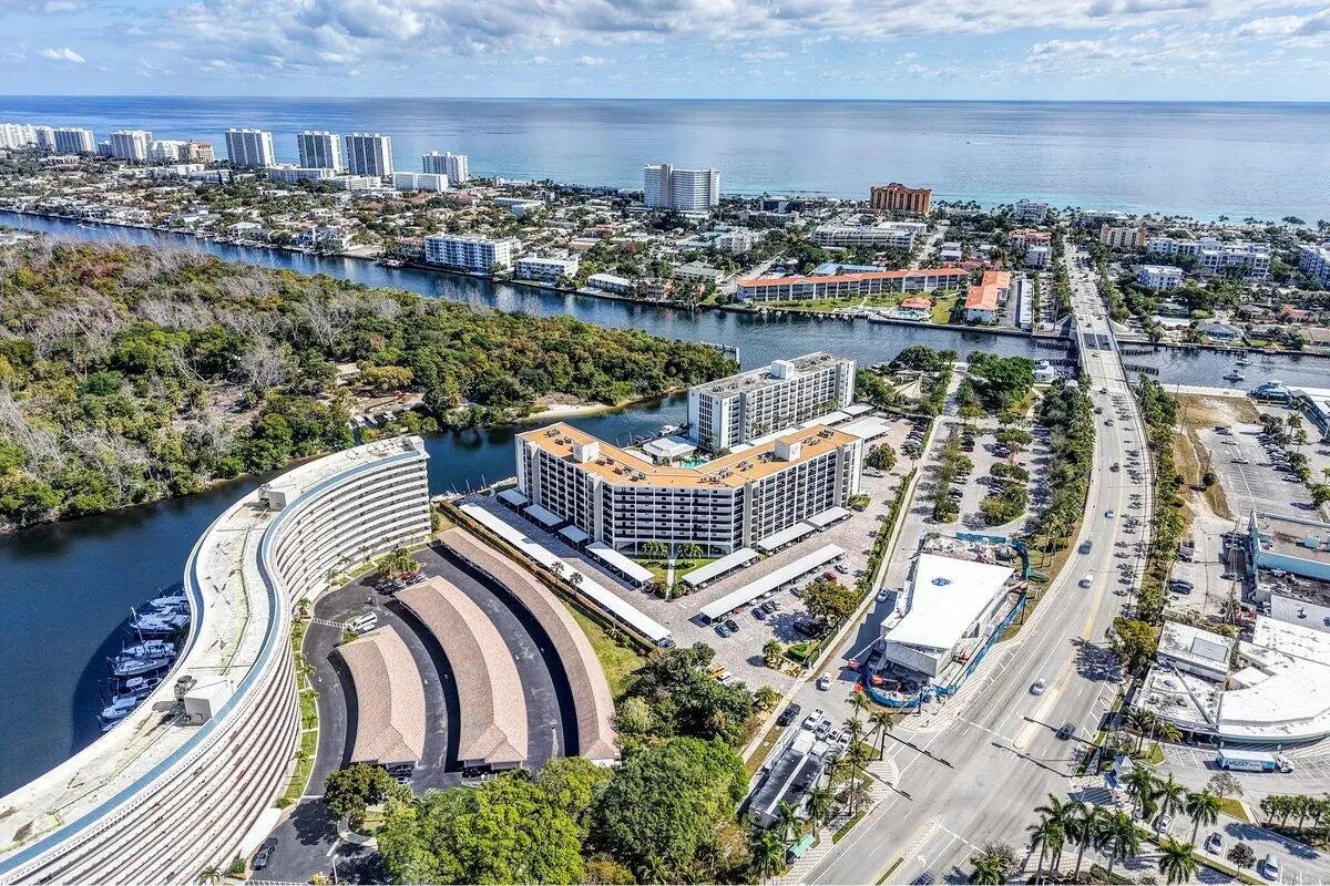 Great location on the water! Fantastic top floor views of the Hillsboro River, Intracoastal, Deerfield Island Nature Preserve & the Ocean! 2/2 unit in the totally renovated Class A Building of the Hillsboro Landings 2 all ages community. Assessment for this unit already paid! Freshly painted interior, new baseboards, updated baths, A/C 2022, newer tankless hot water heater, in unit washer/dryer, motorized hurricane blinds on extended screened lanai & all new impact windows & doors. Amenities galore including heated pool, fitness room, updated clubhouse, grilling area, community dock & assigned covered parking. Stroll over the bridge & you are just a couple of blocks to one of south FL's premier beaches. Stroll under the bridge via Sullivan Park next door & you will be greeted by numerous