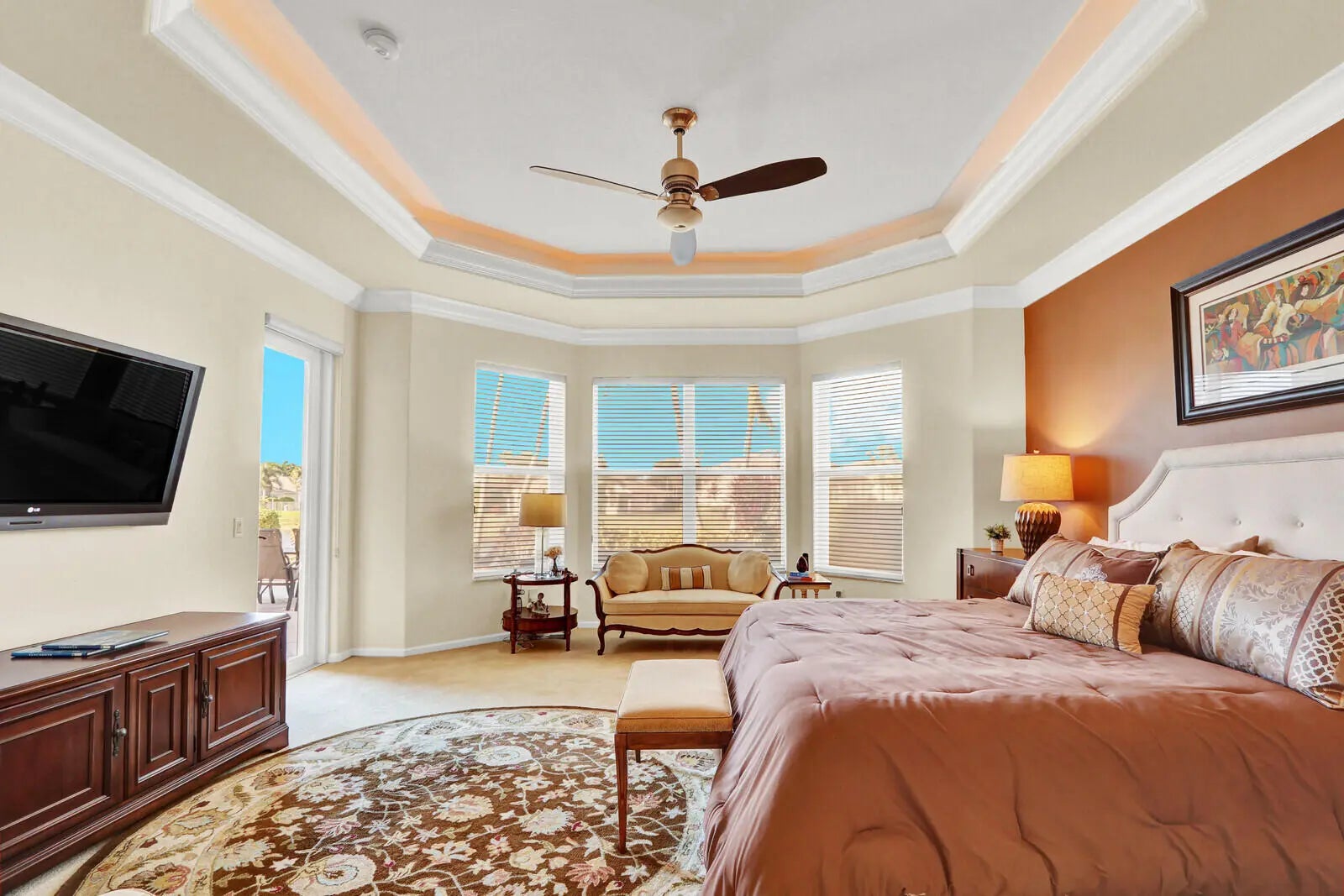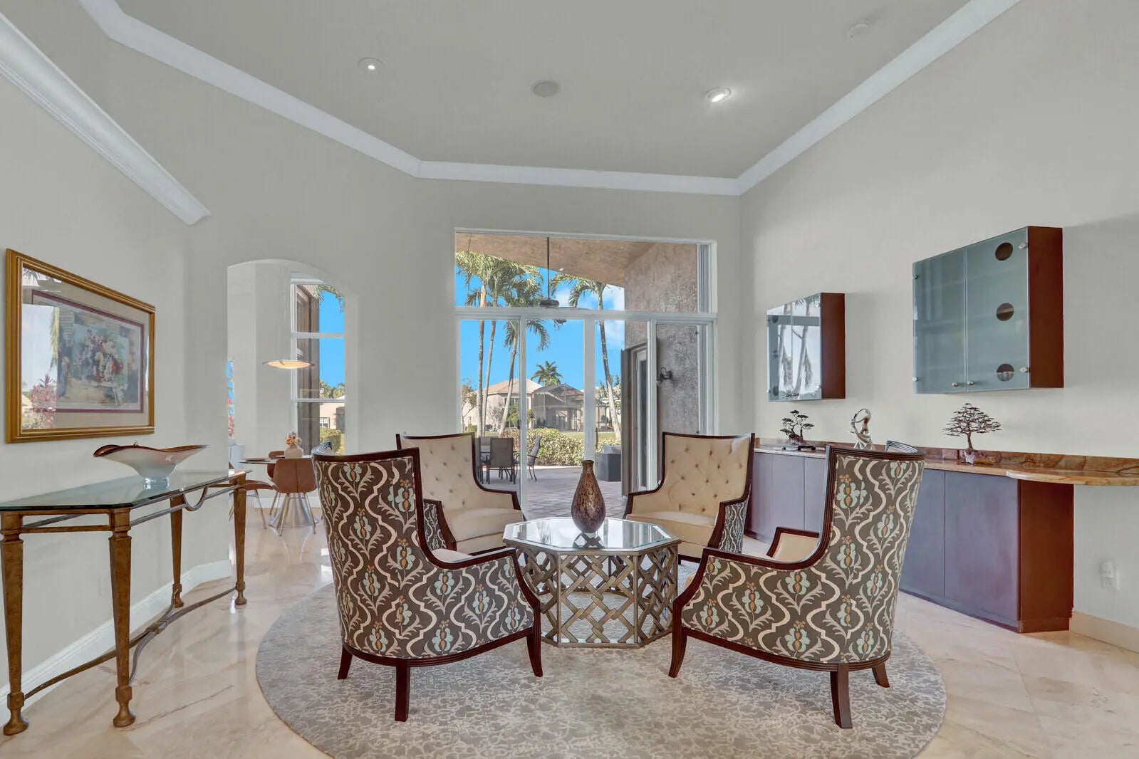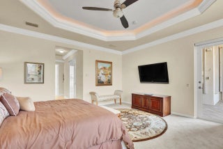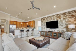 The ultimate Florida Lifestyle in the Vibrant 55+ Community of Valencia Palms. This fully furnished 4 Bedroom home has a seamless flow from the foyer to the double glass doors leading to the expansive backyard paver patio (2,000+ sf) and gorgeous lake views! A custom stone wall TV room is adjacent to the spacious kitchen with granite counters. The light-filled rooms and open floor plan have soaring ceilings throughout. The Primary Suite features a Sitting Area w/door to the patio, 2 Walk-in Closets & luxurious Bath w/dual vanities, oversized Shower & soaking tub. Three spacious Bedrooms, with one currently set up as an office. Resort Style Clubhouse features a Tropical Pool Setting w/Covered Cabanas, Lap & Resistance Pools, and an indoor/outdoor Cafe and full-service Fitness Center.