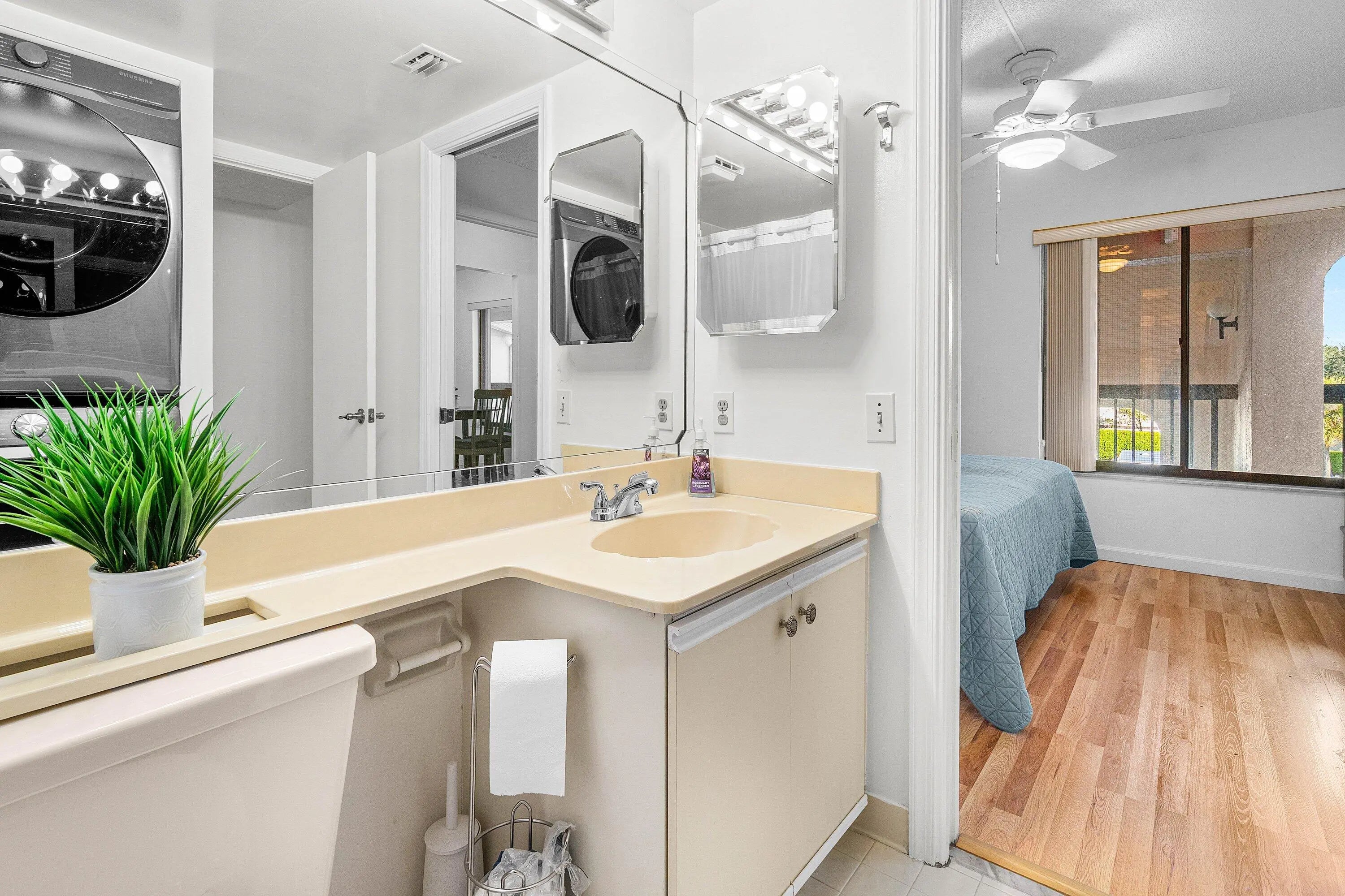 COME SEE THIS PRISTINE & IMMACULATE 2 BED 2 BATH CONDO IN THE VERY ACTIVE GATED COMMUNITY OF BANYAN SPRINGS. NEW ENGINEERED WOOD FLOORING THROUGHOUT THE CONDO GIVES THE FEELING OF CONTINUITY AND SPACIOUSNESS. THE PRIMARY BEDROOM HAS SLIDING GLASS DOORS THAT ALLOW NATURAL LIGHT & LEAD OUT TO THE SCREENED LANAI AND THE PRIMARY BATHROOM IS NICELY UPDATED. RELAX OR ENTERTAIN FRIENDS ON THE SCREENED LANAI. THIS AFFORDABLE CONDO IS MOVE IN READY AND NEEDS NO WORK! ACCORDION HURRICANE SHUTTERS (just in case)... BANYAN SPRINGS HAS AN AMAZING CLUBHOUSE w/ CAFE/RESTAURANT, 2 RESORT STYLE POOLS & 2 SPAS, FITNESS CENTER, SHOW HALL FOR PARTIES, SHOWS & DANCES, ART STUDIO, TENNIS & PICKLEBALL, BEAUTY SALON, BOCCE, MANY CARD GAMES & CLUBS TO JOIN! CLOSE TO SHOPPING, RESTAURANTS AND BEACHES!