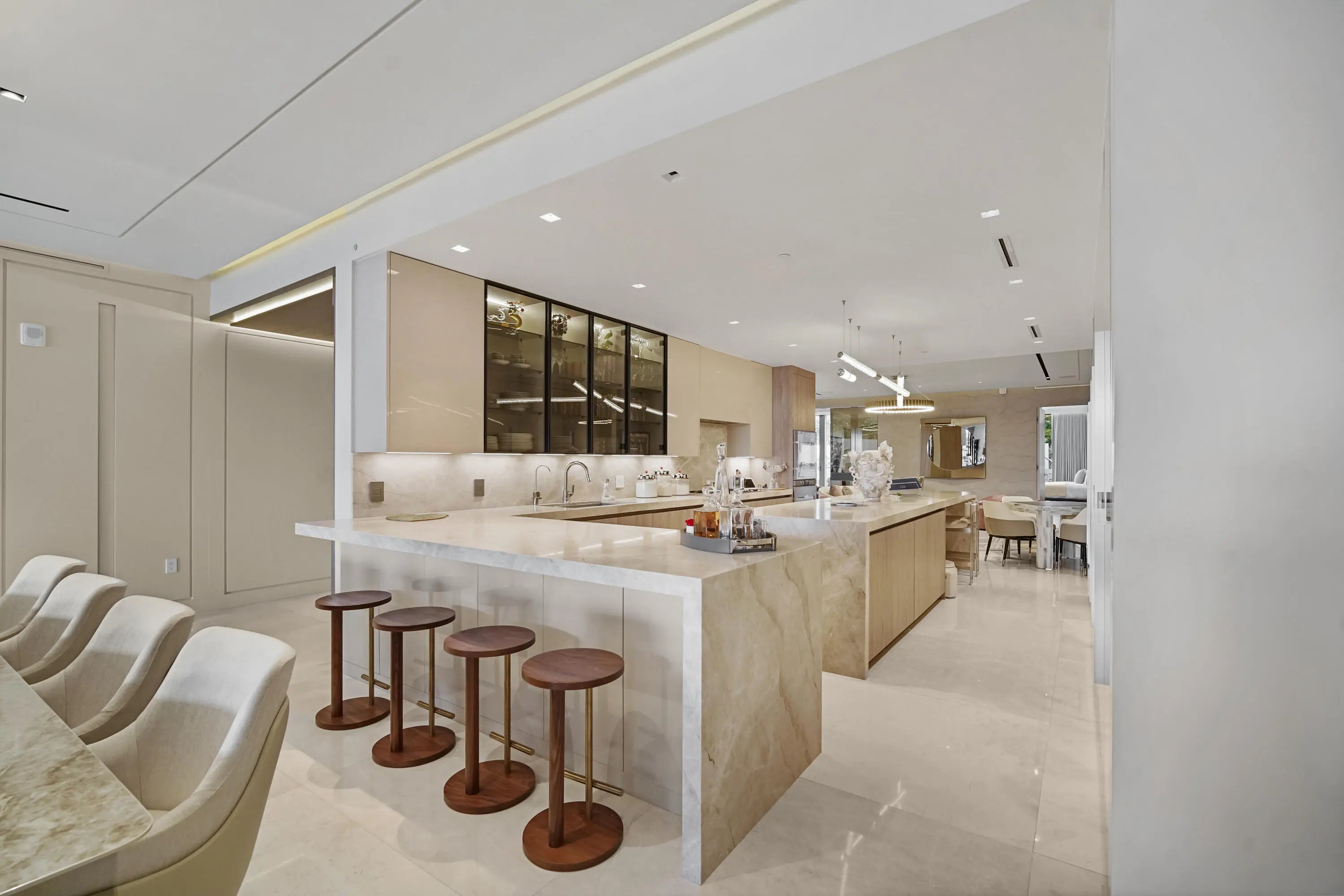 Boca Beach Residences, waterfront Luxury living on Lake Boca! Perfectly positioned directly across the water from The Boca Raton & a short walk to The Boca Beach Club. This Exceptional 4,200 SF residence was meticulous designed by a top designer. It showcases statement millwork with integrated LED inlay lighting throughout, 48'' x 48'' marble flooring, a foyer that welcomes you with a dramatic agate stone feature and a fully custom chef's kitchen designed by Mia Cucina and exceptional appliances by Gaggenau. This home features a primary suite directly on Lake Boca with a generous balcony to enjoy your morning coffee or a cocktail at night. A custom closet to feature your beloved possessions as if you were in a high end department store and a bathroom with a wet room and steam shower that
