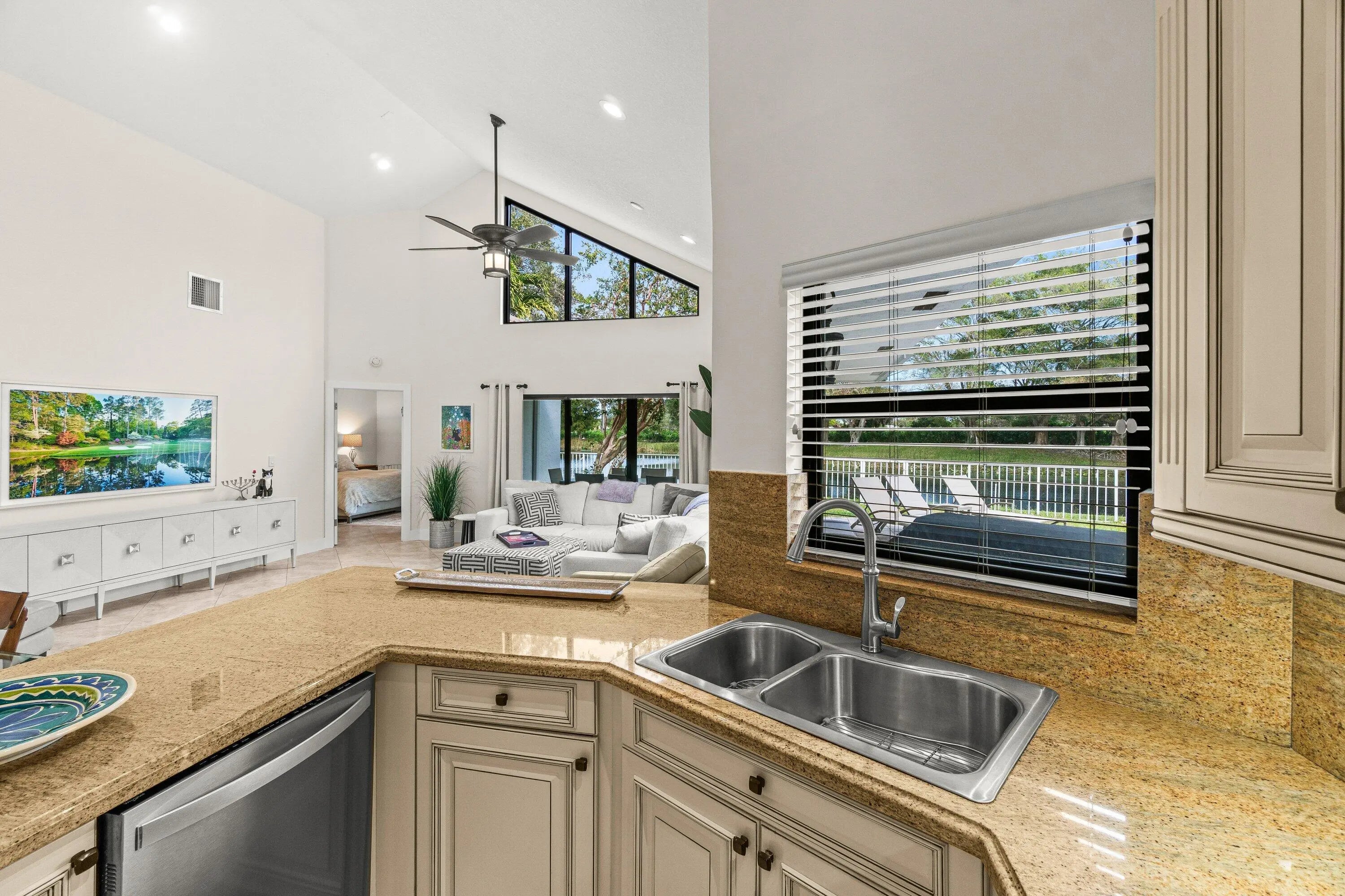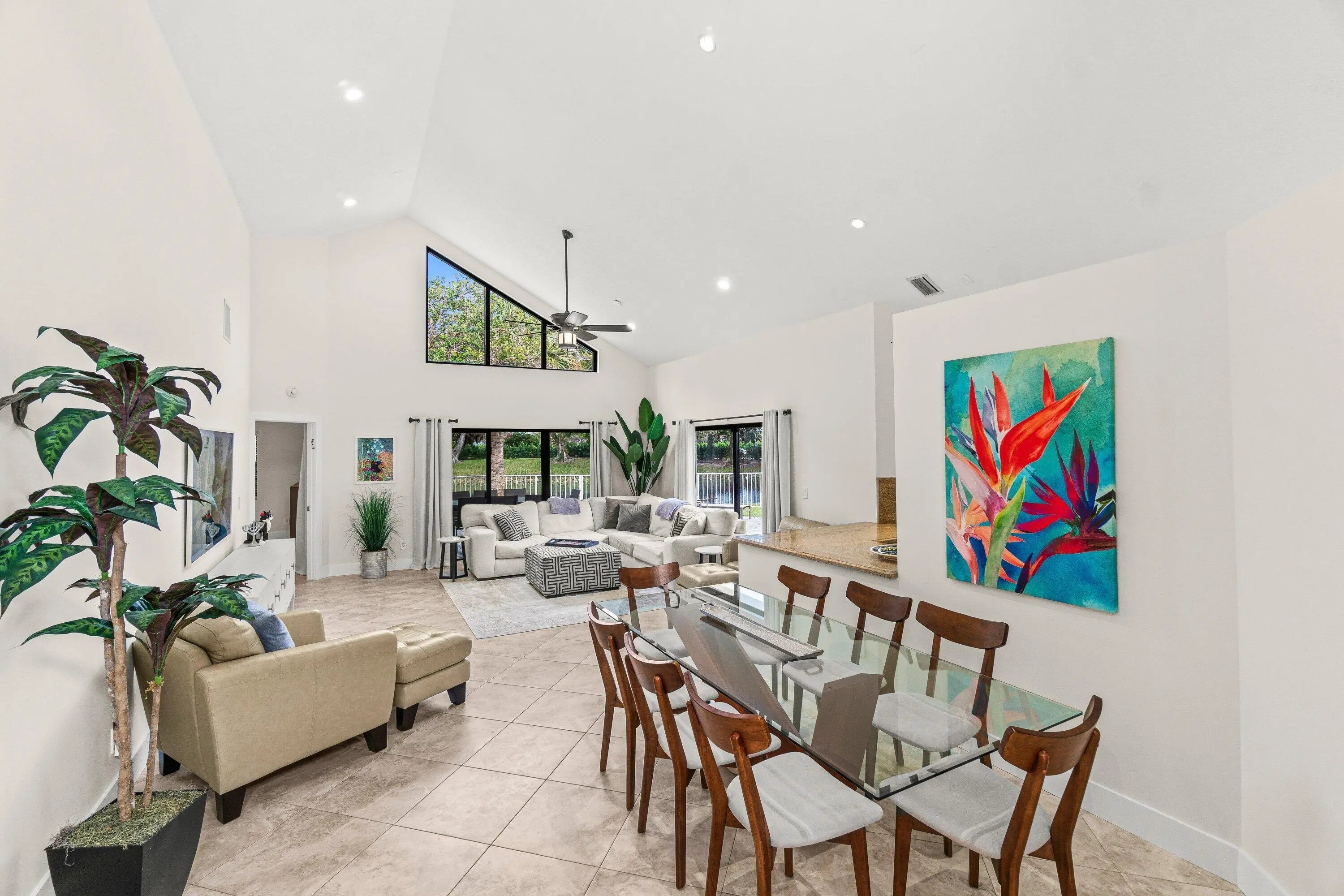 Light and bright 3 bedroom, 3 bath one story single family home with gorgeous lake views and a large backyard with plenty of room for a pool!!! Features include: updated bathrooms, tile flooring throughout, Hurricane impact windows and doors, New roof in 2018, stainless steel appliances, granite counter tops, vaulted ceilings and a covered open patio. This home is located in the Ville de Capri subdivision in the Polo Club.