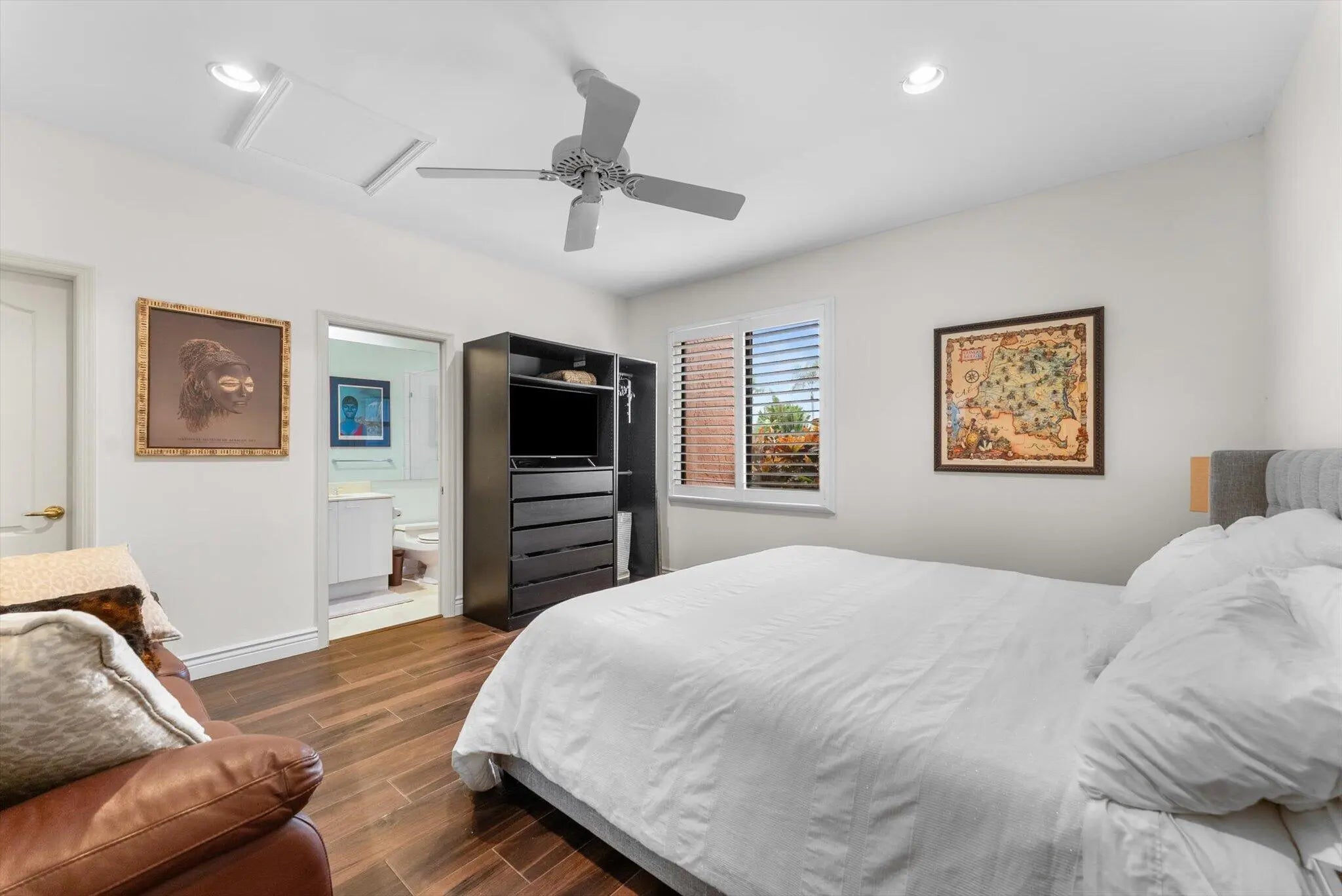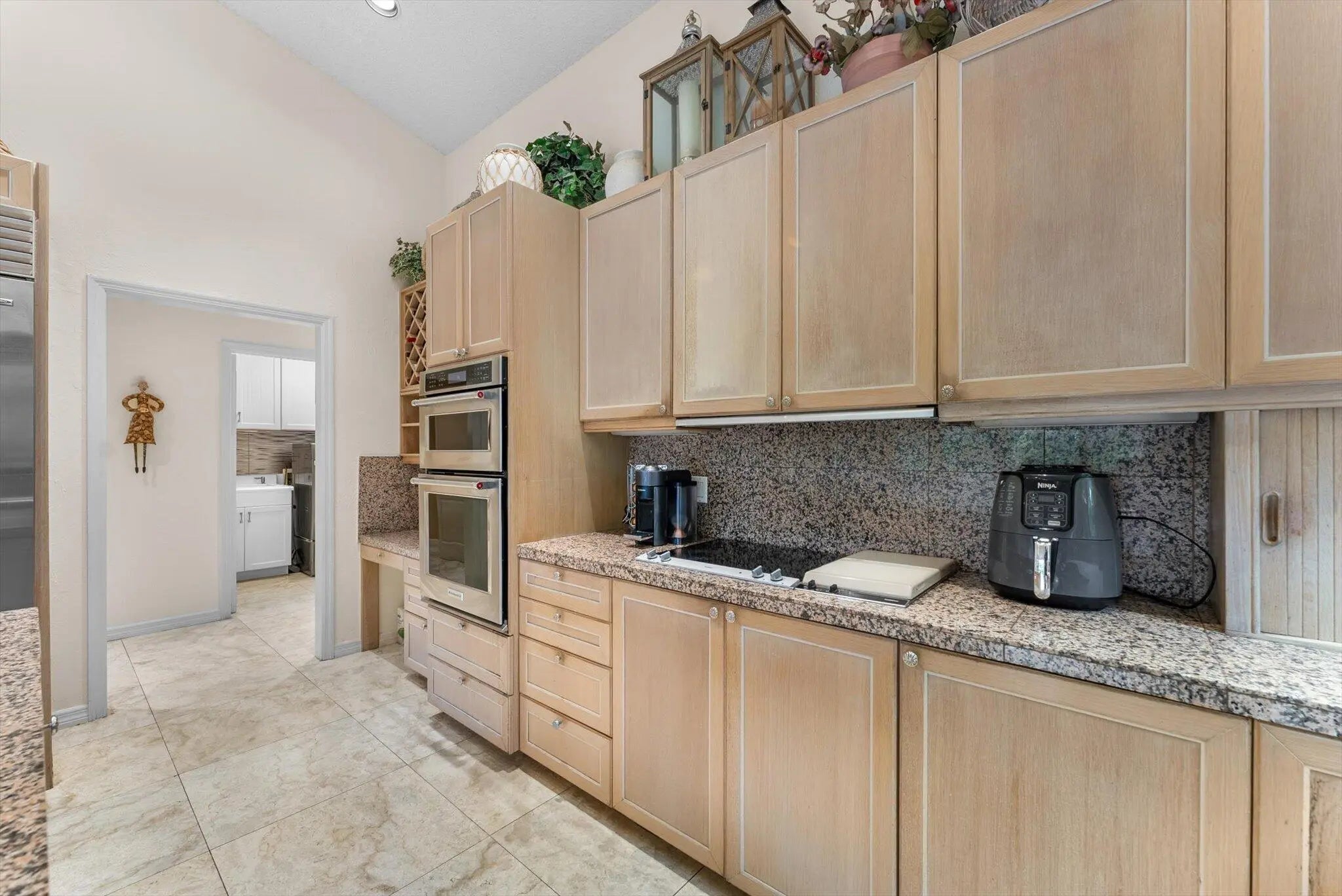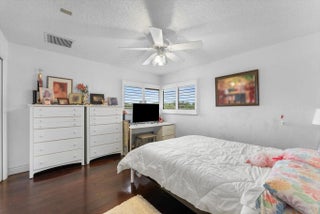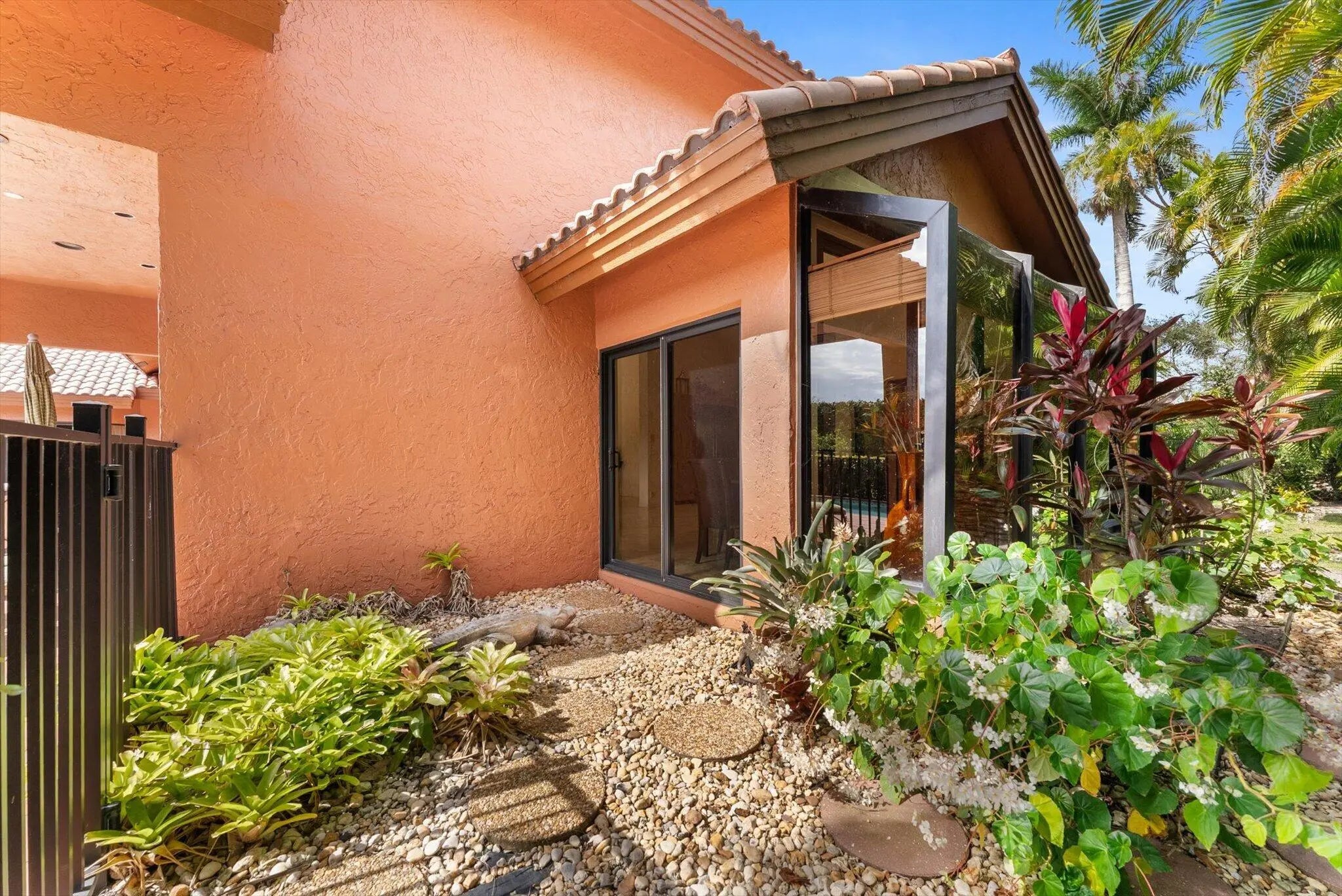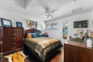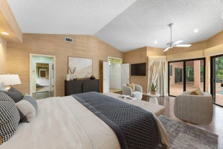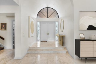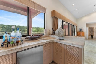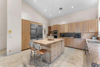 Spacious 5 BR plus office residence in Encantada featuring 4.1 full baths impact glass throughout, and abundant natural light. The well-designed floor plan offers a main-level primary suite with glass doors opening to the pool and patio, a formal dining room, and a chef's island kitchen that flows seamlessly into the family room with sliding glass doors overlooking the outdoor living space. Upstairs, two privately situated bedrooms, a full bath, and a generous loft provide ideal separation of space. Expansive living areas are perfect for entertaining and extend to a private outdoor retreat with an oversized pool, covered patio, and cabana bath. The lush grounds feature 6 avocado trees, 2 mango trees, multiple banana trees, citrus, papaya, and starfruit - all mature and fruit-bearing-
