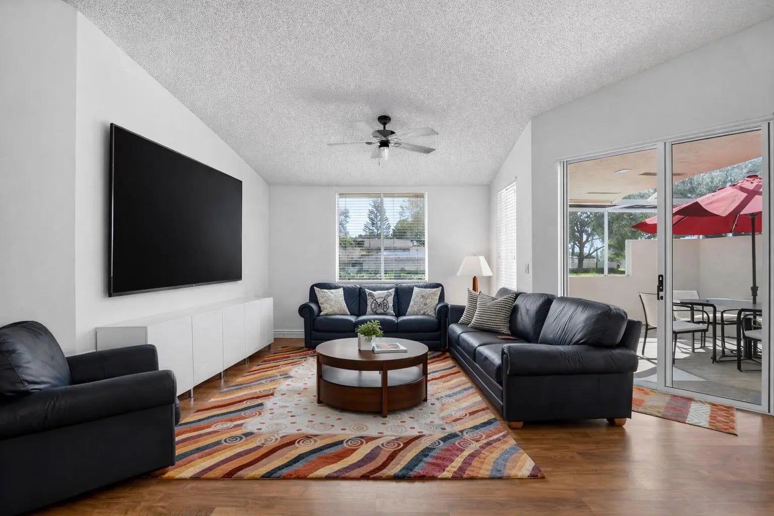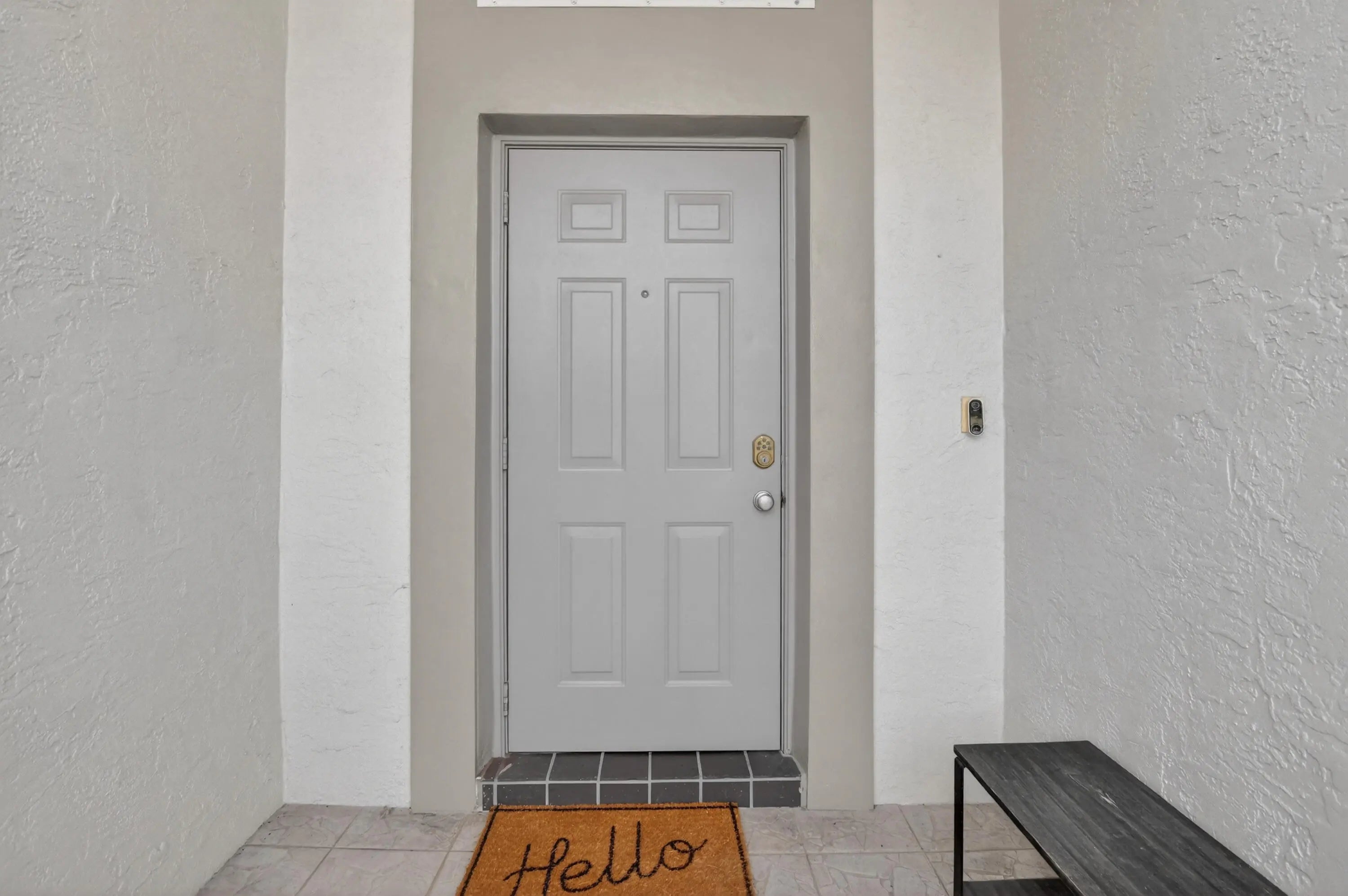 Welcome to this beautifully redesigned and thoughtfully updated 3-bedroom, 2-bath residence located in the highly desirable Boca Gardens community.The home features a screened-in, tiled front entry enclosure that functions as a mudroom-style space, offering protection from the elements and a secure area for package deliveries and everyday storage.Inside, you are welcomed by a wide, open-concept living area with excellent flow and abundant natural light. The layout includes a dedicated dining area as well as a separate eat-in kitchen, providing flexibility for both formal gatherings and everyday meals. The home has been reconfigured to maximize openness, creating a seamless connection to a timeless, well-planned kitchen with generous cabinetry and storage, des