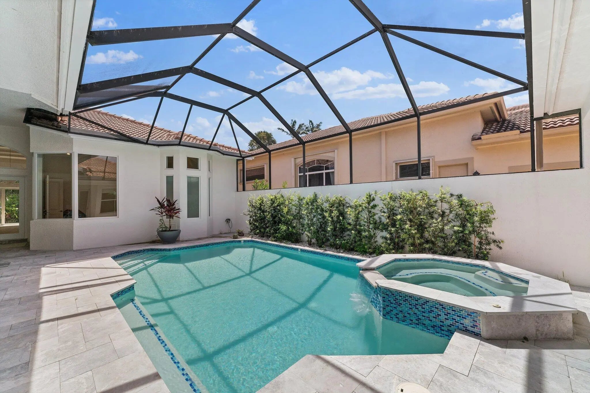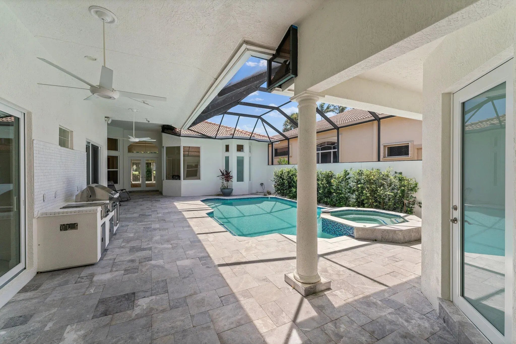 Beautiful courtyard home with guest house. Recently renovated with impact glass throughout, gourmet kitchen, salt water pool with summer kitchen. New Roof & Landscaping 2024. Located in the heart of Palm Beach Gardens, close to PGA corridor, and PBIA.