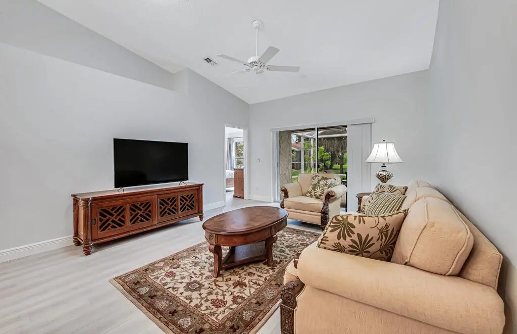 PRISTINE FRESHLY PAINTED UNIT WITH NEW LUXURY VINYL FLOORS, NEW APPLIANCES(5 YRS OLD) NEW BASEBOARDS, NEW A/C (3 YEARS OLD), WASHER DRYER (ONE YEAR OLD), EXTENDED LANAI WITH NEW PATIO SCREENING, 2 SUNDOMES, HIS AND HERS SINKS IN PRIMARY BATH AND SO MUCH MORE. HONESTLY MOVE RIGHT IN CONDITIONS. Venetian Isles is the latest rage! Resort living at its finest! Brand New & exquisite clubhouse is not only stunningly gorgeous but truly has it all! First you have an elegant lobby with an elevator that brings you to an upper level lounge and rooftop bar that leads out to a fabulous rooftop patio. The entire indoor and outdoor upper level overlooks the pools, lake cabanas and veranda. Then on the main level you'll find the restaurant, card rooms, library, billiards, arts and crafts center and more!