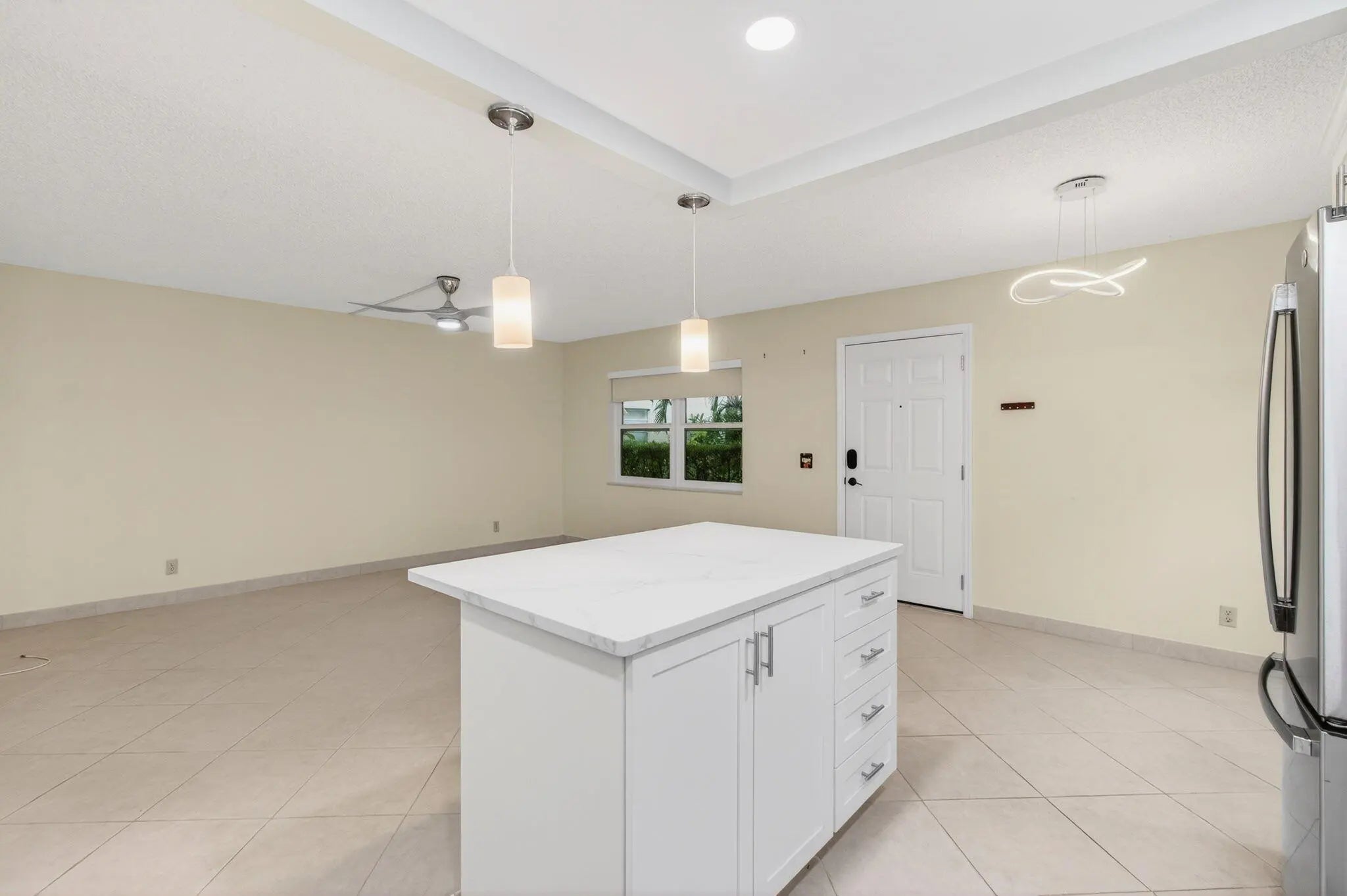 55 plus adult community.Move right into this SPECTACULAR REMODELED 2-bedroom, 2-bath ground-floor condo featuring quality upgrades throughout. Renovated approx. 3 years ago, this light-filled home offers full hurricane-IMPACT windows and doors for comfort, security, and efficiency. The modern kitchen boasts a true island, quartz countertops, and stylish finishes, opening to spacious living and dining areas ideal for entertaining. Updated baths, ceiling fans in every room, A/C (2019) and water heater (2022) add peace of mind. Enjoy a private primary suite and serene screened patio with exterior door and tranquil views. Blackout shades in the second bedroom add functionality. Located in Kings Point 55+ with world-class amenities. Landlord will furnish unit at $2000 per month.