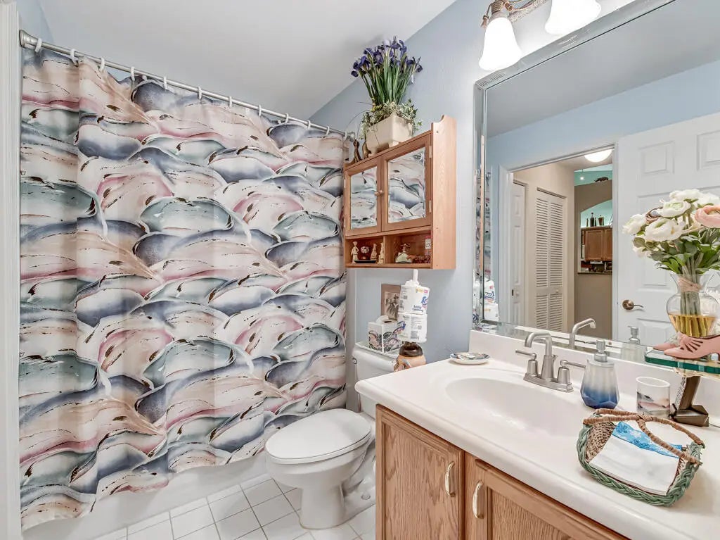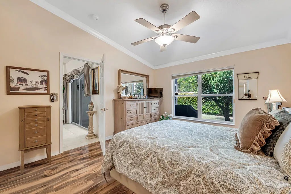 NEW ROOF! Beautiful glass front door. Absolutely meticulous home with extended patio crown molding, custom vanity in primary bath, a/ 2019 and hot water heater 2022. fabulous custom closet in primary bedroom. Venetian Isles is the latest rage! Resort living at its finest! Brand New & exquisite clubhouse is not only stunningly gorgeous but truly has it all! First you have an elegant lobby with an elevator that brings you to an upper level lounge and rooftop bar that leads out to a fabulous rooftop patio. The entire indoor and outdoor upper level overlooks the pools, lake cabanas and veranda. Then on the main level you'll find the restaurant, card rooms, library, billiards, arts and crafts center and more!