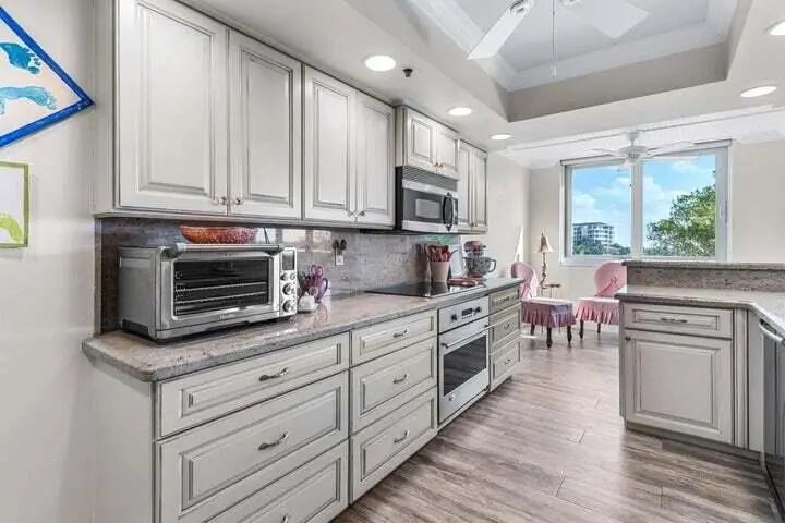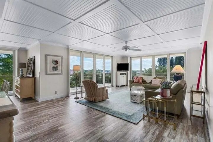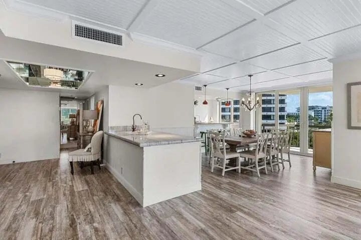 3 bedroom, 3 bathroom 2,430 square foot apartment with a 4th ''bedroom'' currently set up as a playroom. The living area has beautiful floors that take you to enormous balconies that wrap around the home. The gourmet kitchen features stainless steel appliances, granite countertops and custom cabinets. The master bedroom suite has its own balcony and the bathroom has double sinks, large tub and separate shower. The Carlton has been recently renovated and the assessments have been paid. The building features a 24 hour doorman, beautiful lobby, club room, fitness center and a pool right on Lake Boca. It is nested between the Waterstone Hotel and the Boca Resort and Club