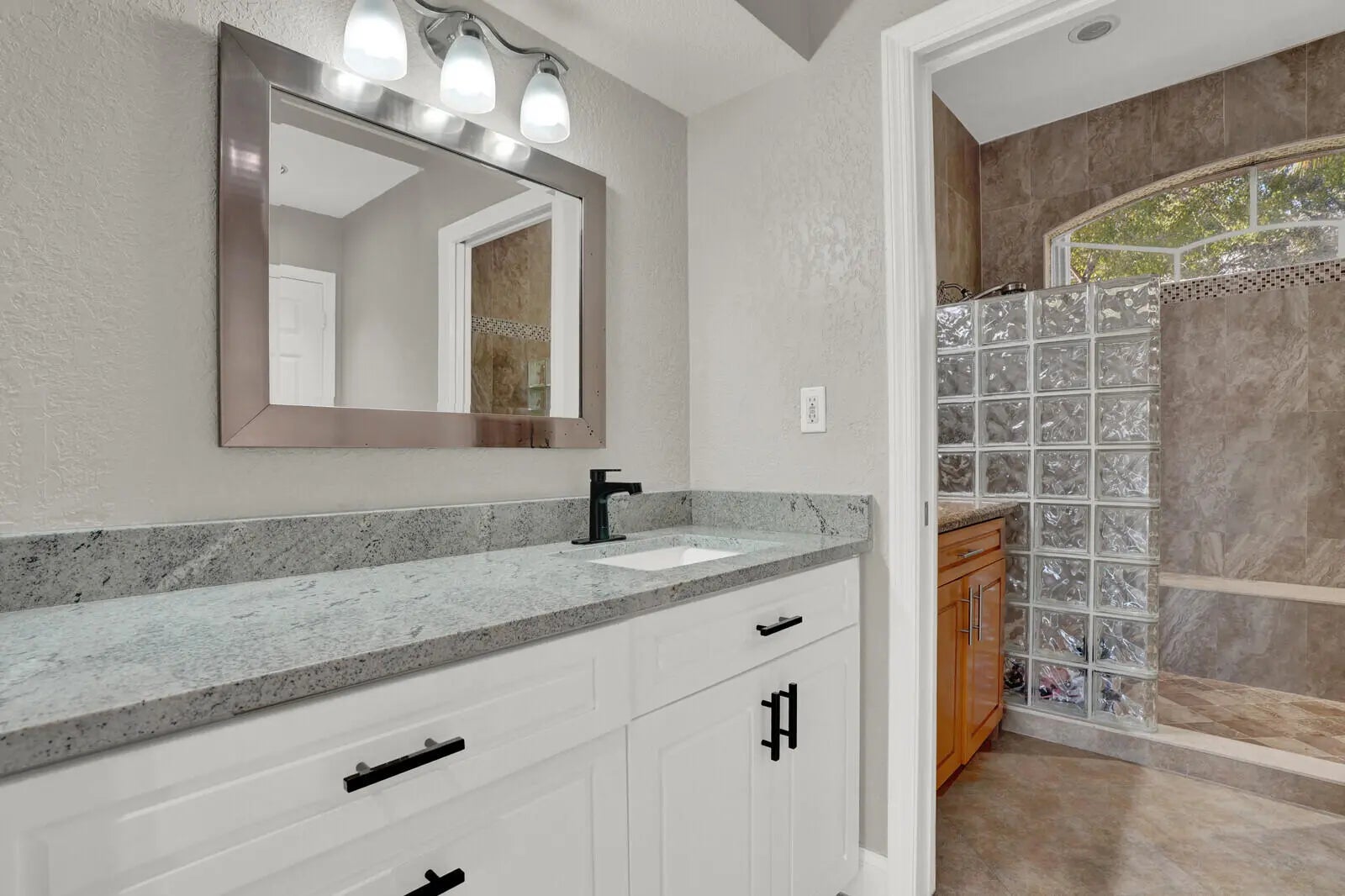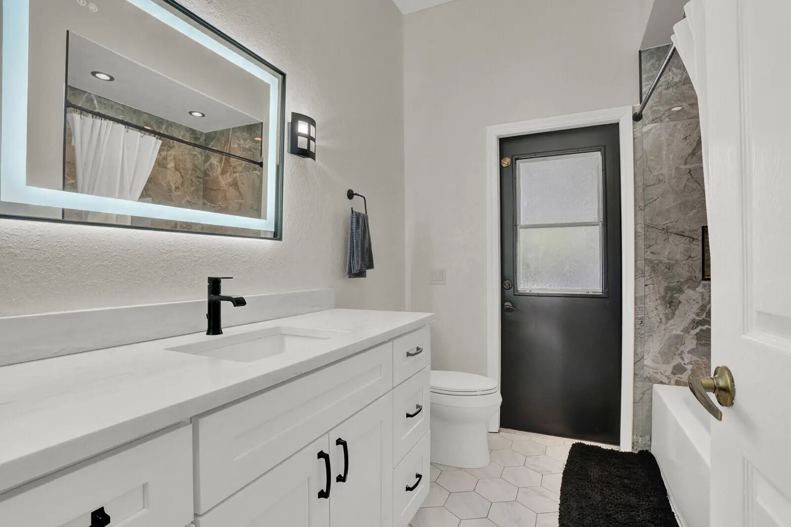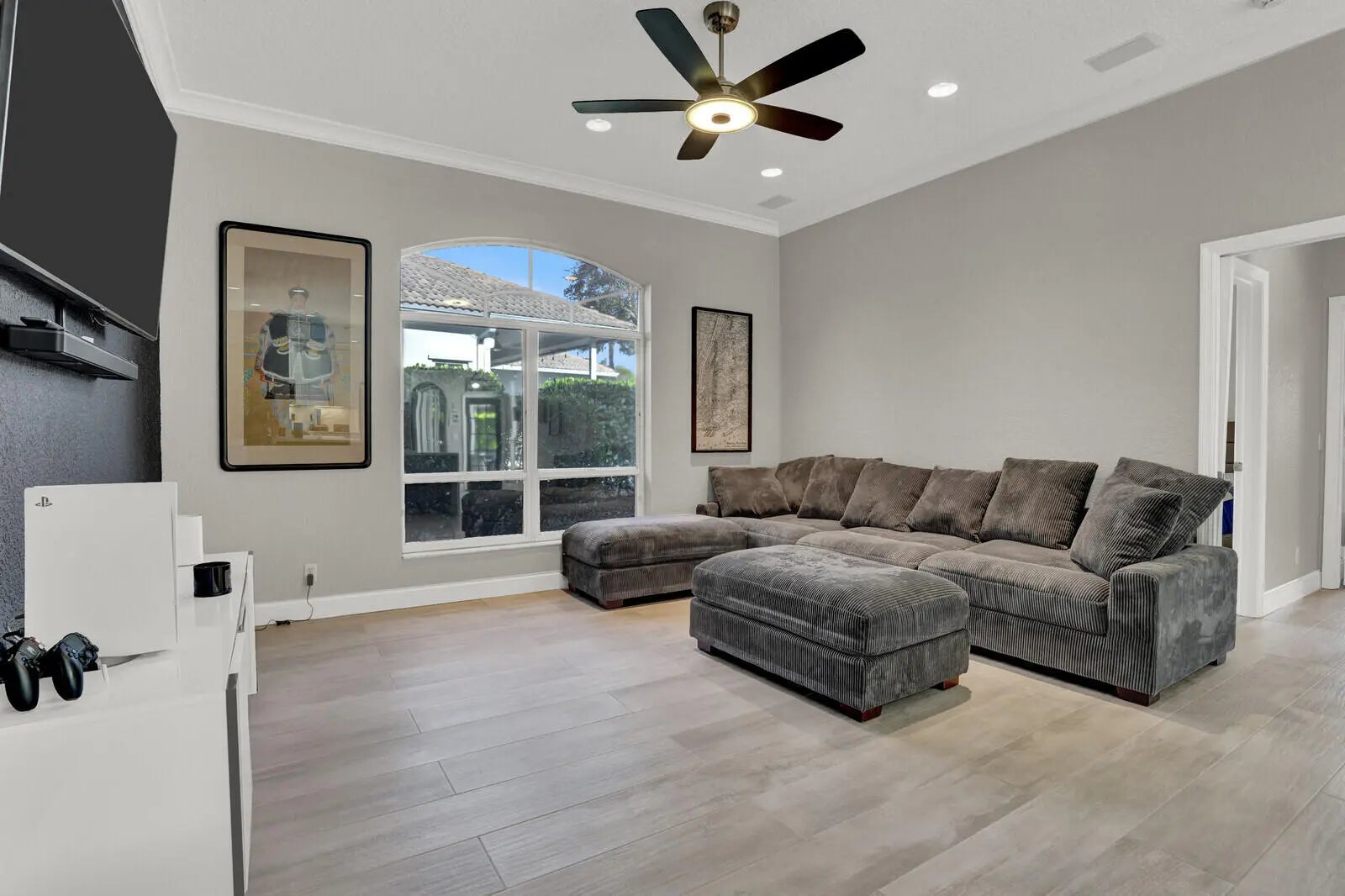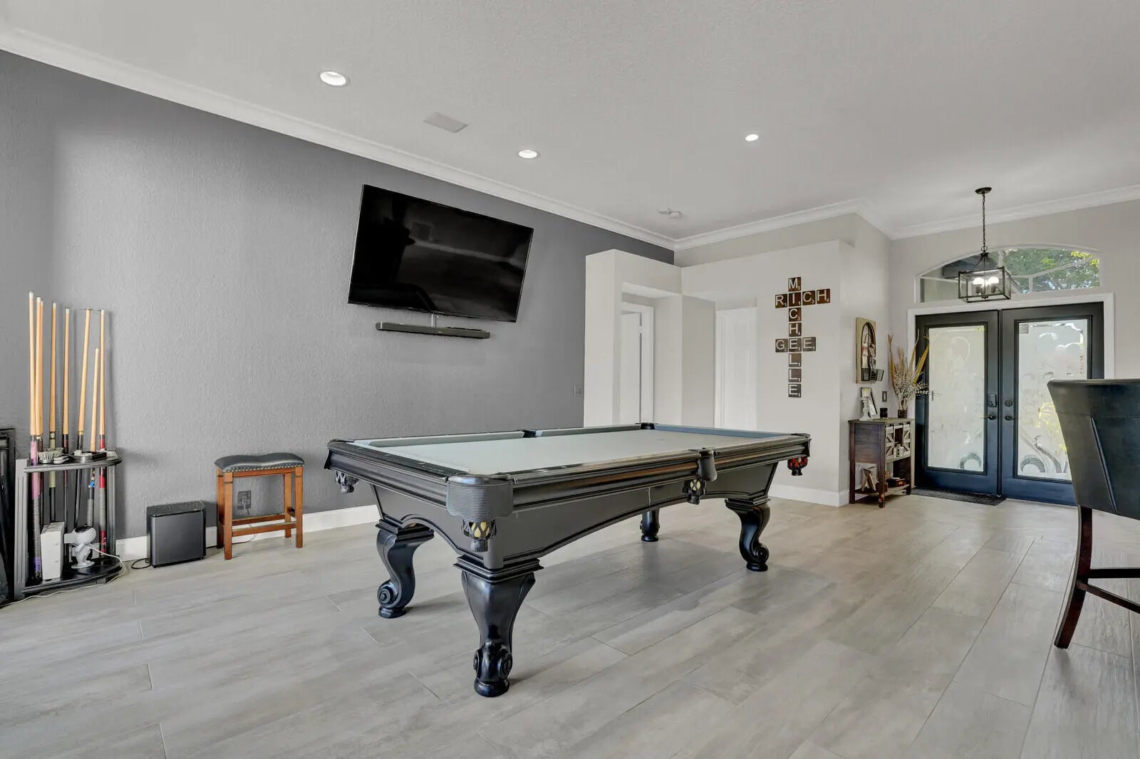 Absolutely stunning turnkey pool home with BRAND NEW upgrades throughout! Brand new roof, brand new floors, brand new pool finish and kitchen showcasing new Calcutta quartz countertops with DOUBLE waterfall edges, sleek white cabinetry, stainless steel appliances, designer backsplash, and a spacious island PERFECT for entertaining.Bright, open floor plan featuring elegant tile flooring, soaring ceilings, and a pool with a built in hot tub making this the kind of backyard you never want to leave.
