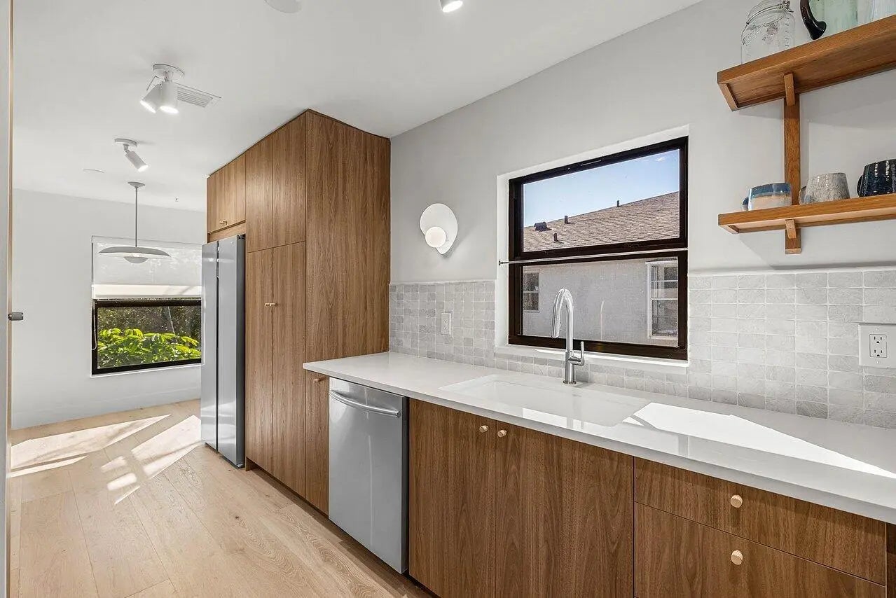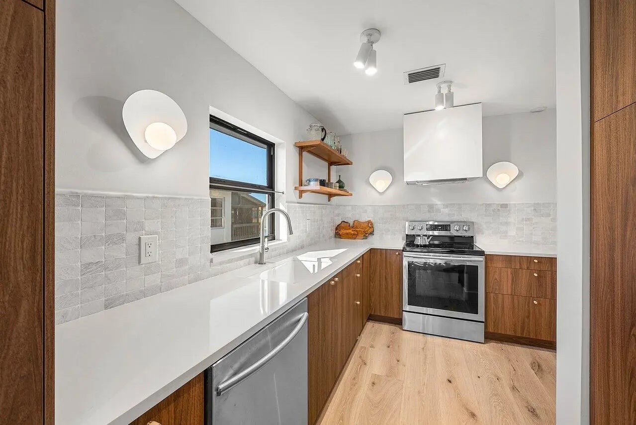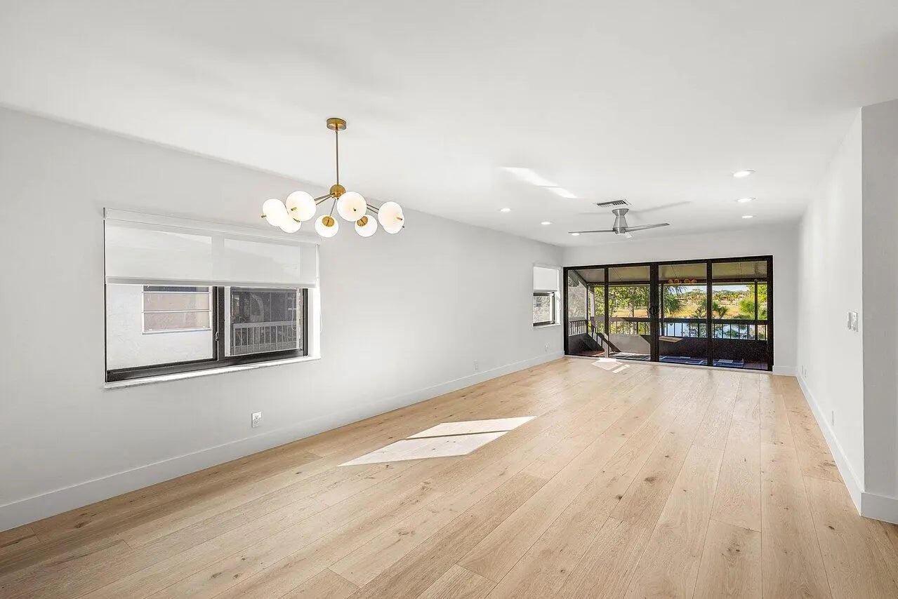 The one you've been waiting for! Absolutely gorgeous, fully remodeled La Vista model--permitted and inspected--offering stunning waterfront living. This spacious 2-bedroom, 2-bath condo boasts over 1,300 sq ft and features impact windows and doors, an updated electrical panel and outlets, and a brand-new kitchen with quartz countertops.Enjoy gorgeous hardwood flooring throughout, new carpet in the primary bedroom, and two beautifully remodeled bathrooms, including a spa-like primary bath retreat. Relax and take in serene water views from the living area or step outside onto the large balcony with new teak flooring, perfect for enjoying the scenery.