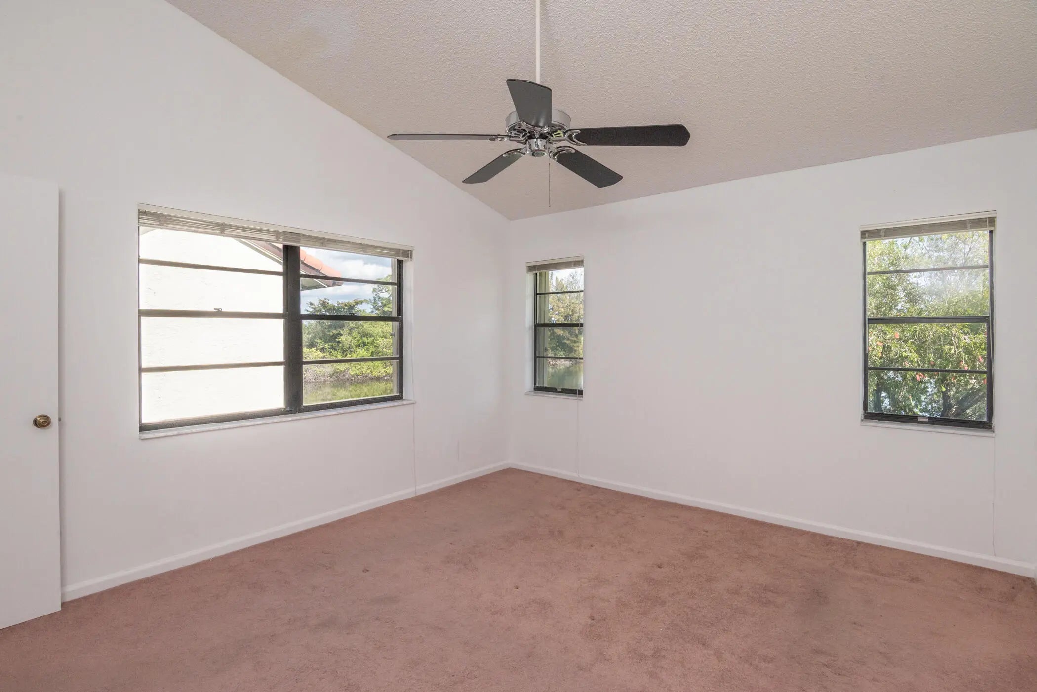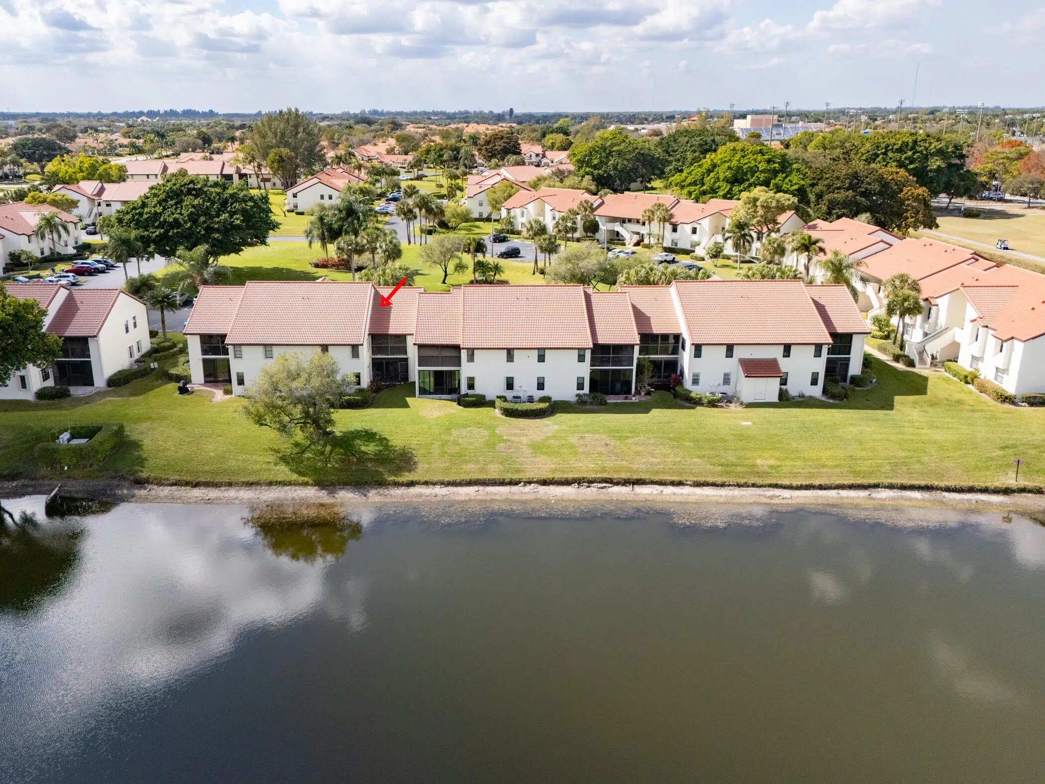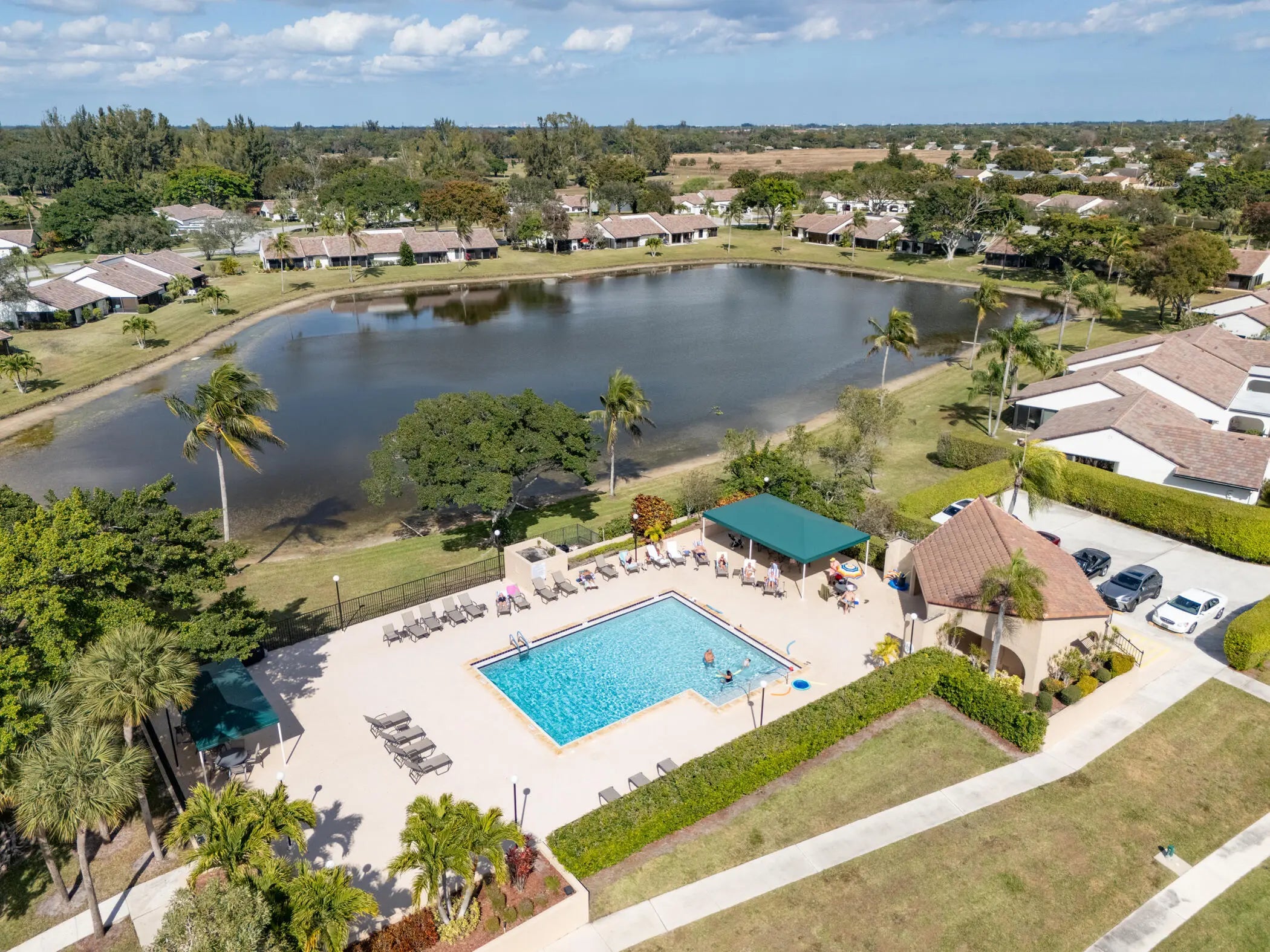Enjoy the Beautiful Lake view on 2nd floor of this 3 bedroom 2 bath unit in the desirable community of Aberdeen East/The Coves. No membership required for this section. Make it your own or paint & move right in but have the BEST Lake Views. Newer Roof, AC, Storm Shutters & Washer & Dryer in unit. Enjoy this resort style living with an active clubhouse, live entertainment, resort pool area, 3 satellite pools, gym, card rooms, tennis courts, pickle ball courts, shuffleboard, serene walking trails and other club activities. The 3rd bedroom currently Den/Office. HOA includes comcast, water, sewer, pest control, roof maintenance, and all exterior maintenance. Great location near shopping, restaurants and I-95/Florida turnpike. Largest square footage in community. Priced to sell don't miss out.