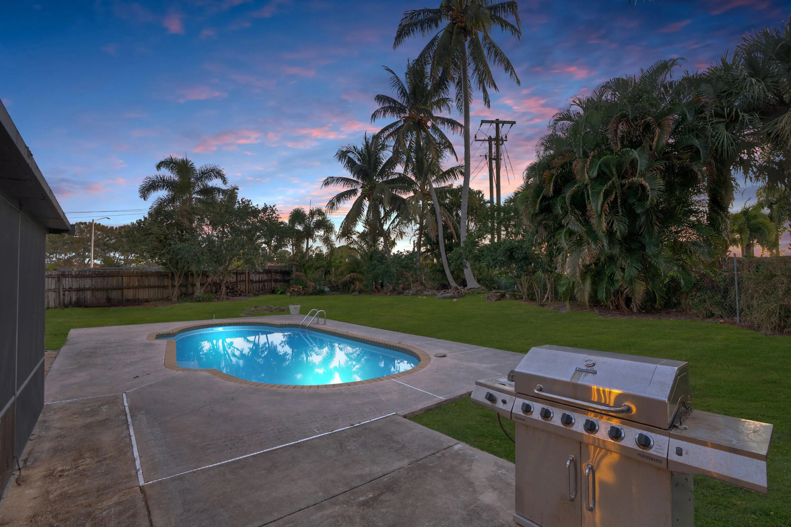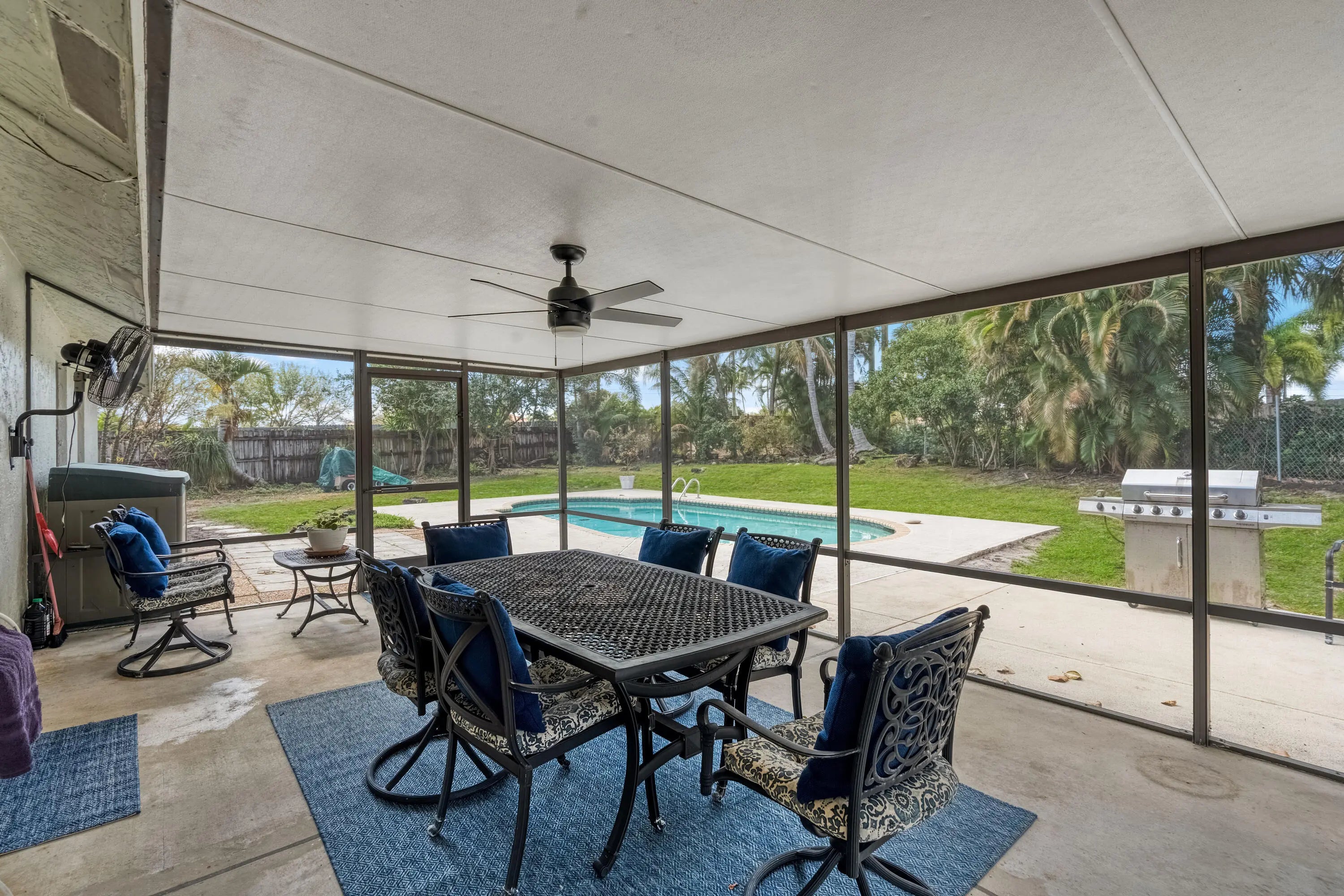 This CBS 4-bedroom, 2-bath, 2-car garage home sits on an expansive ⅓-acre lot. Vaulted ceilings give depth to the space while the split floor plan brings functionality. An Island grounds the kitchen as a place to gather. Off the main living a den makes the perfect space for a home office, playroom, or could be converted to an additional bedroom. The primary suite has been newly updated and includes a walk in closet. Step outside to your private backyard retreat featuring a screened-in lanai, pool, and a custom fire pit area. Established and mature landscaping surrounds the property. A pool pump and filtration system was installed in August 2024 and irrigation system (2025). Enjoy 2 large community parks, pickle ball and tennis courts, a playground and walking paths. Incredibly low h