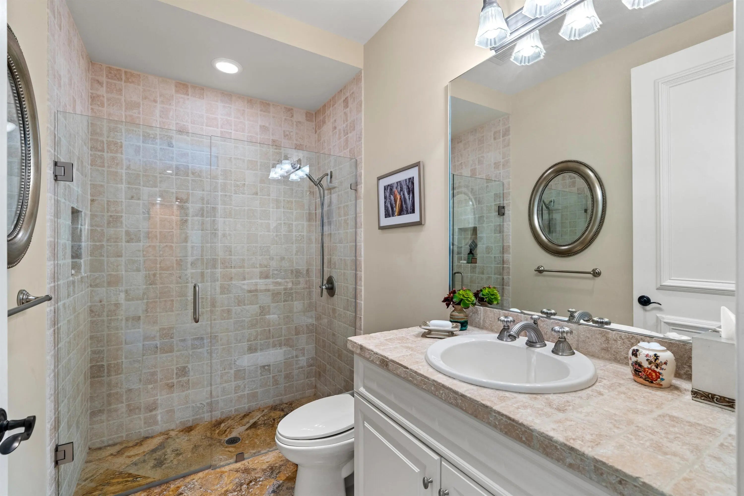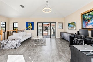 This chic four-level townhome is located in the heart of Downtown Delray Beach, one block from Atlantic Avenue and near the ocean. The first-floor ensuite bedroom/office opens to a screened patio. The second-floor dining room, third-floor primary bedroom and fourth floor ''Sky Room'' access a city-view balconies. Details include 13-foot ceilings, marble and wood flooring and private elevator.