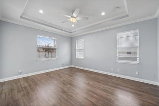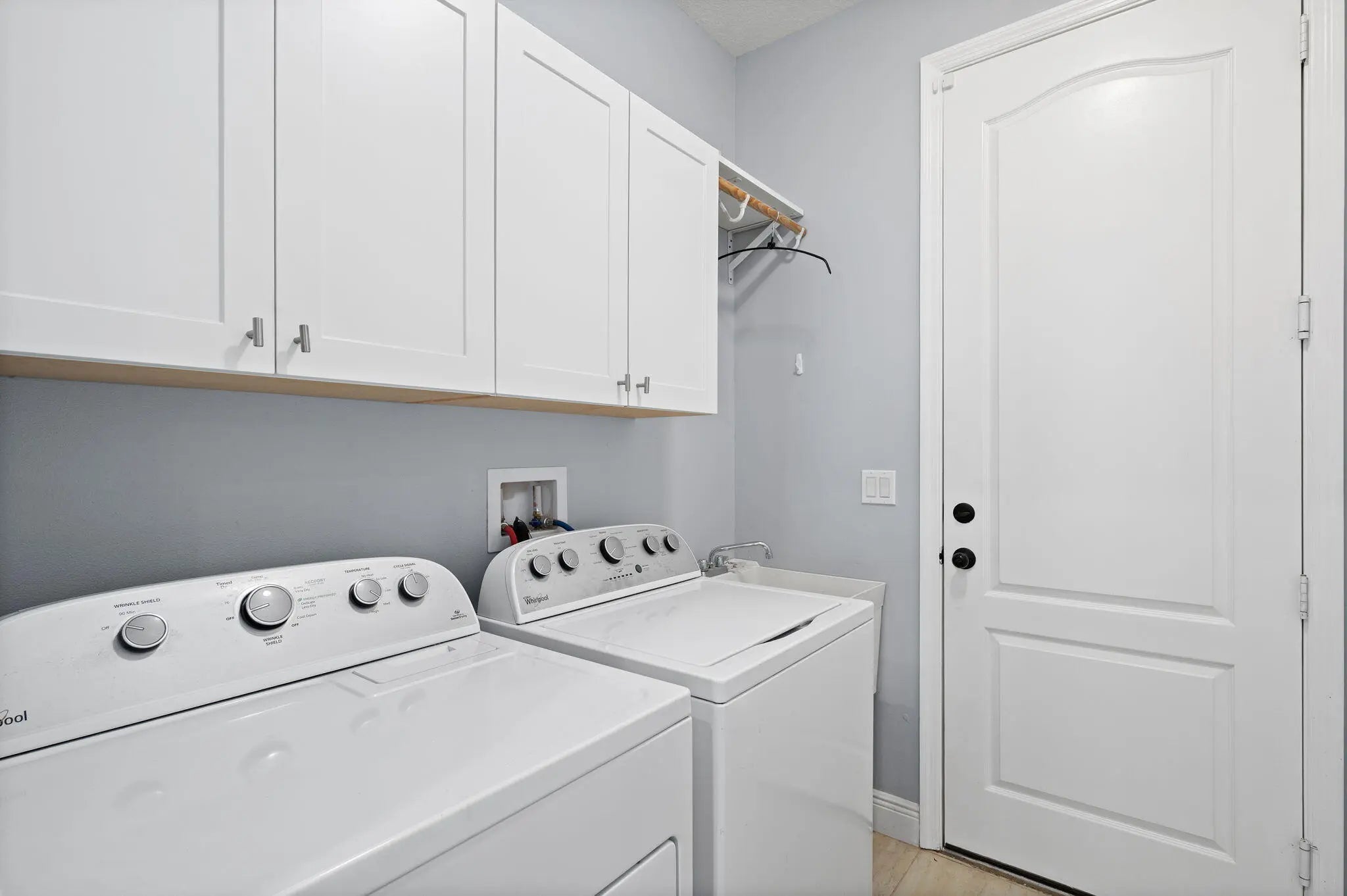 2018 built home with 4 bedrooms and 2 baths with 2 car garage. Private rear yard completely fenced with large patio to enjoy. Large open floor plan home with spacious kitchen including 42'' cabinets with pull out drawers, stainless appliances and eat in kitchen area. Formal dining area and family room. Primary bedroom has 2 closets, dual sinks, jetted spa tub, shower, custom fixtures and sliding doors to patio. 3 additional bedrooms and bath. Inside laundry room with extra cabinets and closet for storage. Additional upgrades include: Gutters, insulated garage door, custom garage floor, monitor for mold in AC, custom blinds on family room sliding door and permitted shed. Within short distance to Woodlands Trails Park with walking path and playground.