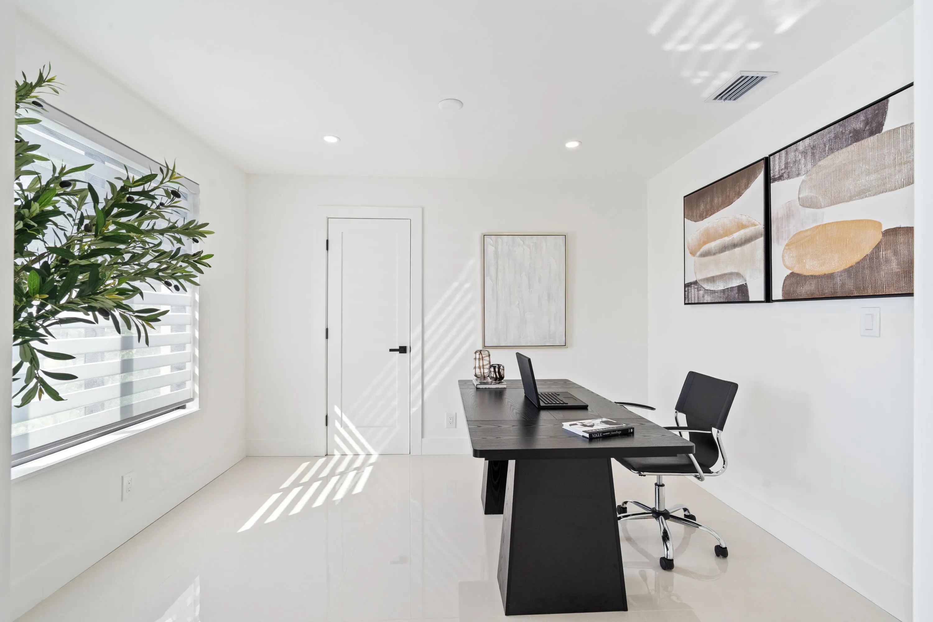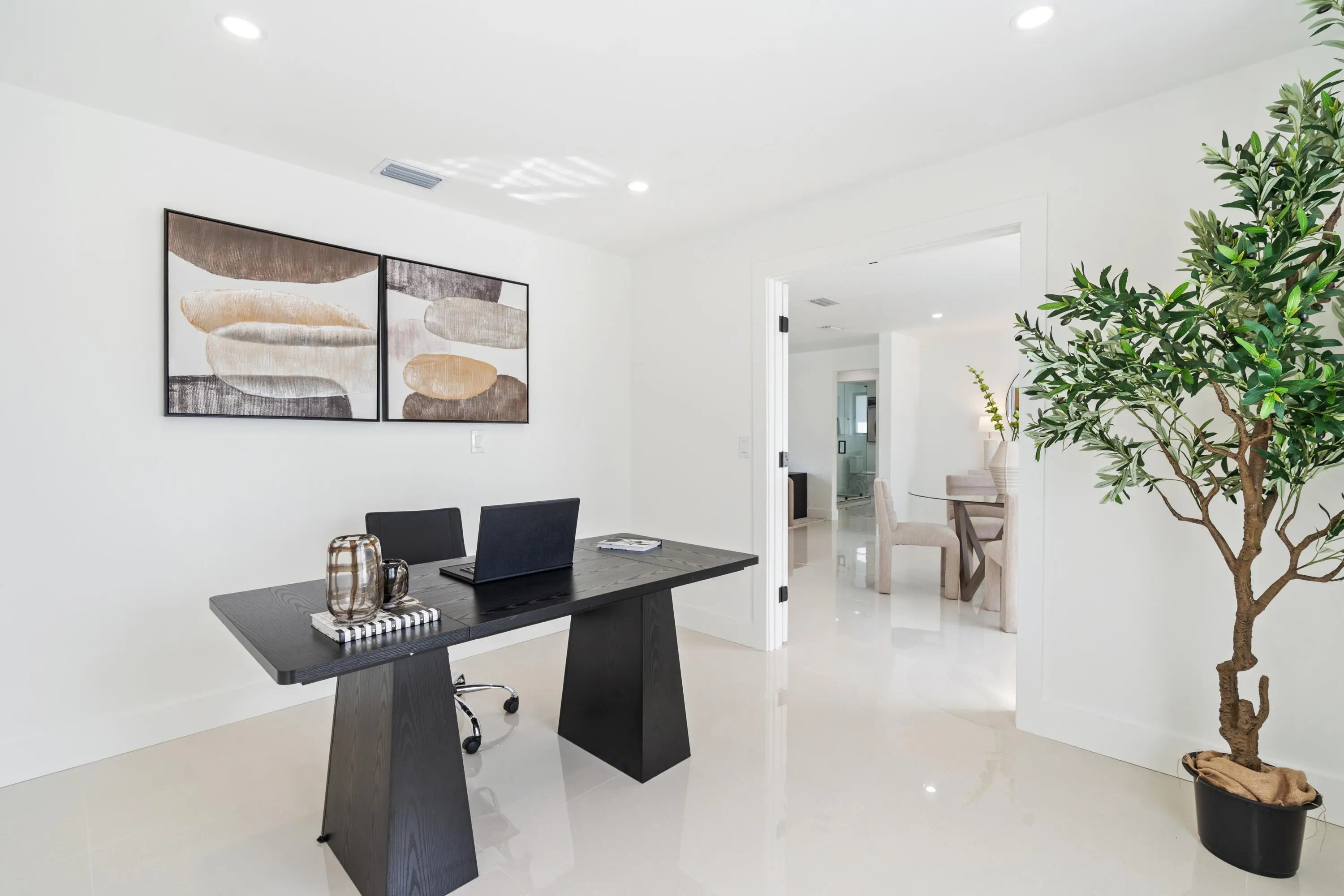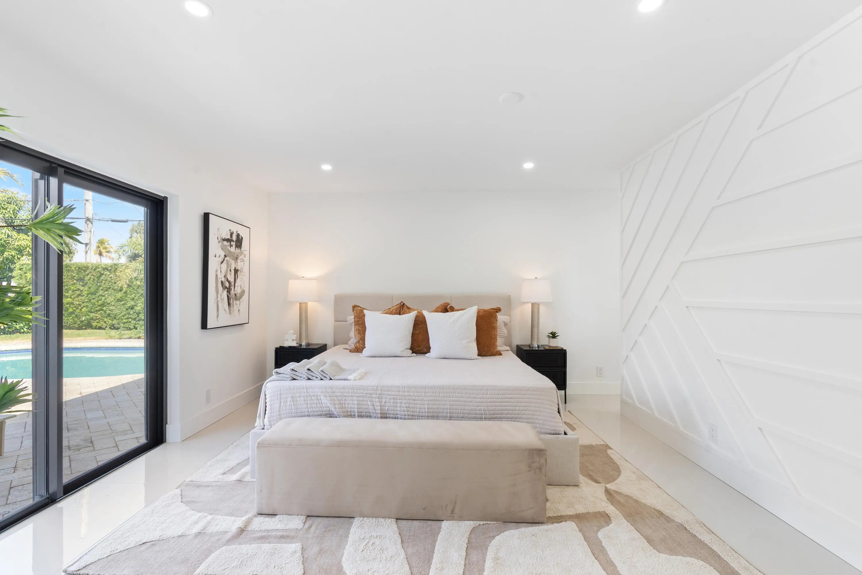 New renovation completed 2026, this stunning Mid-Century Modern 3-bedroom, 2-bath home blends timeless design with today's most desirable upgrades. A brand-new semi-circular driveway and lush landscaping create standout curb appeal. Inside, Level 5 smooth drywall and expansive porcelain tile flooring deliver a sleek, modern aesthetic. The redesigned kitchen is a showpiece with quartz countertops, custom cabinetry, a gas range, and all-new finishes. Both bathrooms feature stylish contemporary updates. New electrical and plumbing, new a/c, hurricane impact windows and doors, and a 2019 tile roof provide lasting peace of mind. Step into your private backyard oasis with a fenced yard with a resurfaced (2026) Marcite in-ground pool, and built in grill. Ideally located in the SoSo neighborhood!
