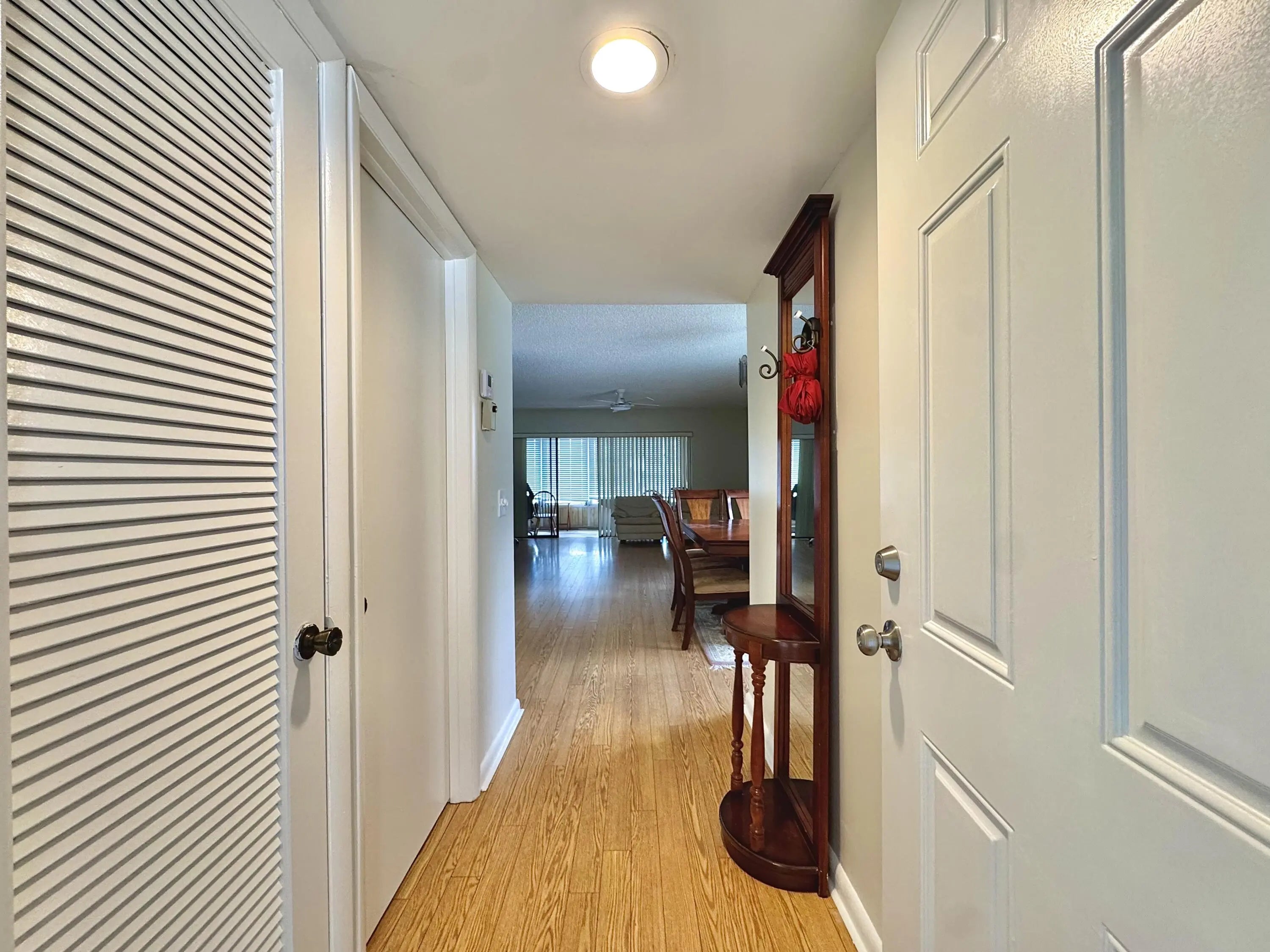 Rare and desirable layout in Kings Point's sought after Piedmont section. This well maintained 2 bed 2 bath condo offers rare privacy with bedrooms positioned on opposite sides of the unit and only one small back wall shared with a neighbor. This gives an ultimate feel of privacy and extra windows providing ample natural light on all sides and rooms. Features include wood flooring, granite countertops and real wood cabinetry. The unique floor plan lives larger than most 2 BR units and includes an oversized enclosed patio with serene golf course views. Conveniently located close proximity to a real elevator, not a lift. Enjoy Kings Point's Resort Style Amenities including clubhouses, restaurant, indoor/outdoor pools, golf, tennis, fitness center, theatre, workshops and more!