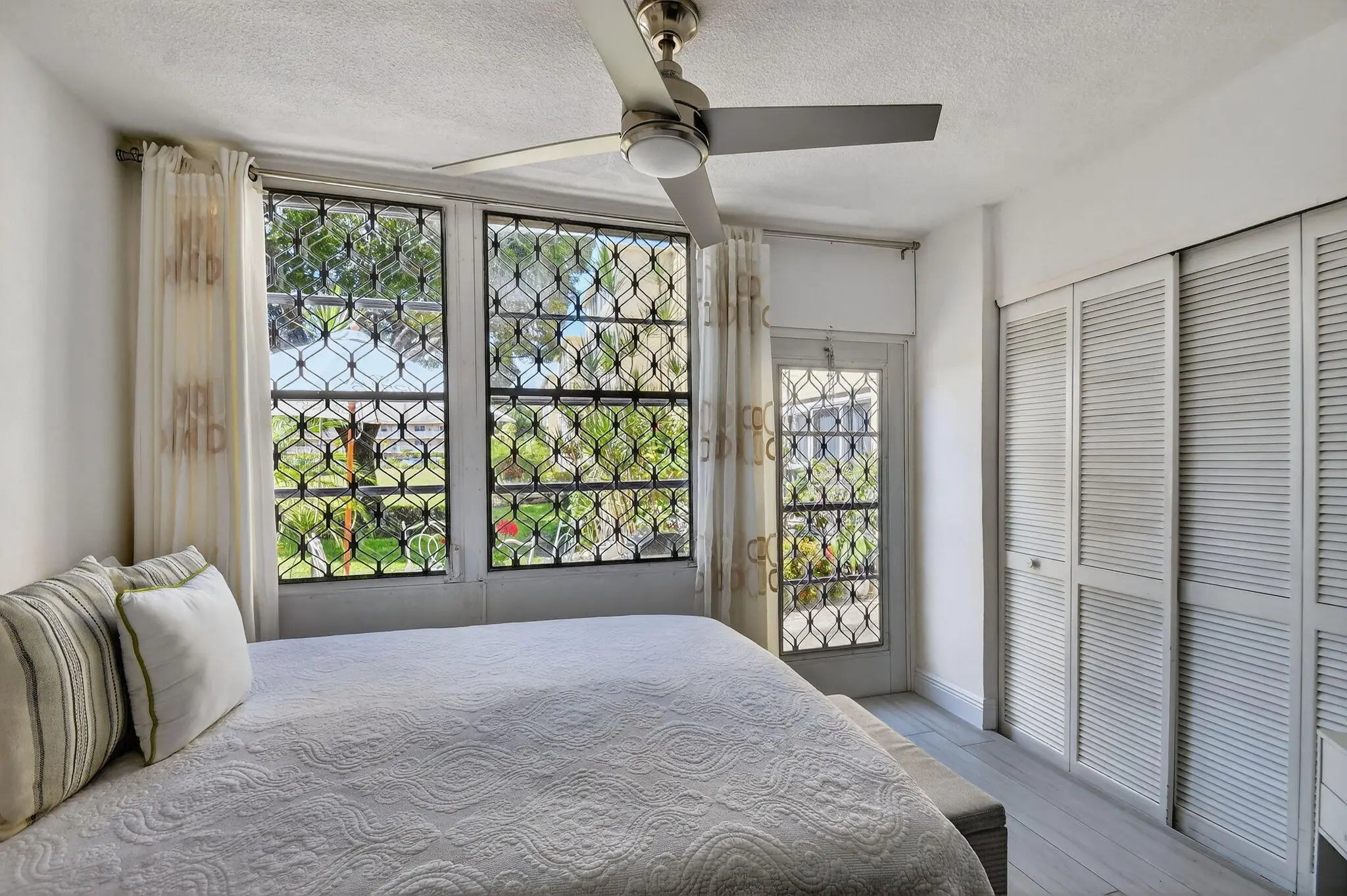 Ground floor, Parking right in front of your door, Updated with a beautiful patio w garden view and private. Completely updated! bedroom + DEN and 1.5 bathroom, with This home offers a bright and open floor plan with beautiful and serene garden views and a BBQ Area. Beautiful brand new kitchen featuring shaker cabinets, sleek quartz countertops with extra space for barstools area, new SS appliances and LED lights. New neutral porcelain wood-looking tile throughout the whole unit. Remodeled bathrooms, Fresh Paint. Concrete roof, New barn doors dividing Living room from the the lFlorida/Porch area. fantastic 55+ community with two clubhouses, two pools , Spa, Theater, Gym, Tennis/Pickeball courts, HOA includes Cable, Water, Building insurance, Pest control,