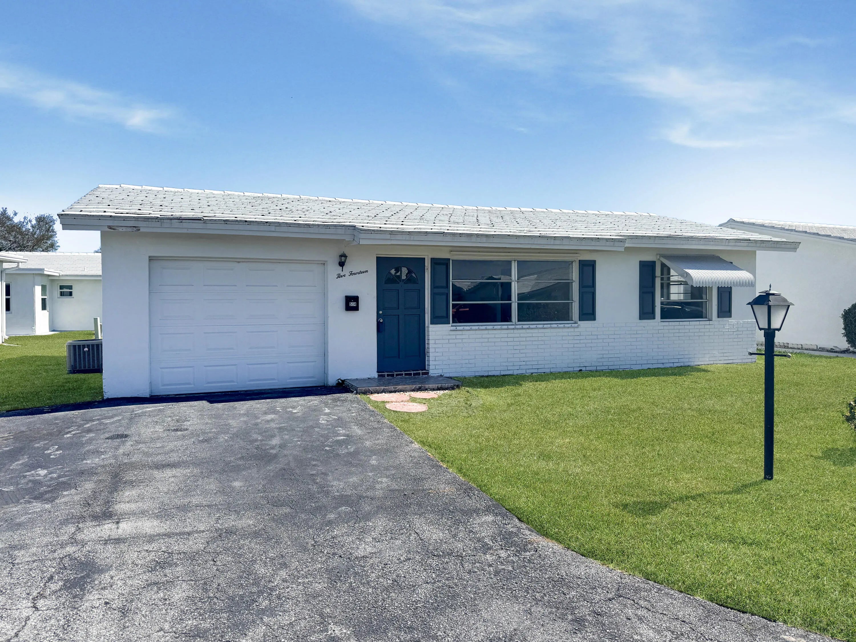 Welcome to 514 SW 20th Street in Palm Beach Leisureville, centrally located in Boynton Beach. This single-family home features an updated bathroom, fresh interior paint, and a brand new roof to be installed before closing, including flat-roof sections. Priced to allow the next owner to update the kitchen to their taste, it's a rare opportunity to own a home with a 1-car garage for the price of a condo or villa. Leisureville offers free golf on a private 18-hole course, three clubhouses with heated pools, a fitness center, workshop, BBQ areas, shuffleboard, bocce, cornhole, and year-round social activities. Low HOA includes lawn care, sprinkler maintenance, and periodic exterior painting. Rentals allowed immediately--ideal as a primary home, seasonal retreat, or investment.