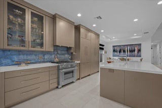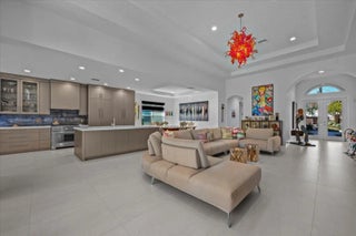 Modern, Elegant, Needs to Be Seen, Custom Designed Single Level 3Bed/2.5Bath Pool Home with RARE FULL GOLF MEMBERSHIP + 3 CAR GARAGE. Spacious Open Floor Plan has a Separate Den, Living & Dining Rooms. Modern Chefs Kitchen Includes; Custom Cabinets, Distinctive Quartz Counters, & Backsplash, High-End Appliances + Hooded Stove-Top. Panoramic Windows & Doors Provide Stunning Pool & Fenced-In Backyard Views. Interior & Exterior Features Include; Coffered Ceilings, Porcelain Tile Floors, Designer Window Treatments, Retractable Patio Screen Enclosure, Sun Shelf Fresh Water Pool + an Extended Travertine Tile Patio. Resort Country Club Amenities, Signature Golf Course, Tennis/Pickle Ball Courts, 2 Fitness Centers, Bocce Ball + Private Dining Facilities. Minutes to the Beach, Downtown & Airport.