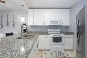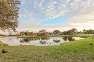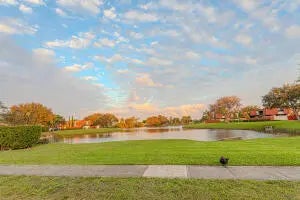 Welcome home!This beautifully updated 2BR/2.5BA townhouse offers serene lake views from both bedrooms and a bright, upgraded kitchen designed for everyday living and entertaining. Renovated bathrooms, impact windows, and a private fenced patio add comfort and security.With two assigned parking spaces, a community pool, and a very low HOA, this centrally located gem truly has it all. Don't miss the opportunity to own a home that combines convenience, style, and value.