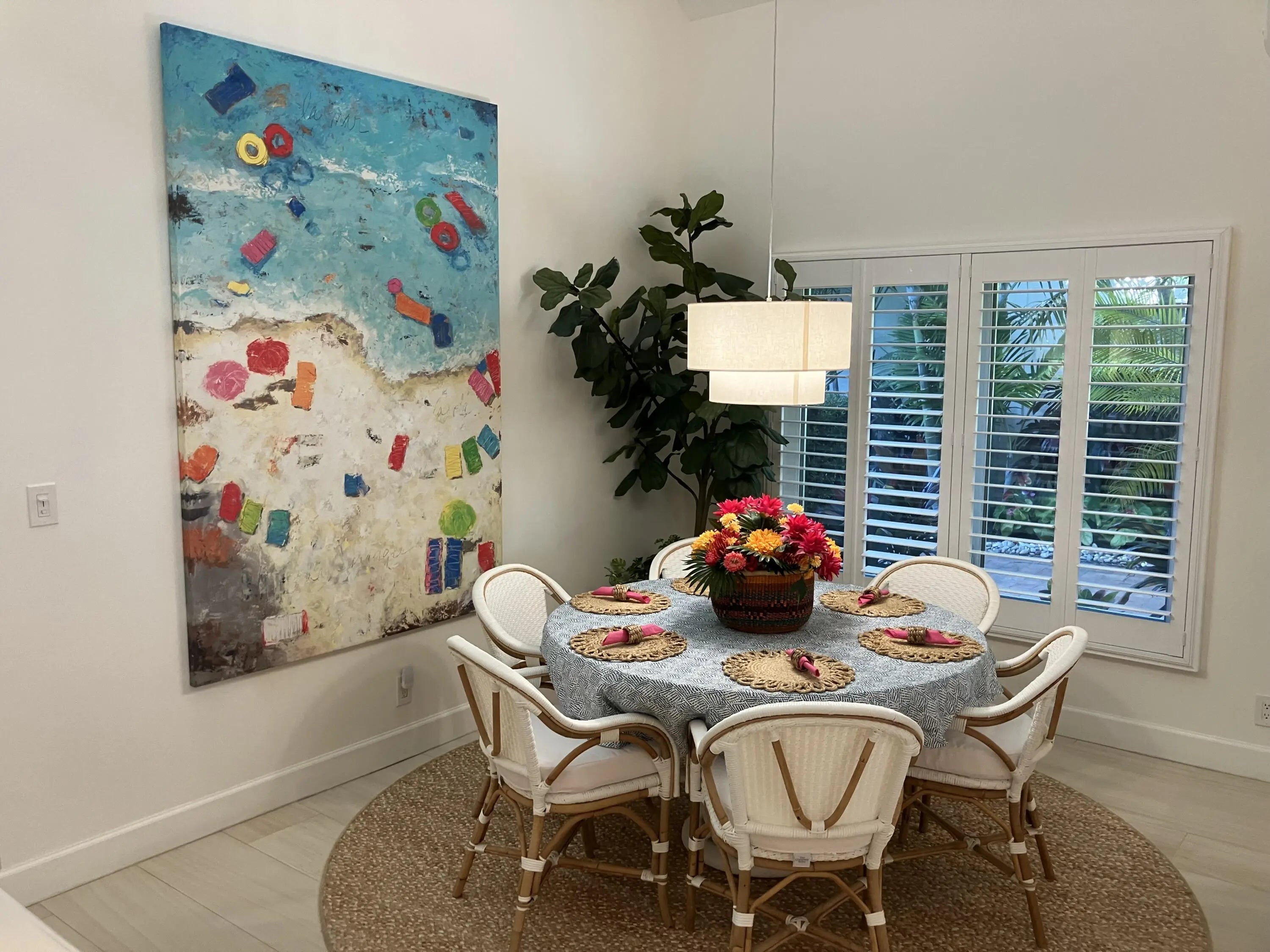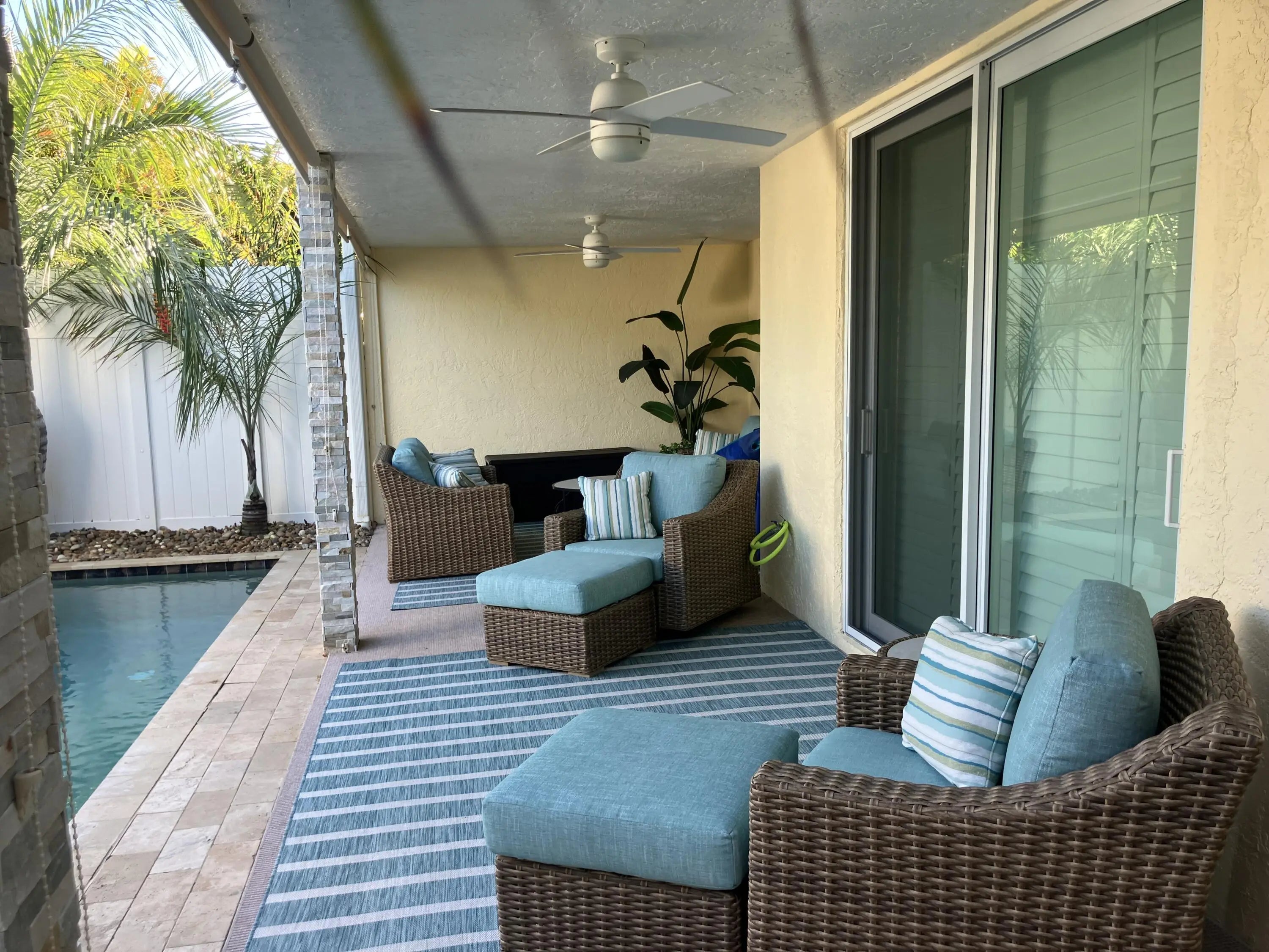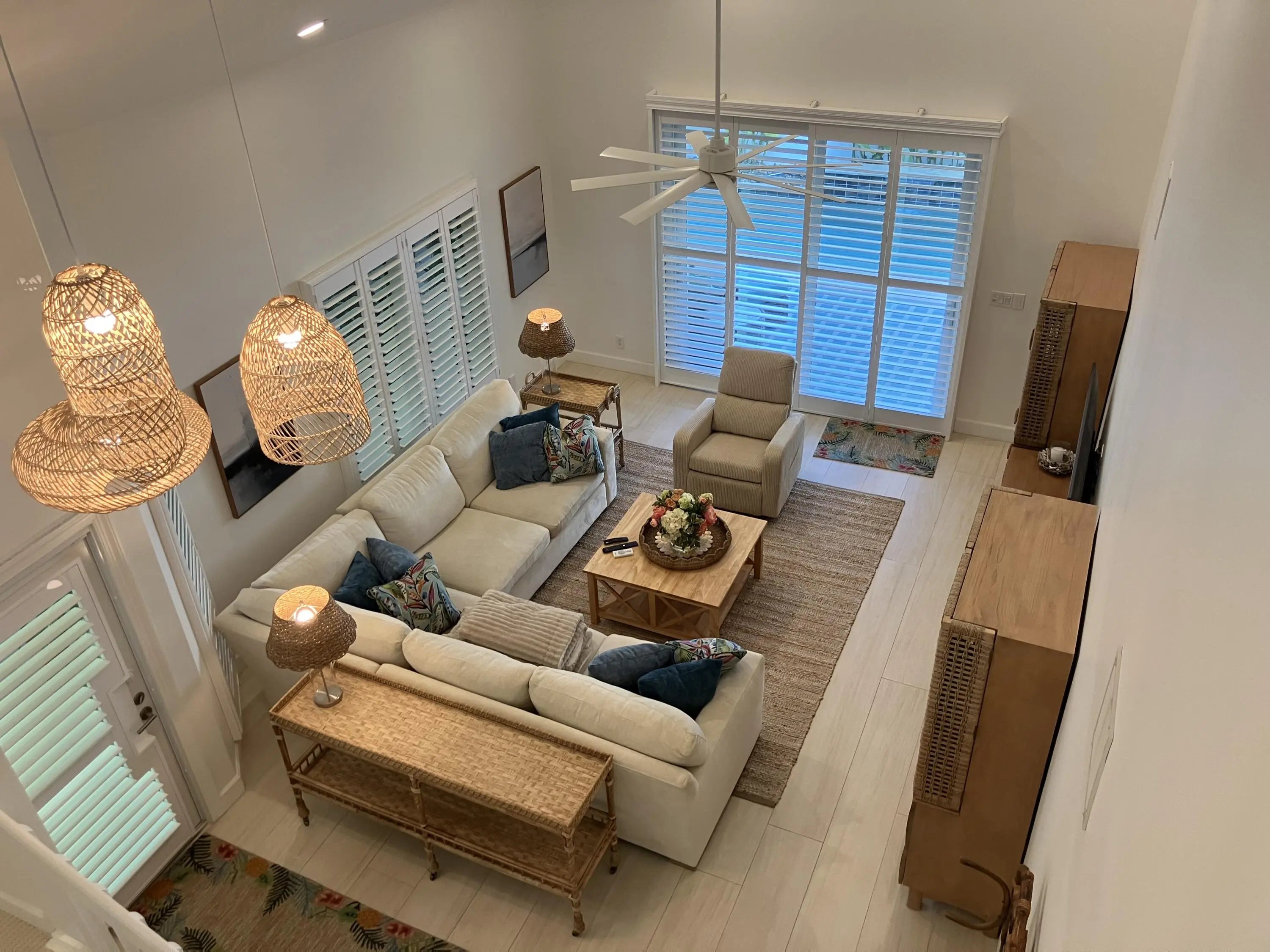 Turnkey 3-bedroom, 2.5-bath single-family home located in a gated waterfront community just moments from downtown and pristine beaches. This residence offers spacious living and dining areas, a main-level en-suite primary bedroom, and an updated kitchen with breakfast area. Guest bedrooms are thoughtfully positioned upstairs. Tastefully furnished and meticulously maintained, the home features impact windows and plantation shutters throughout. Enjoy a heated pool and covered patio, set against a completely private, lush tropical garden backdrop.