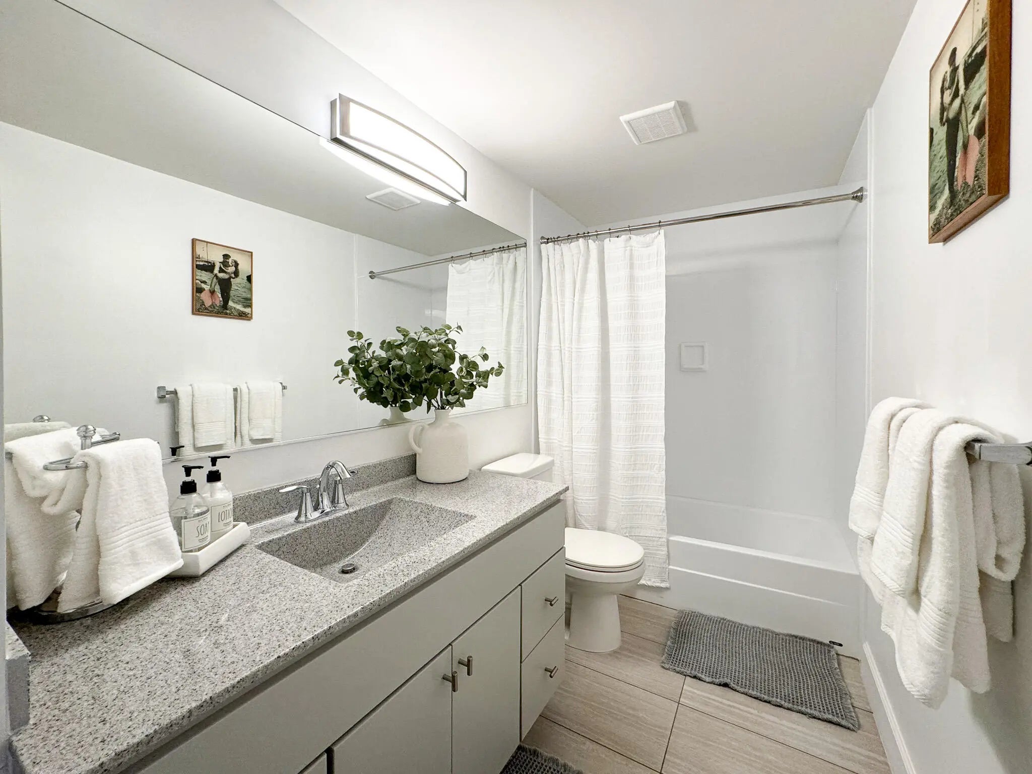Welcome to your perfect retreat in this beautifully remodeled 2-bedroom, 2.5-bathroom townhome! Tastefully furnished with brand-new furniture, the home offers a king-size bed in the primary suite and a second bedroom with both a queen bed and twin bunk beds, pullout couch in living room, ideal for guests. Each room is equipped with a TV for your comfort and entertainment. Enjoy the privacy of your own fenced courtyard--perfect for grilling, dining, or simply relaxing outdoors. Outdoor furniture and grill. Located just 5 minutes from the beach, this community has it all--Olympic-size pool, tennis and pickleball courts, basketball, and scenic walking/biking paths. Enjoy the convenience of nearby shopping, dining, and entertainment. This is Jupiter living at its best!