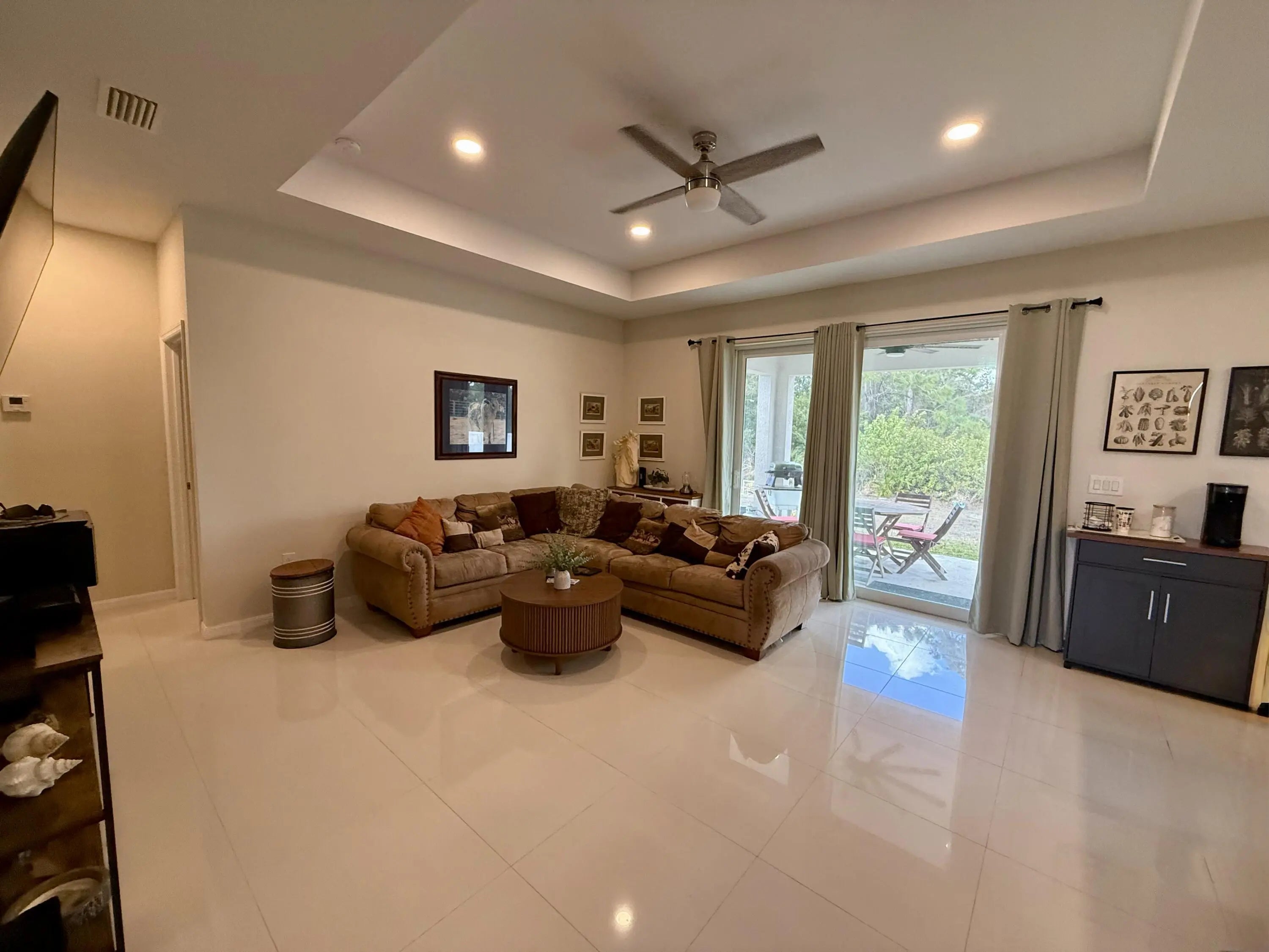 Welcome Home!!!This well maintained and beautiful home is located in the heart of Lehigh Acres! Built in 2022, offers 3 bedrooms + Den, 2 bath 2 car garage, it features over 1700 sq. ft. of living area with tile floors throughout for easy care, indoor laundry room, the spacious den/study that offers the perfect space for a fourth bedroom, a home office or playroom, an open floor plan that seamlessly connects living areas, making it ideal for entertaining or gatherings. The spacious and beautiful kitchen features an island with a pantry, Breakfast Bar and includes all appliances. The sliding doors lead out to the outside to enjoy the open Lanai overlooking the backyard where you'll have plenty of room for a pool!. Additional features include a new open-air Aerator and pressure tank.