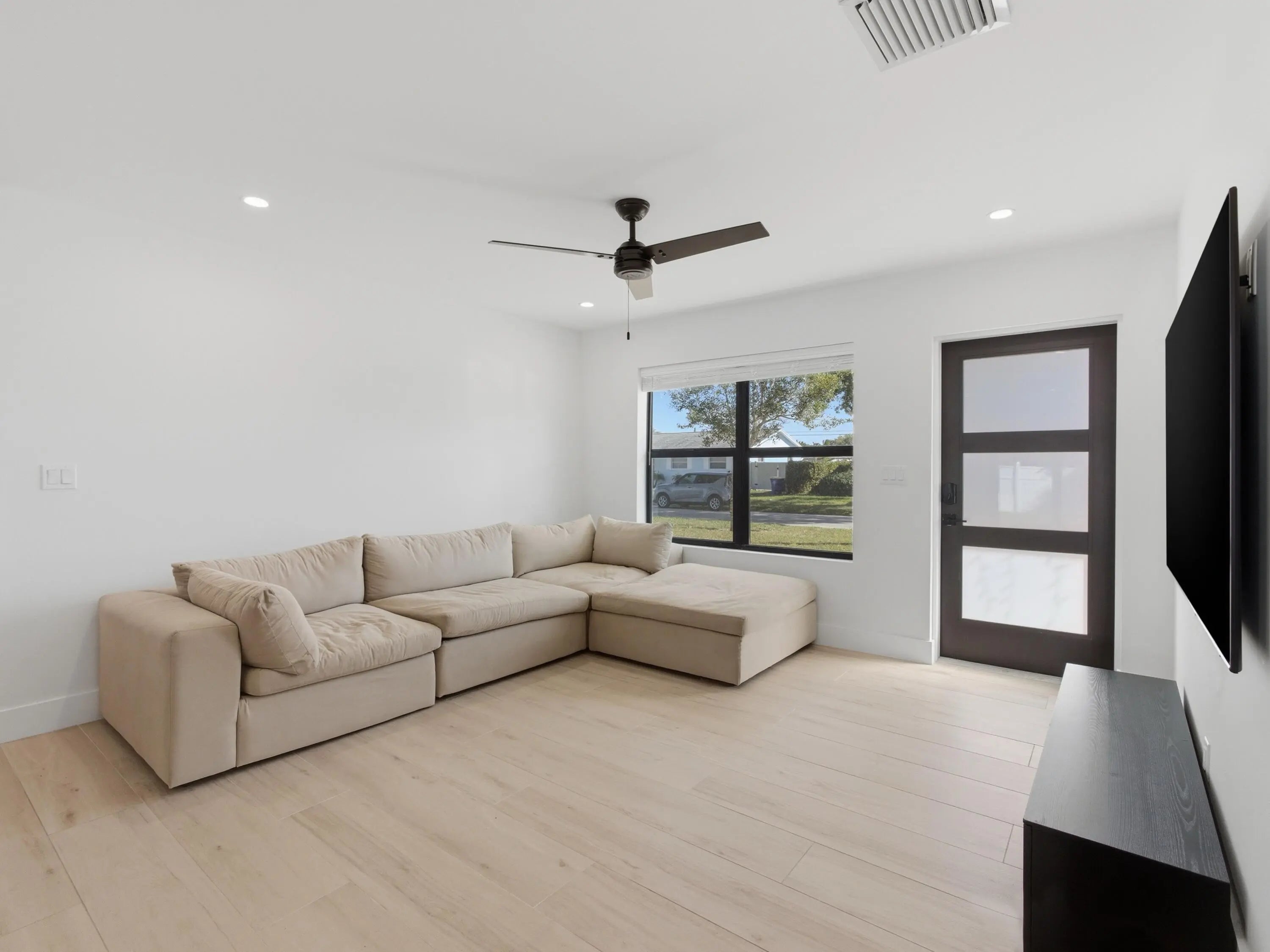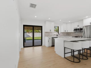 Fully remodeled in 2023, this Jupiter home feels like new construction. Major upgrades include a new metal roof, impact windows, new A/C, new stucco, updated kitchen, and porcelain wood-look floors throughout. Interior features all new drywall, trim, shaker doors, lighting, and fresh paint, plus expanded egress windows, mostly new framing, and all new plumbing and electrical. Exterior offers new sod and irrigation. Private backyard with two mango trees. Move-in ready in a desirable Jupiter location.