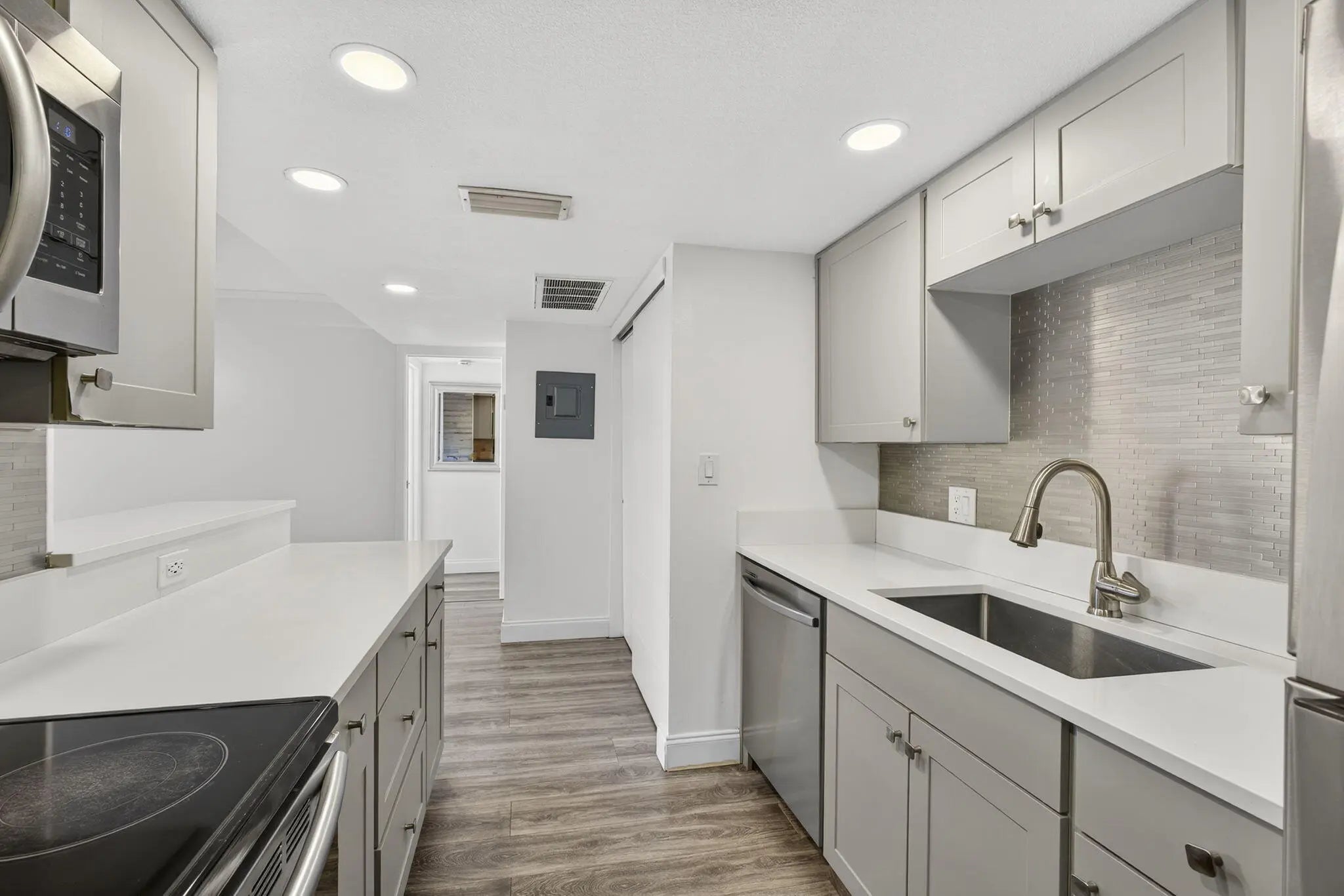 Enjoy comfortable living in this first-floor condo located in the gated community of Lake Place. The kitchen has been updated with modern cabinets, quartz countertops, and newer stainless steel appliances, offering a fresh and functional space to cook and entertain.This unit features two bedrooms and two full bathrooms, including a primary suite and a second bathroom conveniently located across the hall. You'll also find an in-unit washer and dryer, a private patio, and accordion shutters for added peace of mind.Residents of Lake Place enjoy access to a heated pool, hot tub, fitness center, tennis courts, and clubhouse. Conveniently located near Tanger Outlets, Downtown West Palm Beach, the beaches, and I-95, this condo offers a great blend of comfort and location.