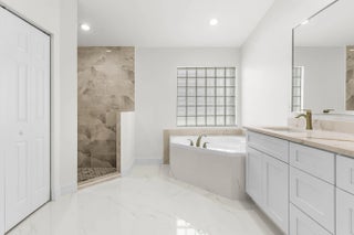 Custom Mirror, Laundry Tub, Pantry, Pull Down Stairs, Roman Tub, Split Bedroom, Volume Ceiling, Walk-in Closet