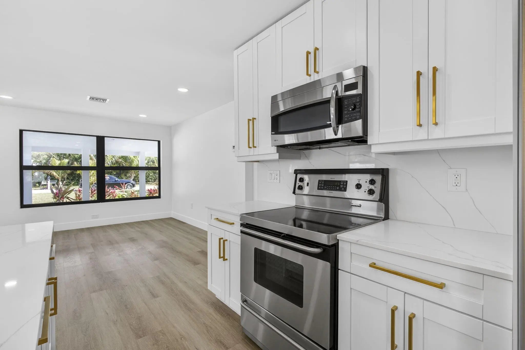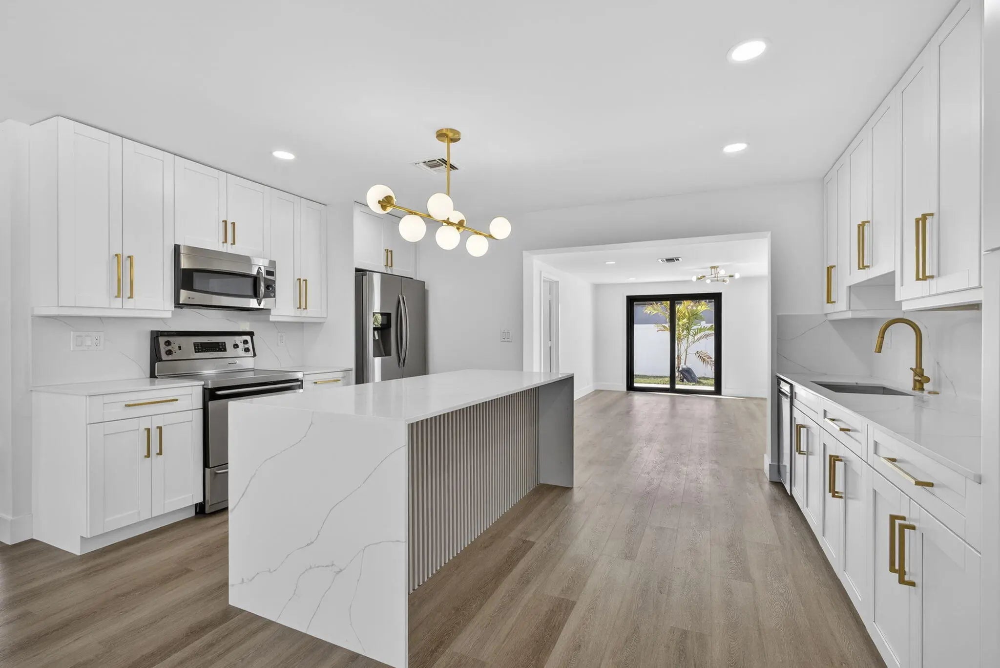 Completely reimagined and fully renovated 3BR/3BA home in the heart of West Palm Beach. Features a brand-new 2026 roof, 2026 A/C, updated electrical, and all-new plumbing for total peace of mind. Impact windows provide storm protection and energy efficiency. Open-concept layout with new flooring, LED lighting, and a chef's kitchen with solid wood cabinets, quartzite countertops, and stainless steel appliances. Oversized gate for RV/boat parking plus driveway for 5-6 cars. Prime location near beaches, dining, top schools, and Palm Beach International Airport. Move-in ready. Easy to show.
