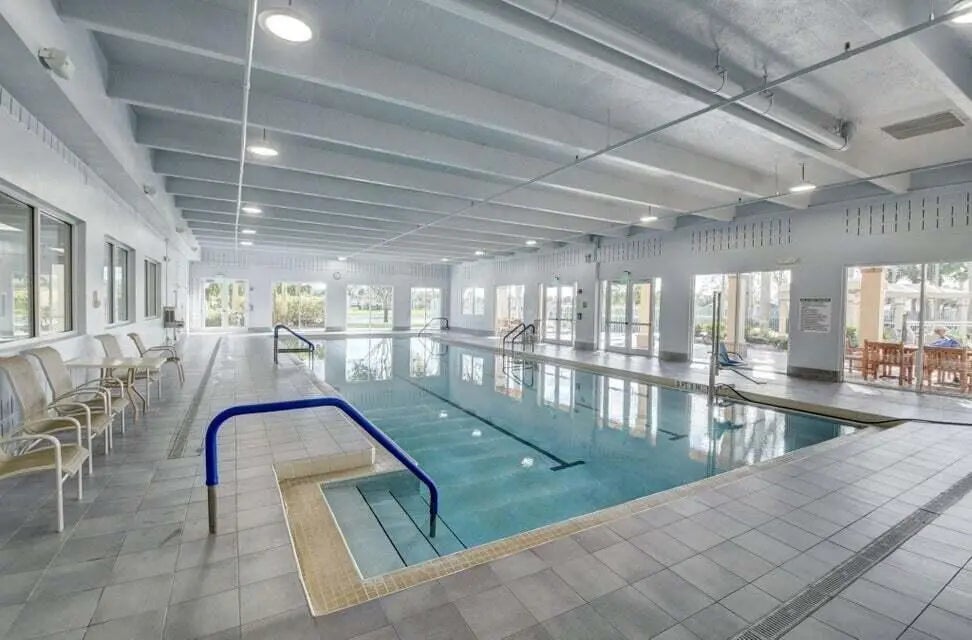 Billiards, Cafe/Restaurant, Clubhouse, Elevator, Fitness Center, Game Room, Indoor Pool, Library, Lobby, Manager on Site, Pickleball, Pool, Sidewalks, Spa-Hot Tub, Street Lights, Tennis, Trash Chute