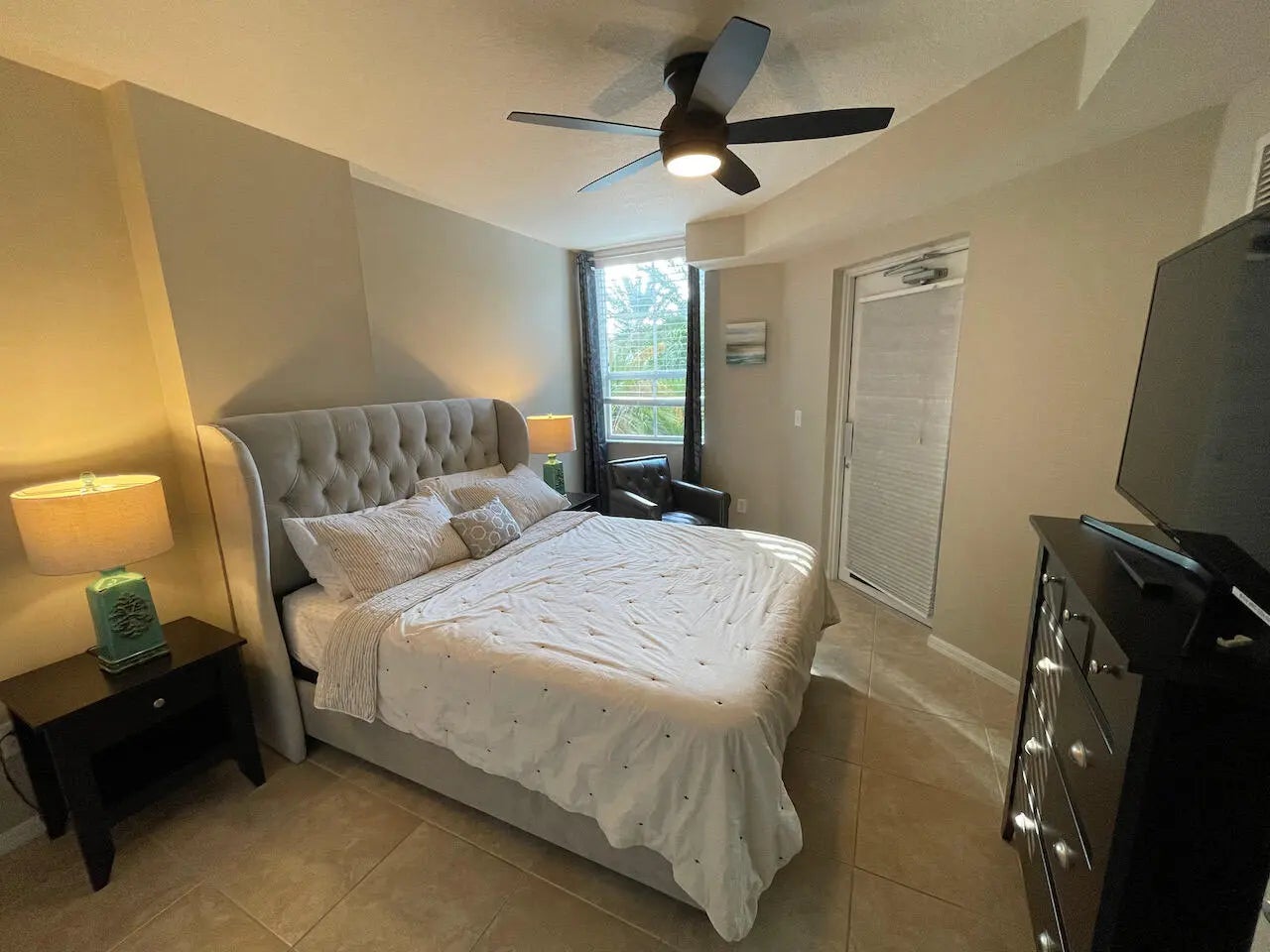 Prime Pool View unit, Extra large & wide Living/Dining Area. Off-Season Lease Available starting 4/1/26 to 10/30/26. Tastefully Turnkey Furnished, HD TV's in all rooms. Relax on Private Balcony overlooking Pool and Lush garden. Attached Garage parking. Makes are great vacation rental, Pets OK. Resort quality amenities, Large beautiful Pool and Hot Spa, Large well equipped Gym. Clubroom with big screen TV and kitchen area. In the heart of downtown WPB, Walk to CityPlace and the Downtown core. Great Restaurants, Shops, Nightlife, etc. & Waterfront area all within 2 short blocks.