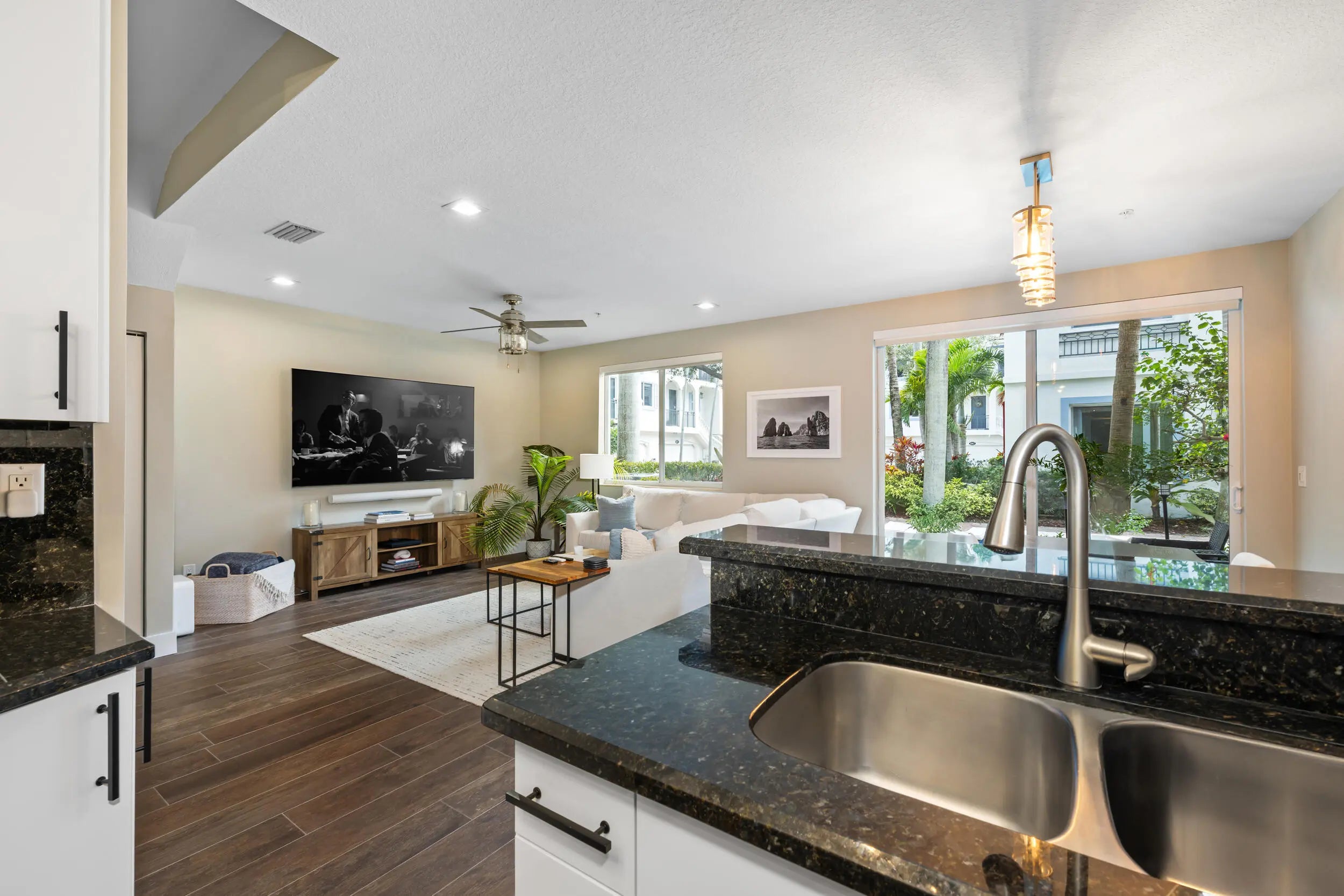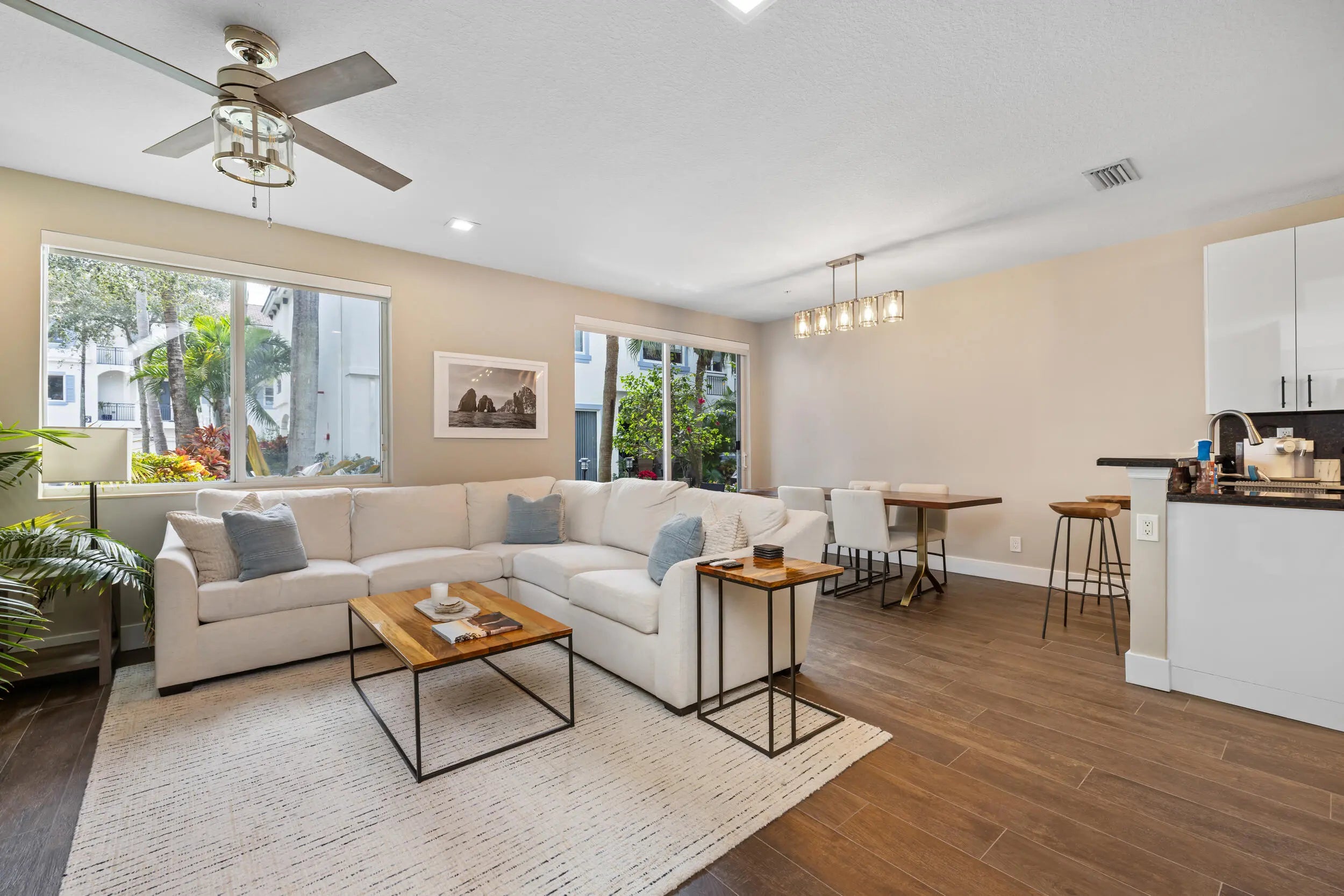 Rarely available 3br/3ba corner unit townhouse in gated Waterside Circle! Steps to the intracoastal and minutes from Delray Beach's Atlantic Ave. One of only two corner units directly across from the intracoastal, heated pool/spa, fitness center and clubhouse- the ideal location within the community. Practical two story floor plan, 2-car garage w/ additional guest parking across, outdoor patio with BBQ, high ceilings and luxe finishes throughout! The property has been completely renovated with added bar and wine fridge, all new (2025) stainless steel GE appliances, new paint inside and out, whole house motorized privacy shades, Sonos Sound system, Lioher kitchen cabinetry, new solid core doors, custom porcelain tile flooring, new lighting and fixtures, new staircase and railings,
