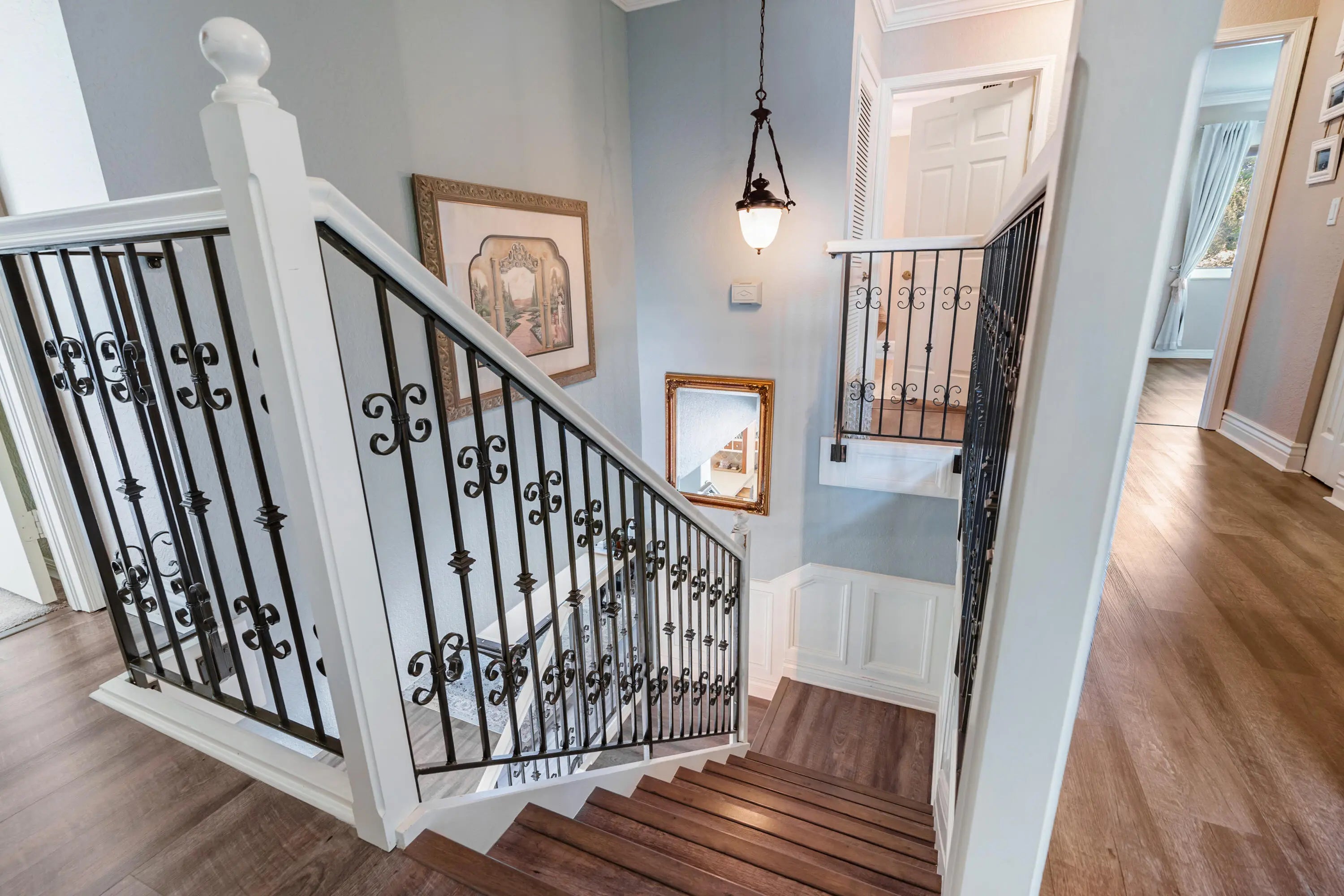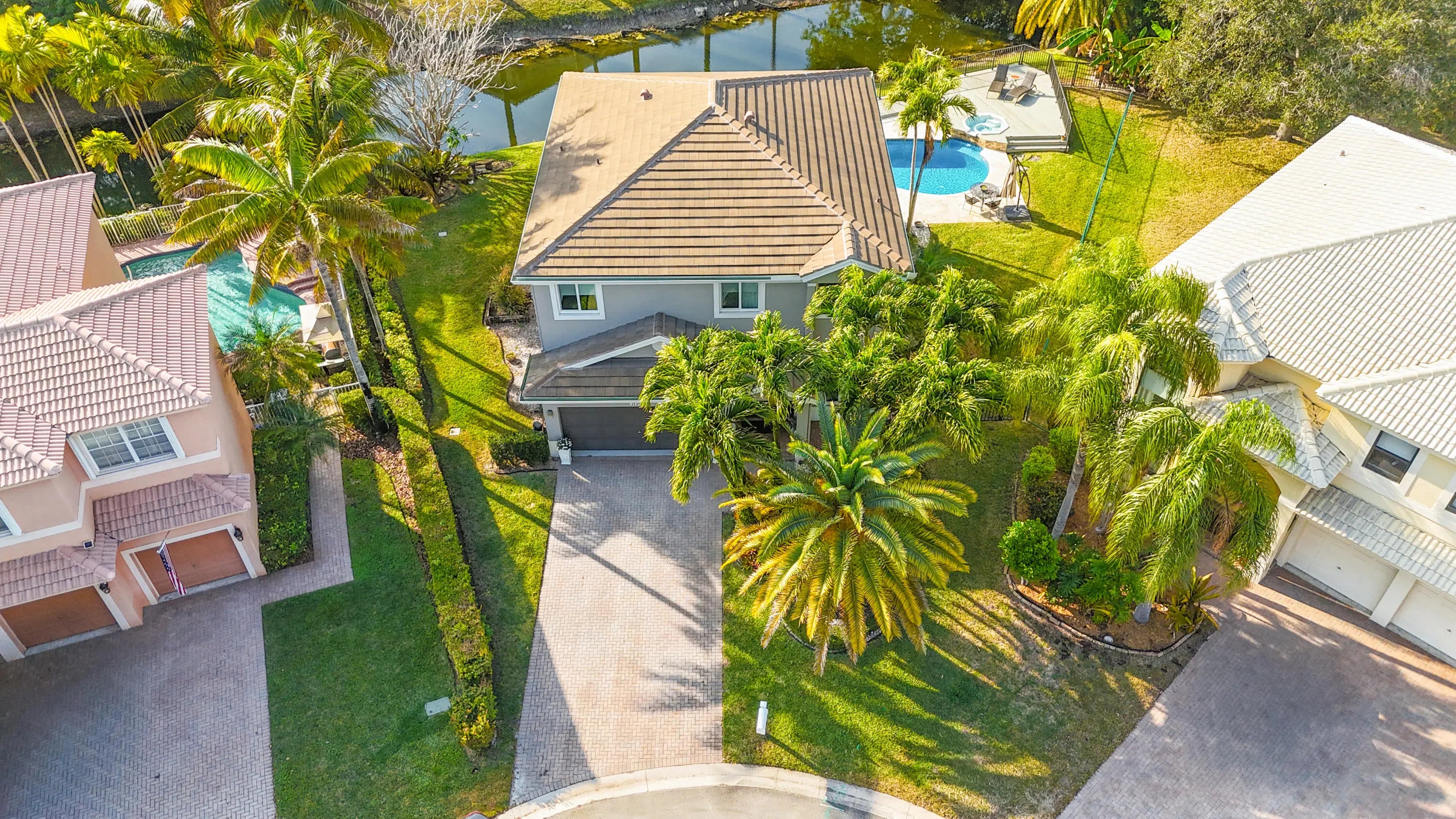 Welcome to this beautiful 4/2.5 two-story home on a quiet cul-de-sac in highly desirable Waterside. Situated on a pie-shaped lot overlooking the water, this home offers space, privacy & incredible outdoor living. The fully fenced backyard is a showstopper with a gorgeous saltwater pool with a waterfall & jacuzzi and expansive deck, creating the perfect setting for grilling, entertaining & relaxing! Also a large side yard perfect for gardening. Inside, you'll love the impact windows and thoughtful layout with living areas downstairs & bedrooms upstairs for privacy. This house is perfect for entertaining! Roof & water heater only 2.5 yrs old! Garage fully airconditioned with an extra room perfect for an office, music studio, or creative space. This house is the total package!