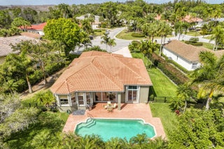 Enjoy the finest of Florida living in this stunning single-story home located on nearly 1/2 acre in the exclusive Estate section of Ironhorse Country Club. Club membership is optional / non-mandatory. Perfectly positioned on a premium homesite on a quiet cul-de-sac, this residence offers exceptional privacy, a fully fenced yard and breathtaking views of the 2nd hole of the golf course. A long driveway and impressive double entry doors create a grand first impression. Inside, elegant marble flooring with 5-inch marble baseboards flows throughout the living areas, complemented by solid-core maple doors and soaring 12-foot volume ceilings. The great room is a true showpiece, featuring floor-to-ceiling windows that frame tranquil views of the turquoise private pool and lush golf course beyond.