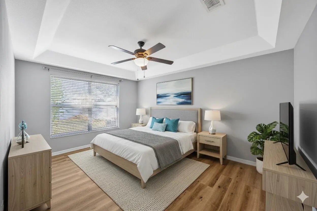 Welcome to this stunning two-story single-family home perfectly situated in the highly desirable Willow Bend area of Lutz. A quiet, established neighborhood just minutes from major thoroughfares, top-rated schools, and an endless selection of restaurants and shopping options. Step inside this move-in ready home with a bright and modern interior featuring an updated kitchen with newer stainless steel appliances. The home was just painted and new flooring installed. The primary suite offers a smooth tray/volume ceiling and a large walk-in closet. The upstairs guest bedroom has a beautiful water view right from your bedroom window. Relax or entertain in the screened-in patio overlooking your new fenced yard, ideal for pets and outdoor living. LOW HOA! Don't miss this opportunity!