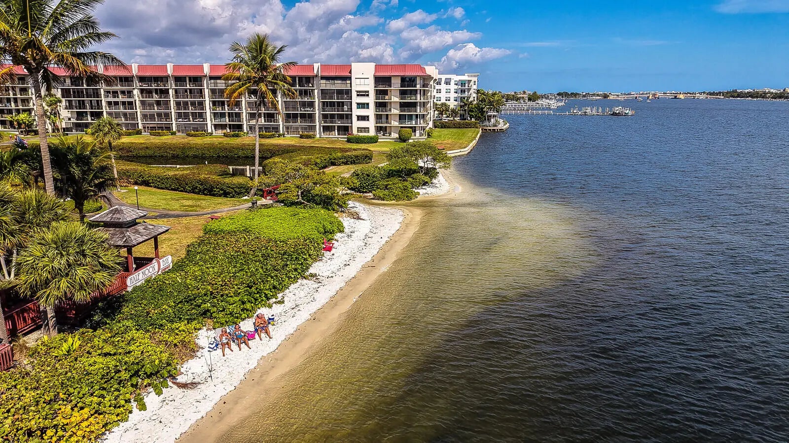 Experience elevated waterfront living in this beautifully updated 2-bedroom condominium located directly on the Intracoastal. Located on the 5th floor, this residence offers unobstructed views of the Intracoastal Waterway The higher vantage point enhances the panoramic scenery, allowing you to enjoy stunning sunrises, passing yachts, and blue water views from both living room, master bedroom and Kitchen. This light-filled condo features impact windows along with tasteful updates throughout that create a modern, move-in-ready space. The functional layout offers comfortable living areas, well-appointed bedrooms and is perfect for both full-time living and seasonal enjoyment. Located in the highly desirable Half Moon Bay community, residents enjoy resort-style amenities including two heated